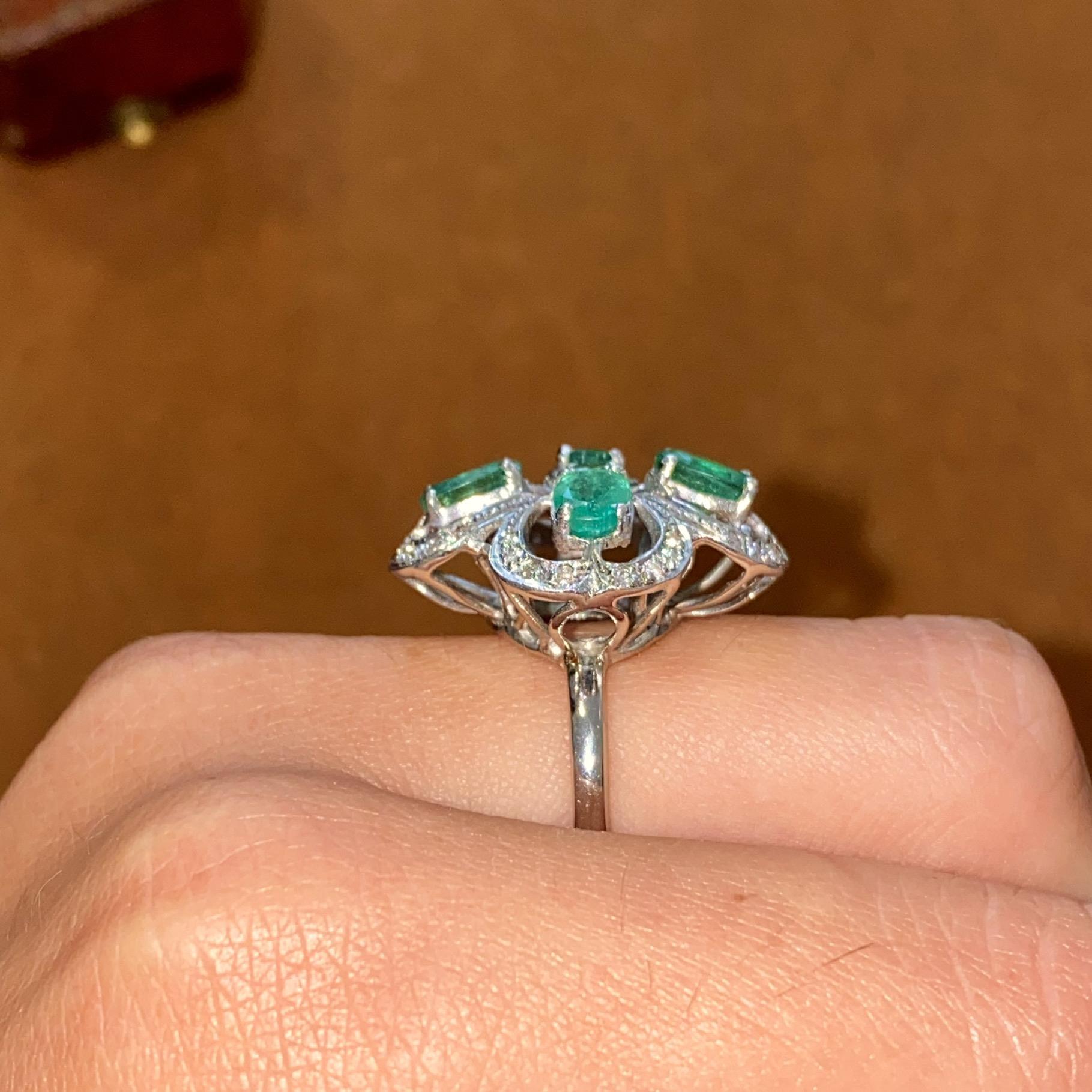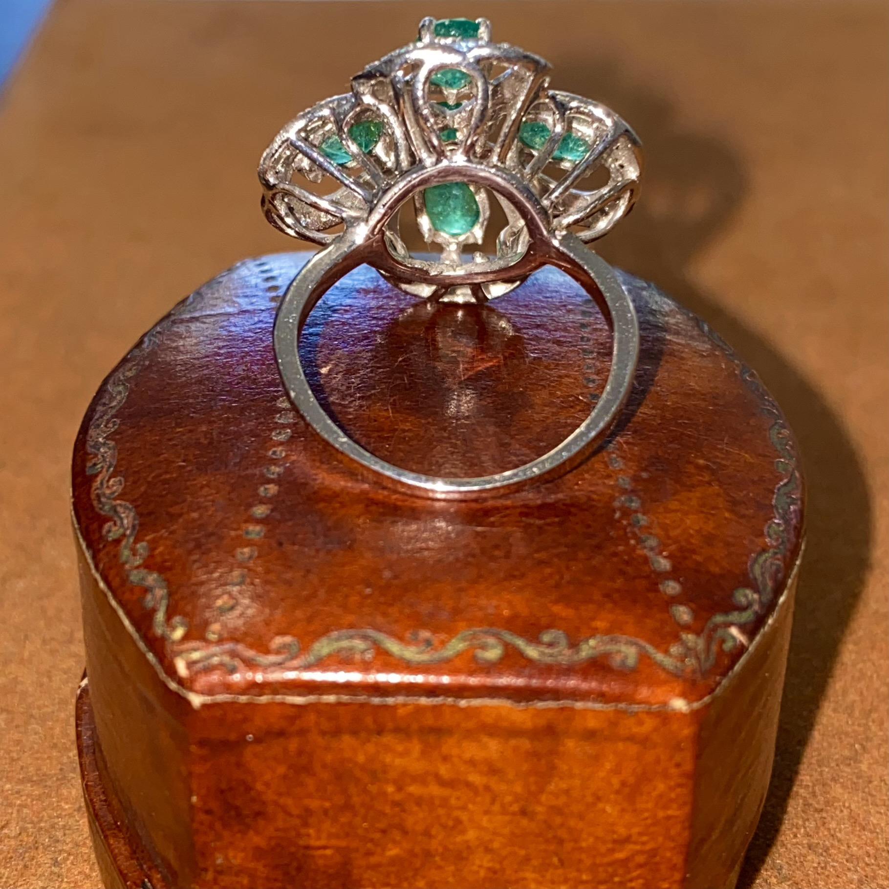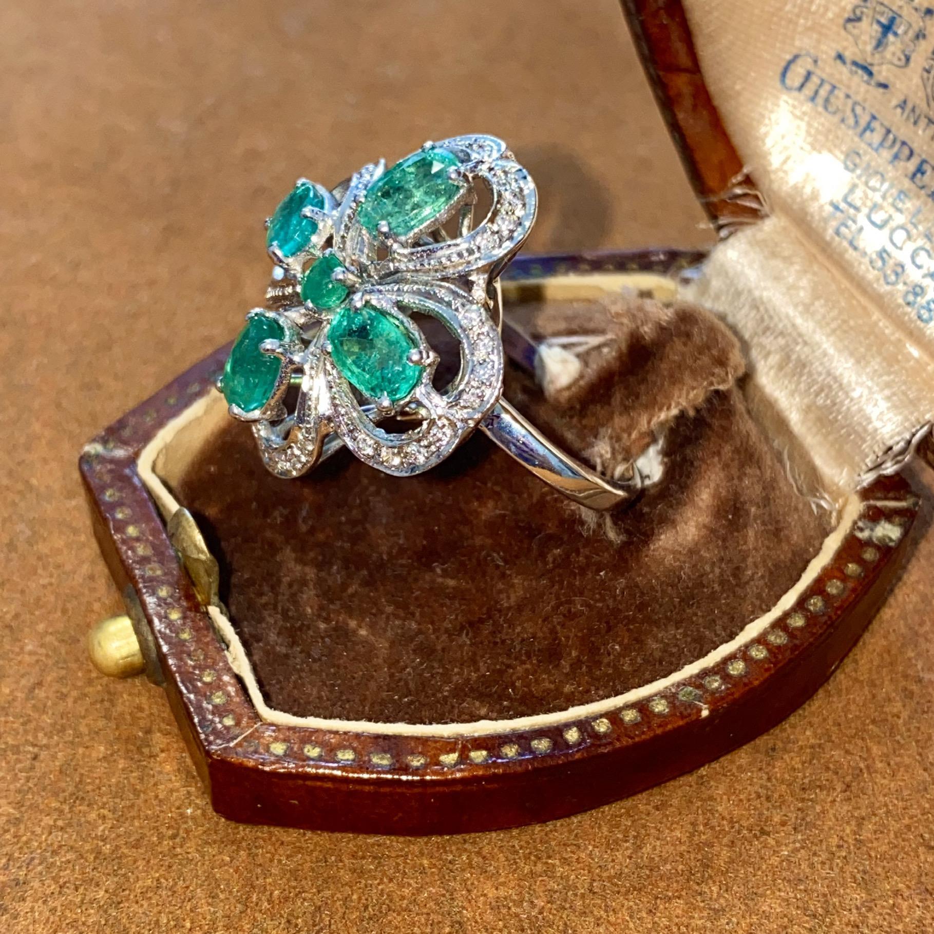 ANELLO VINTAGE IN ORO 18KT CON SMERALDI CT 2,50 CA. E DIAMANTI CT 0,10 CA.