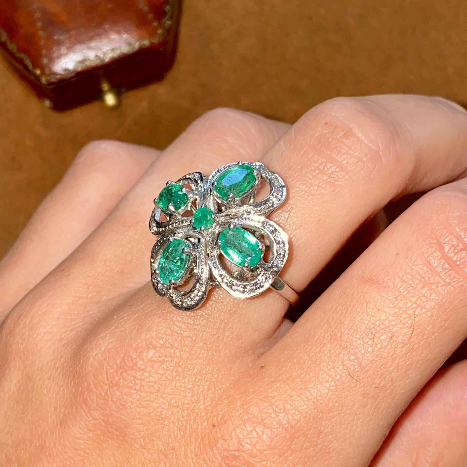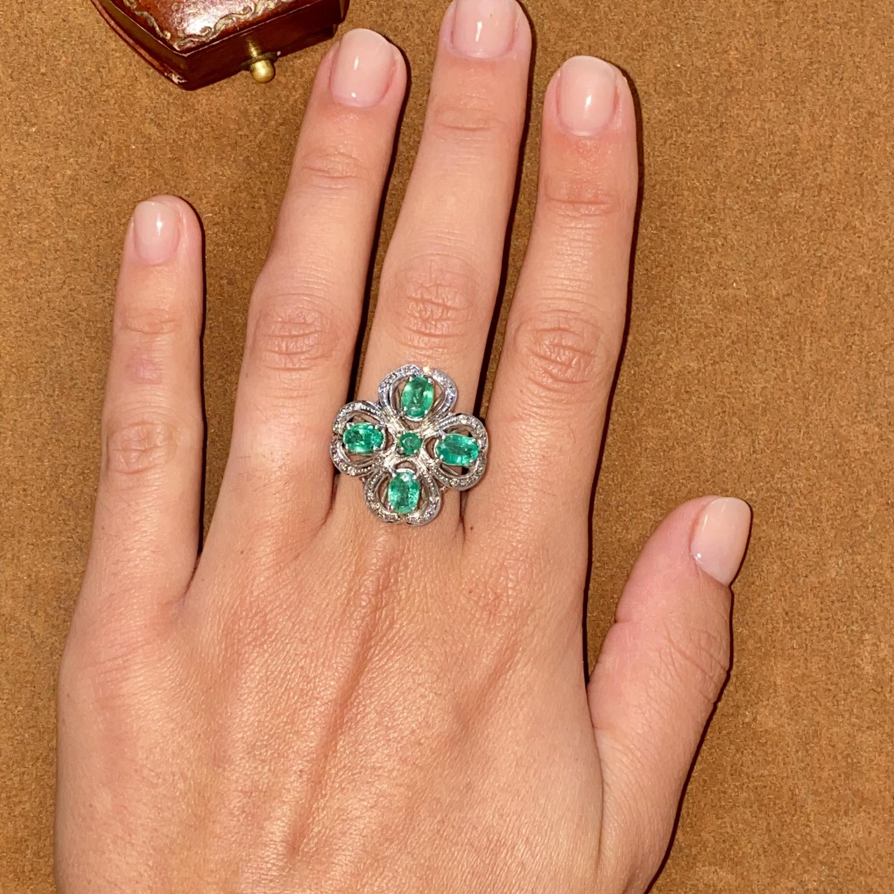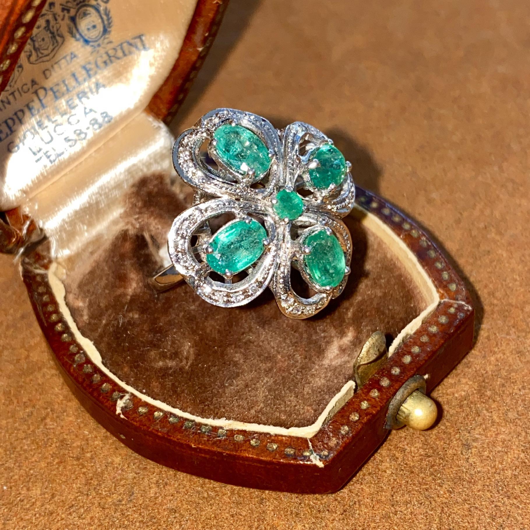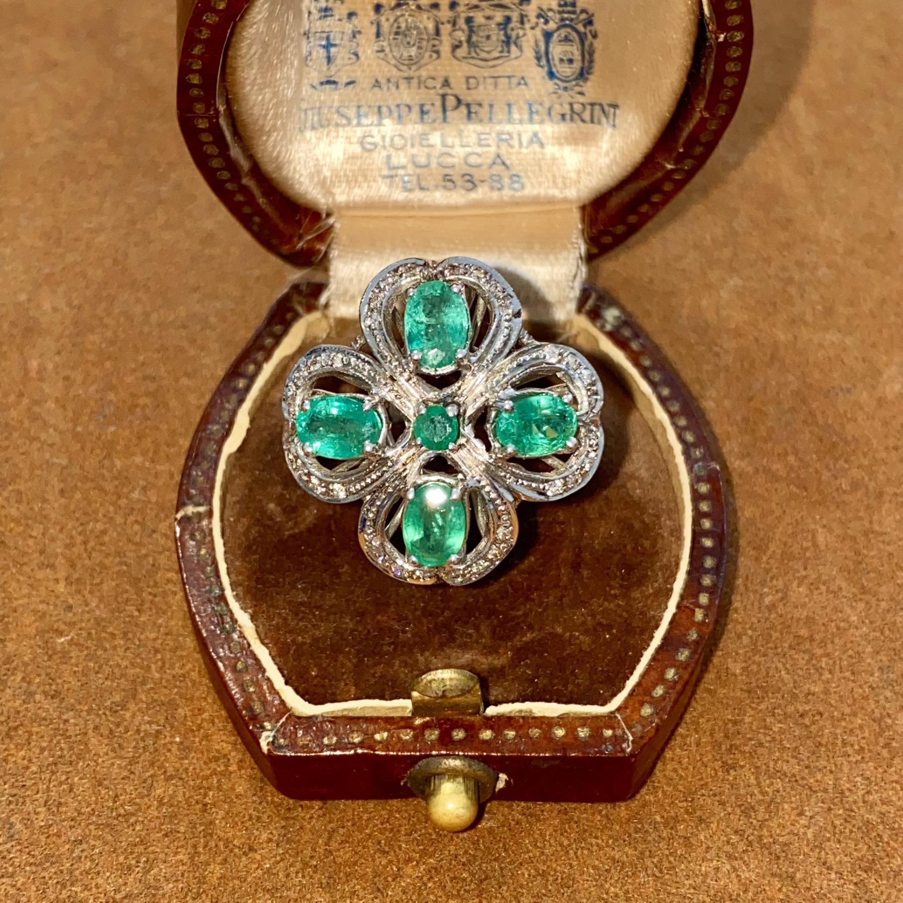 ANELLO VINTAGE IN ORO 18KT CON SMERALDI CT 2,50 CA. E DIAMANTI CT 0,10 CA.