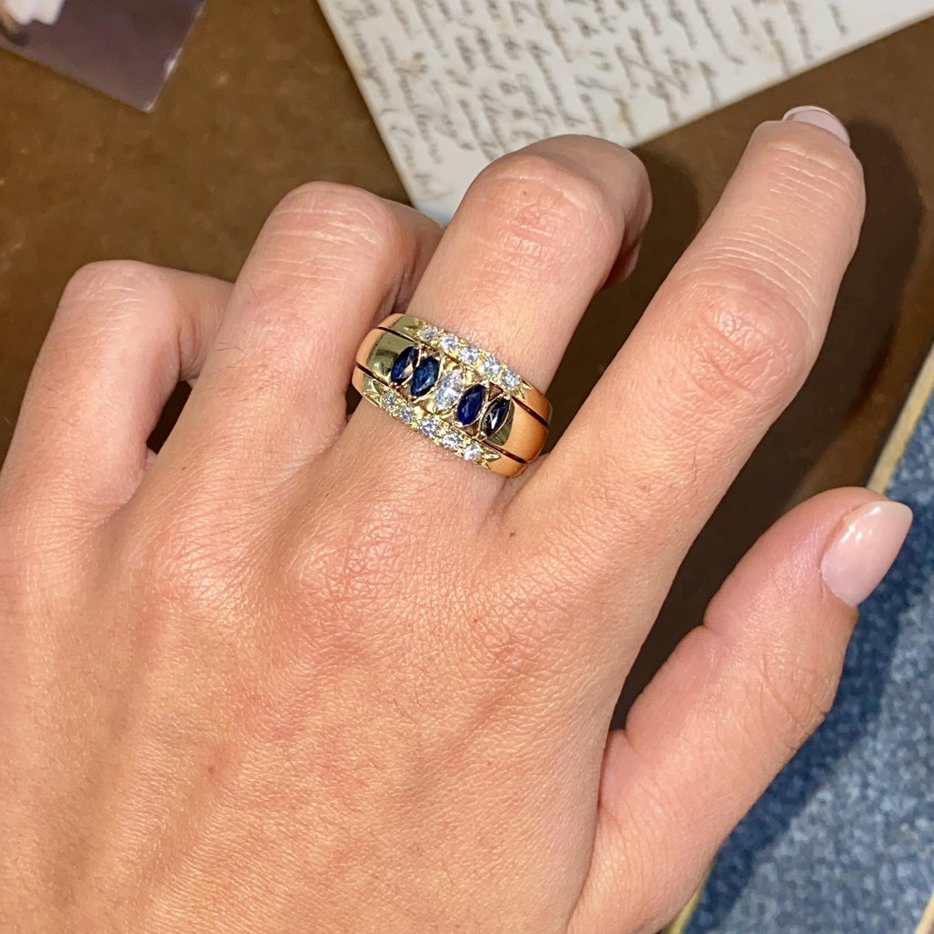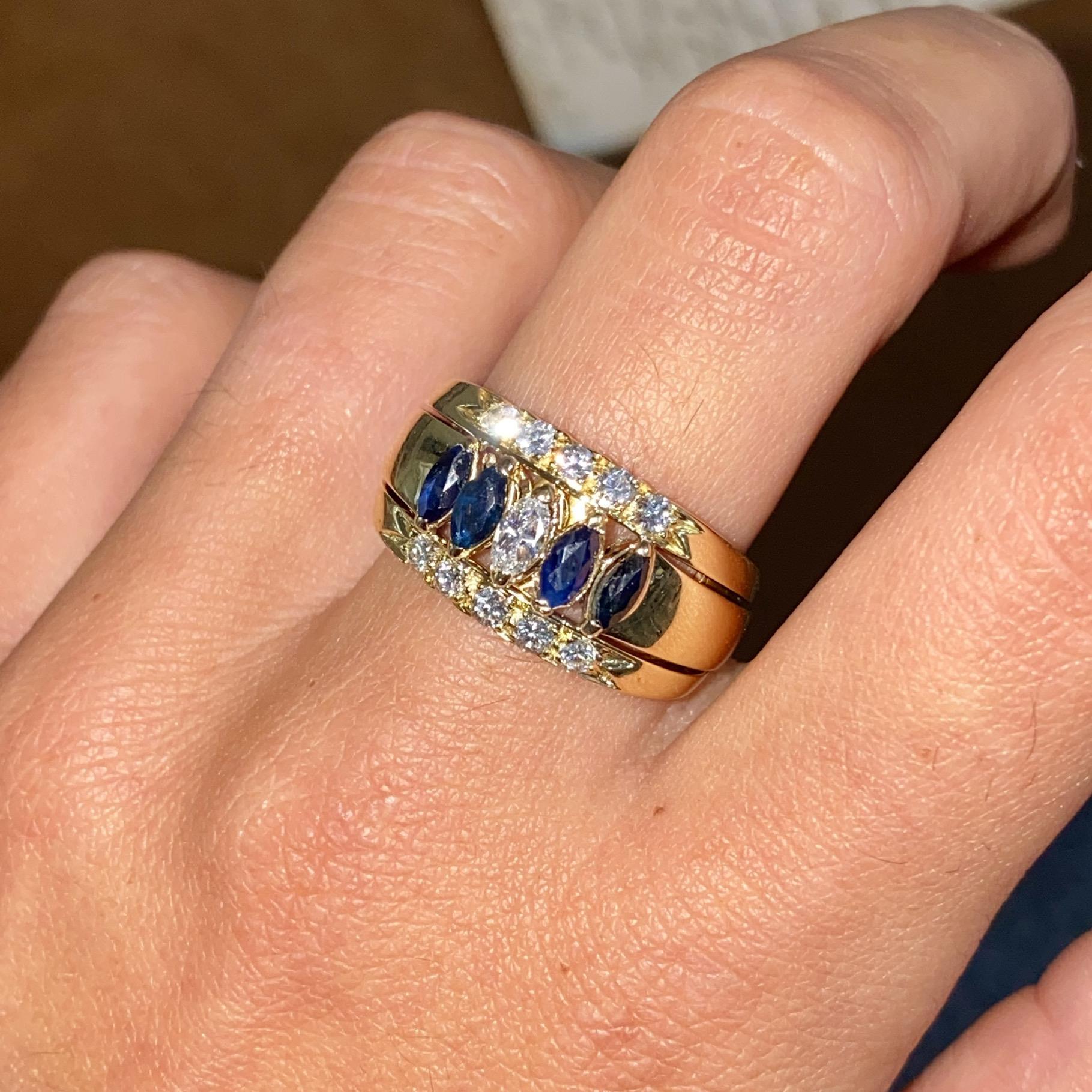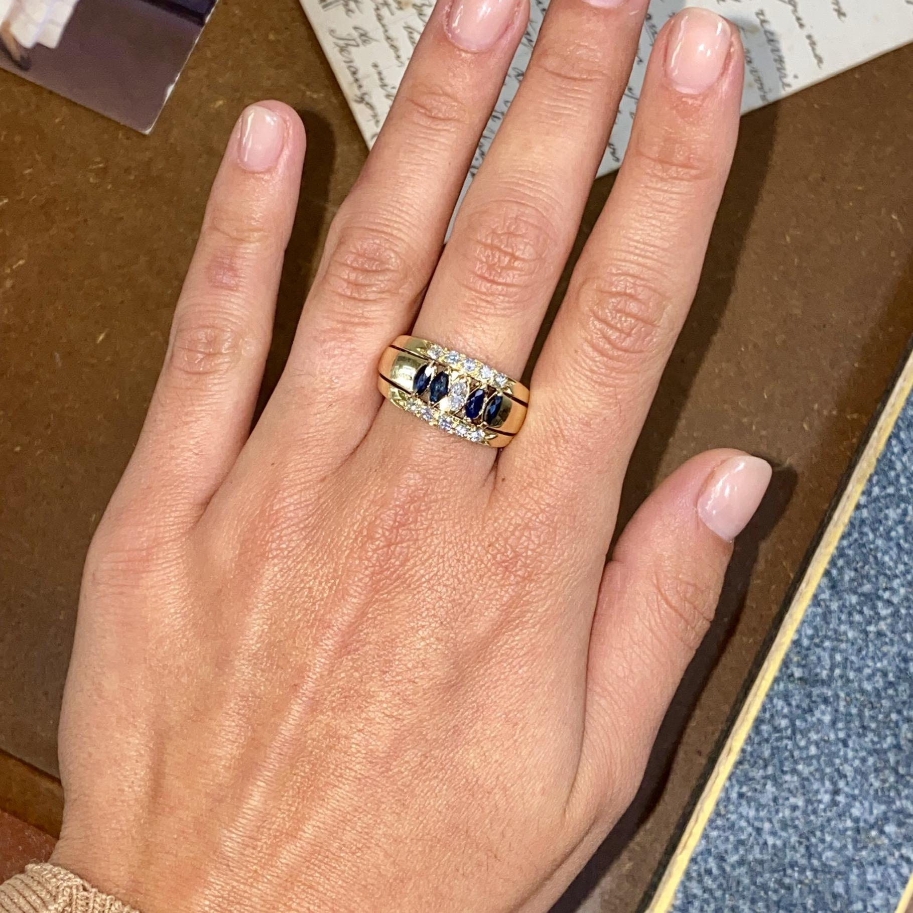 FASCIA VINTAGE IN ORO18 KT CON ZAFFIRI CT 0,35 CA. E DIAMANTI CT 0,48 CA.