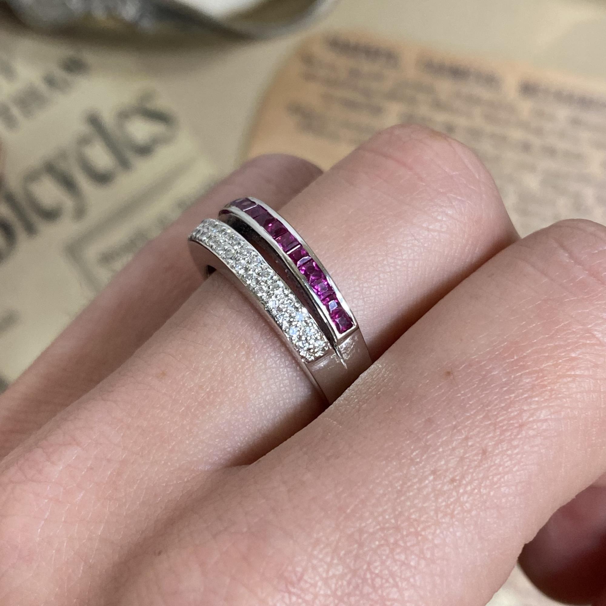 ANELLO VINTAGE DOPPIA FASCIA CON DIAMANTI CT 0,25 CA. E RUBINI CT 0,58 CA.
