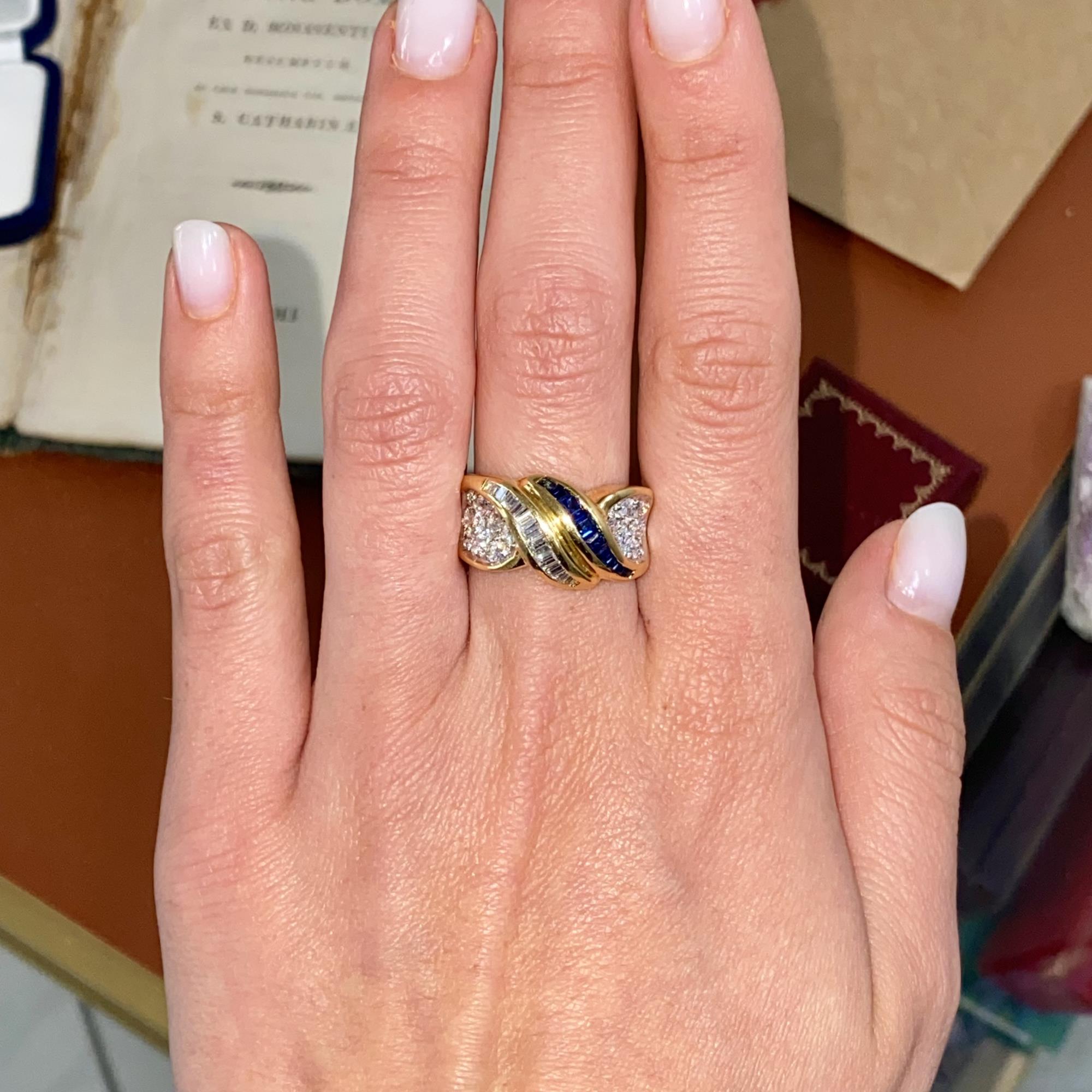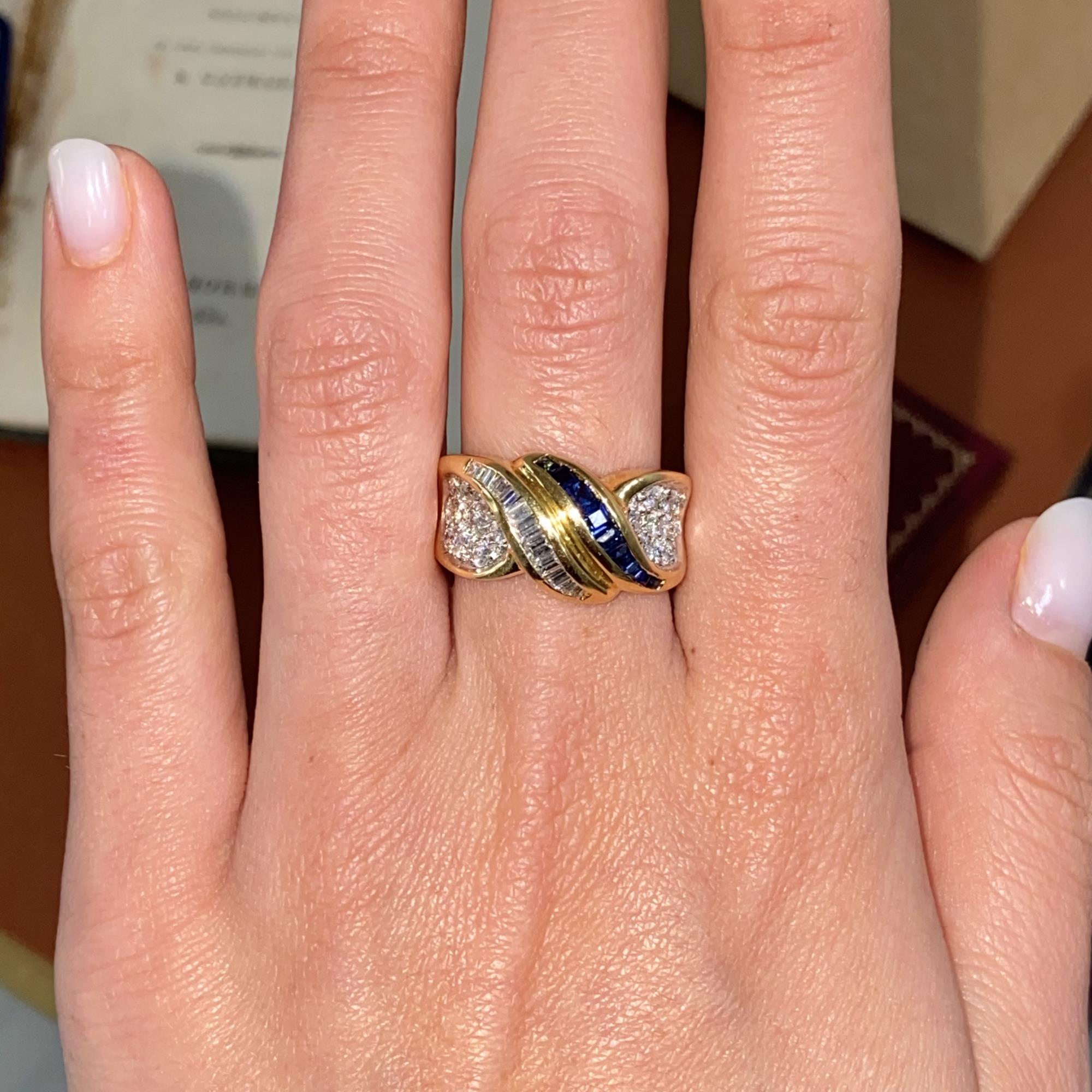 ANELLO VINTAGE FASCIA IN ORO 18KT CON DIAMANTI CT 1,30 CA. E ZAFFIRI CT 0,90 CA.