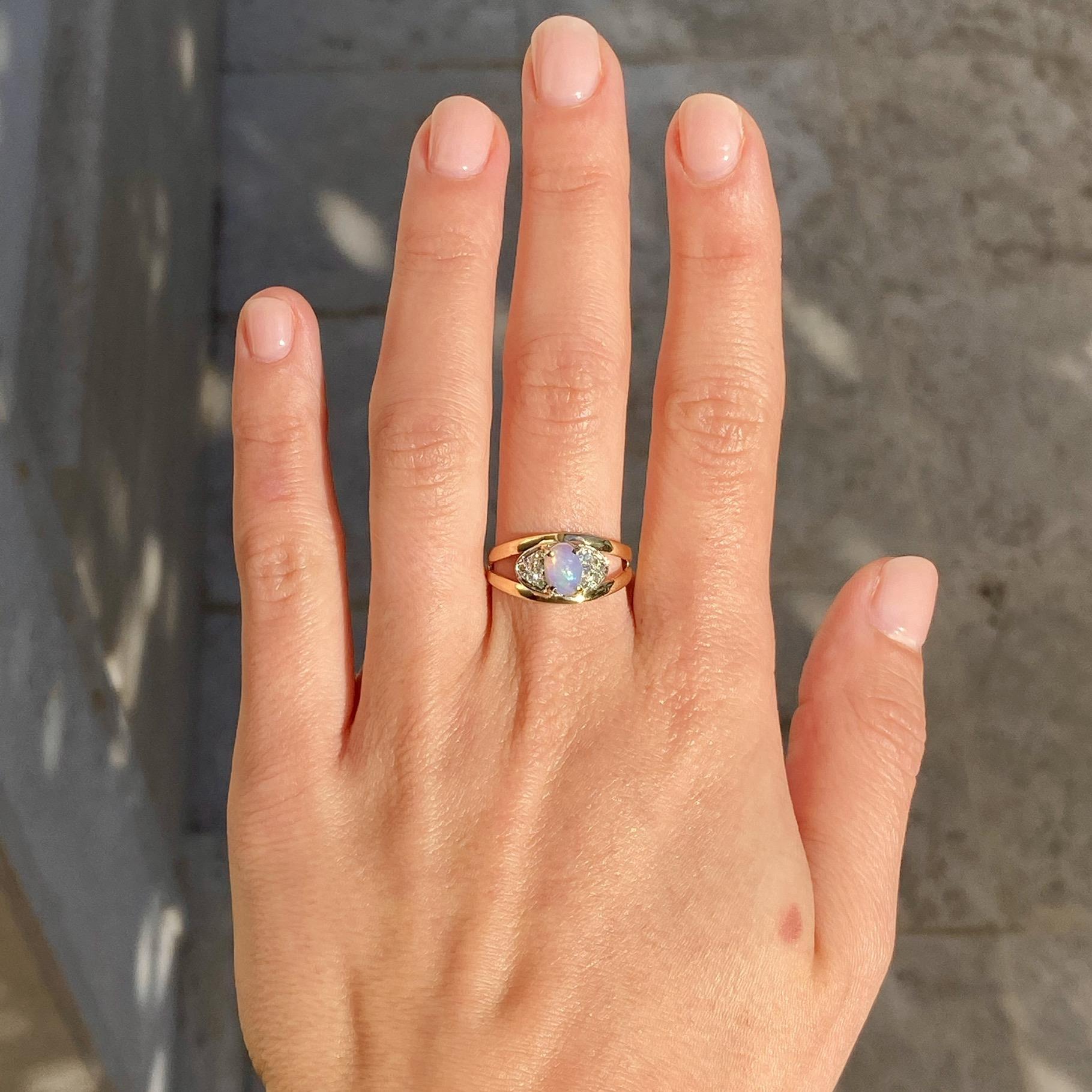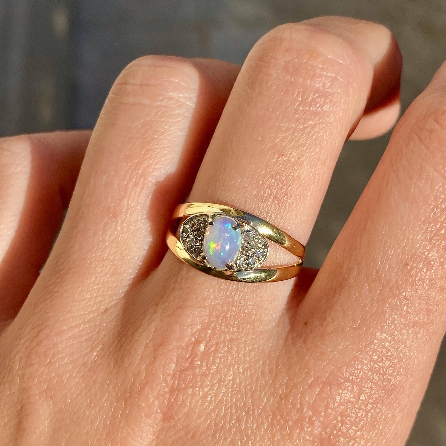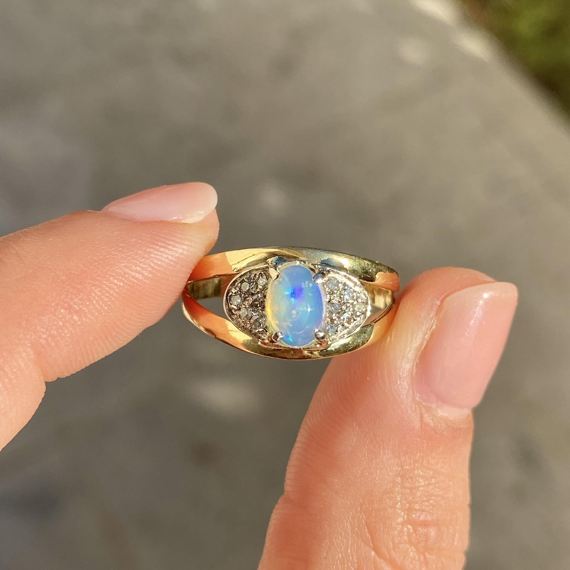 ANELLO VINTAGE IN ORO 18KT CON OPALE E DIAMANTI CT 0,06 CA.