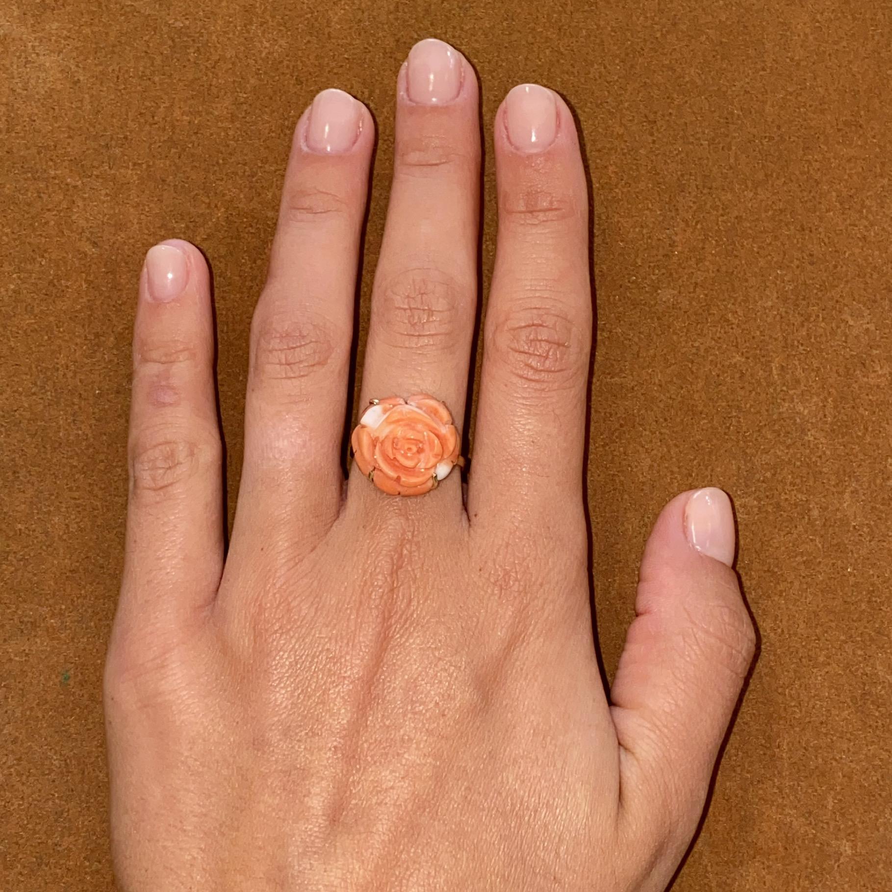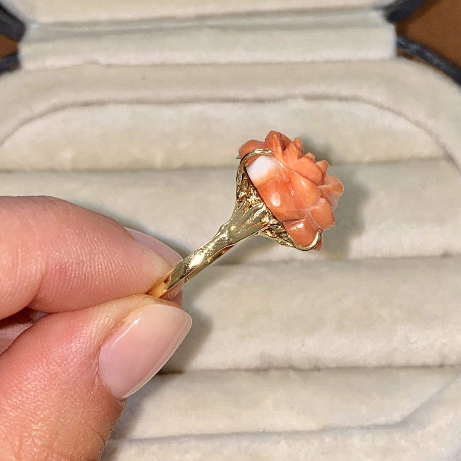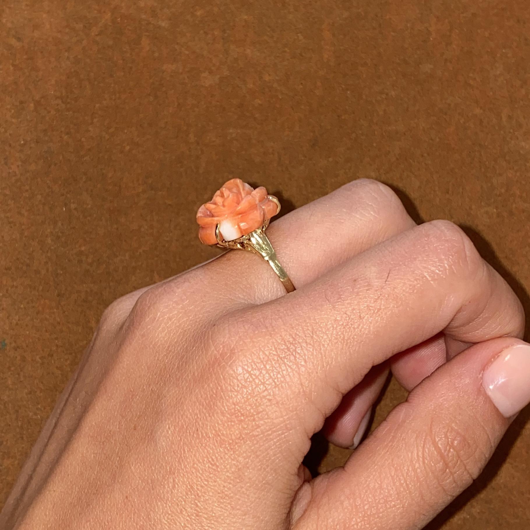 ANELLO VINTAGE IN ORO 18KT CON ROSA DI CORALLO NATURALE
