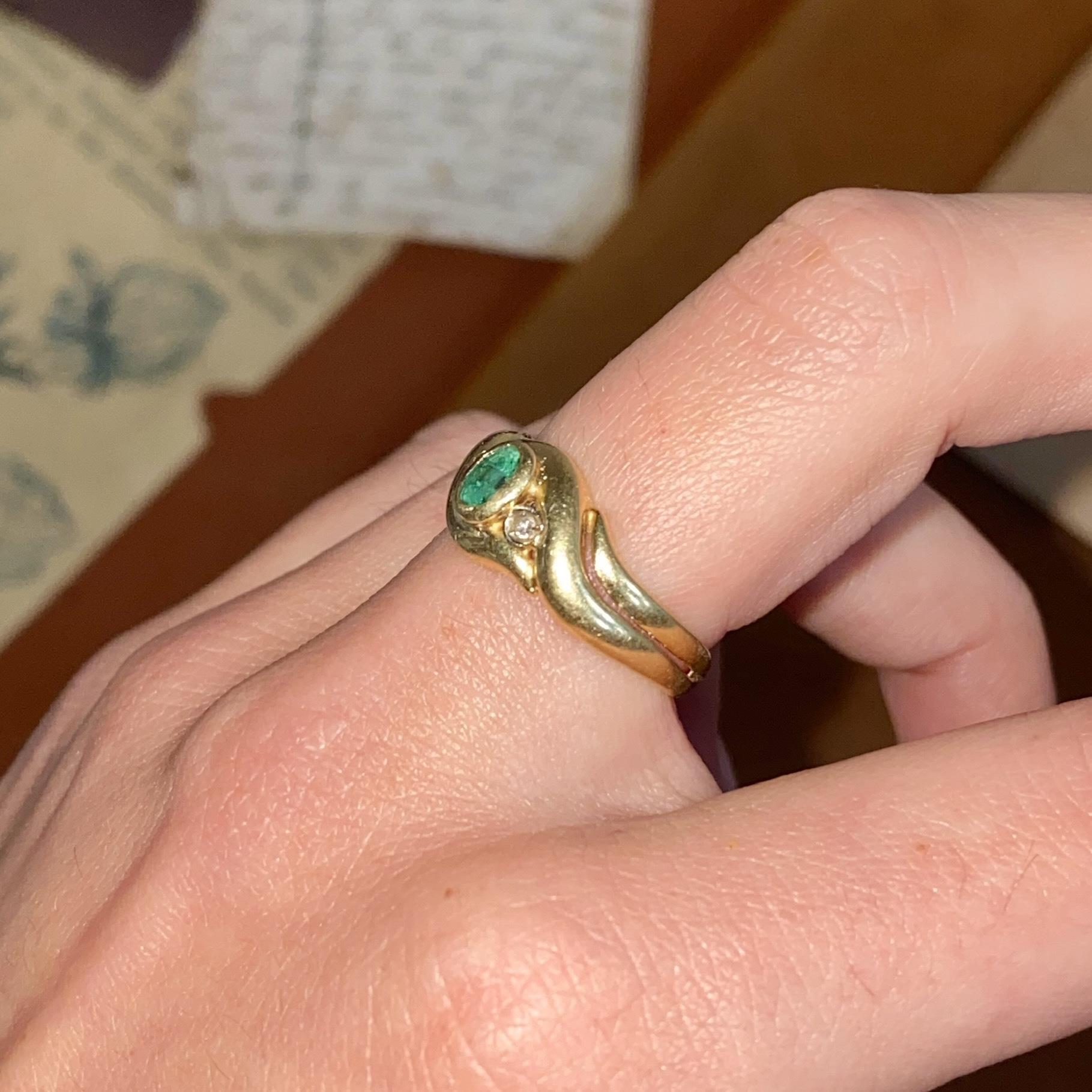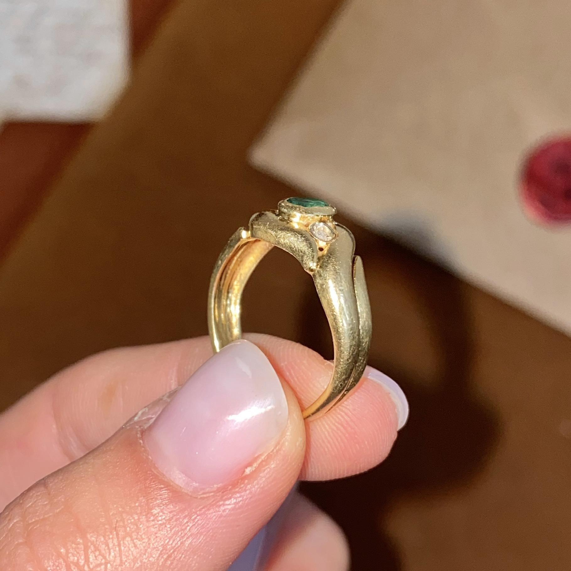 ANELLO VINTAGE IN ORO 18KT CON SMERALDO CT 0,40 CA. E DIAMANTI CT 0,02 CA.