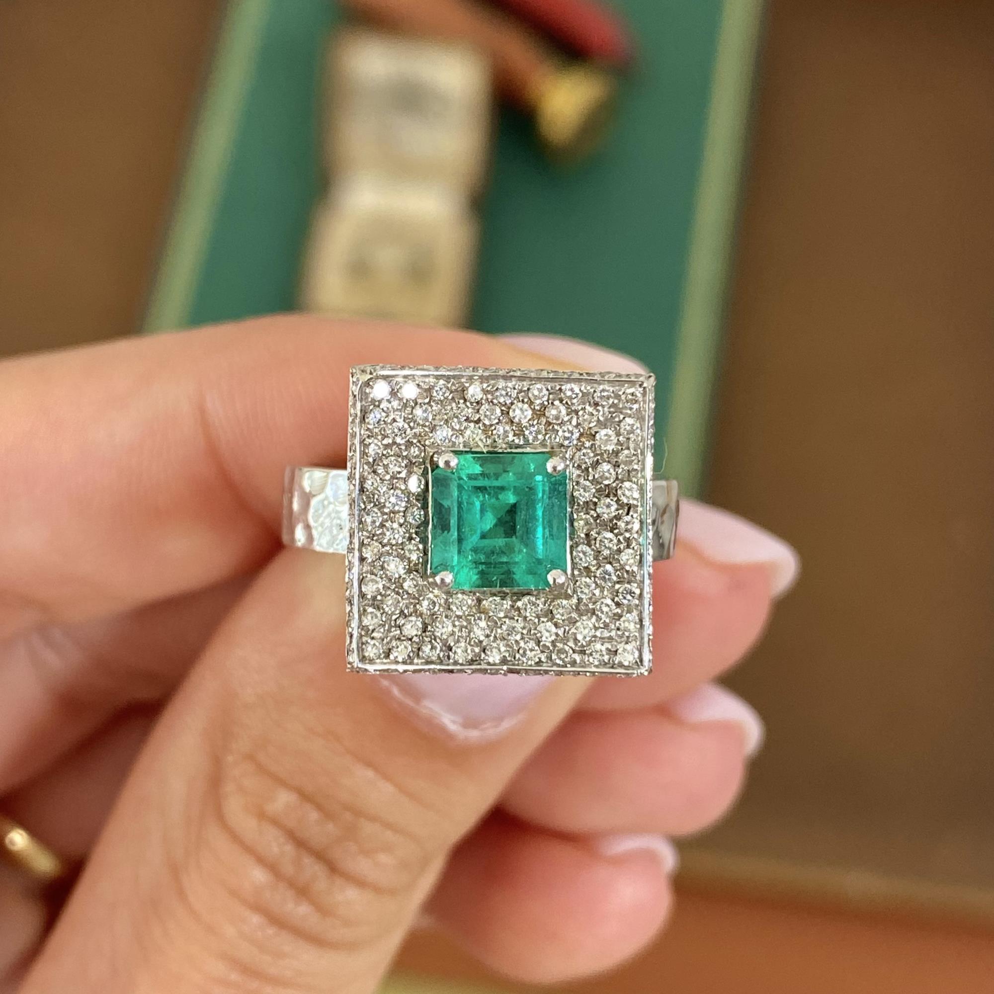 ANELLO VINTAGE IN ORO 18KT CON SMERALDO CT 0,90 CA. E DIAMANTI CT 0,70 CA.