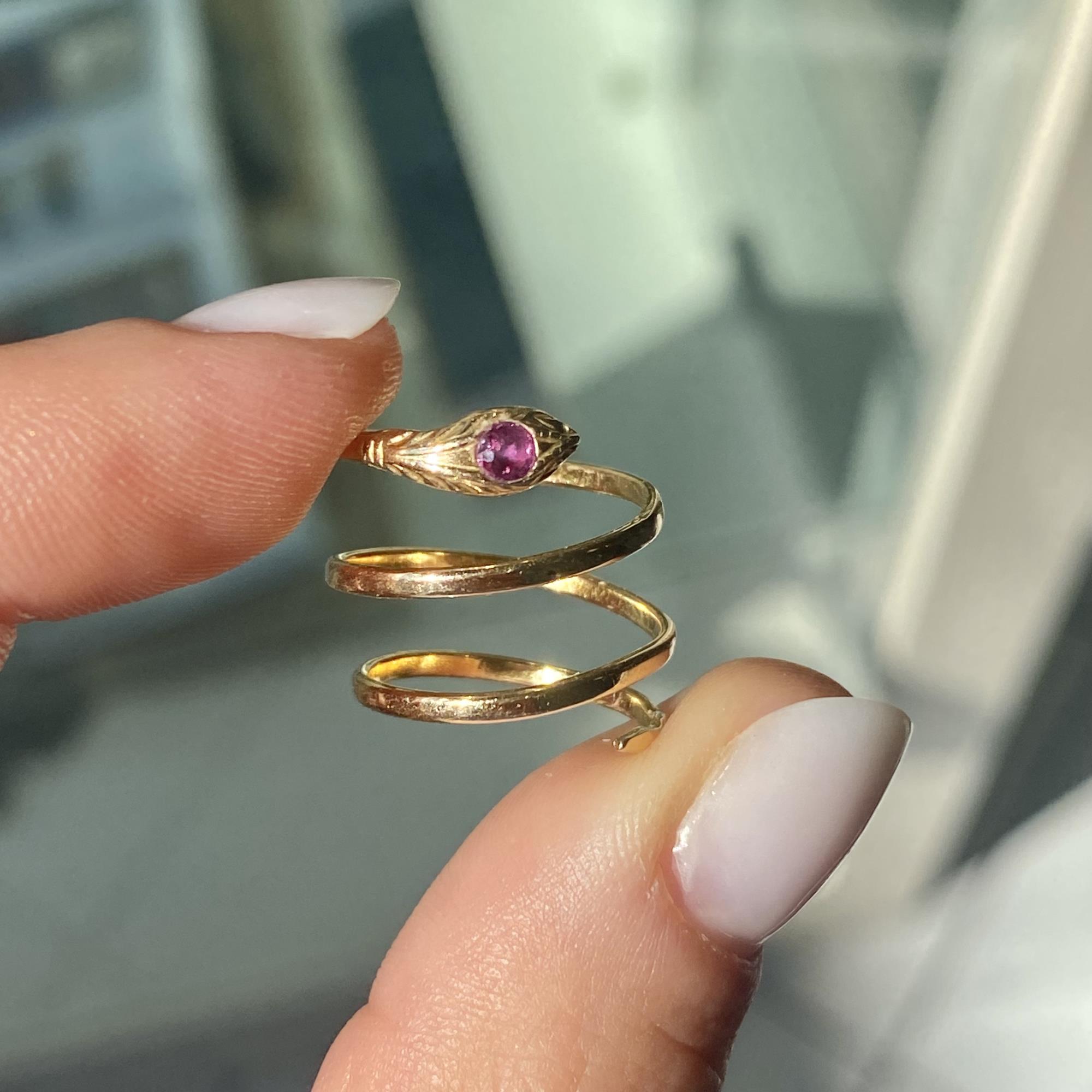 ANELLO VINTAGE IN ORO 18KT SERPENTINO CON RUBINO NATURALE CT 0,10 CA.
