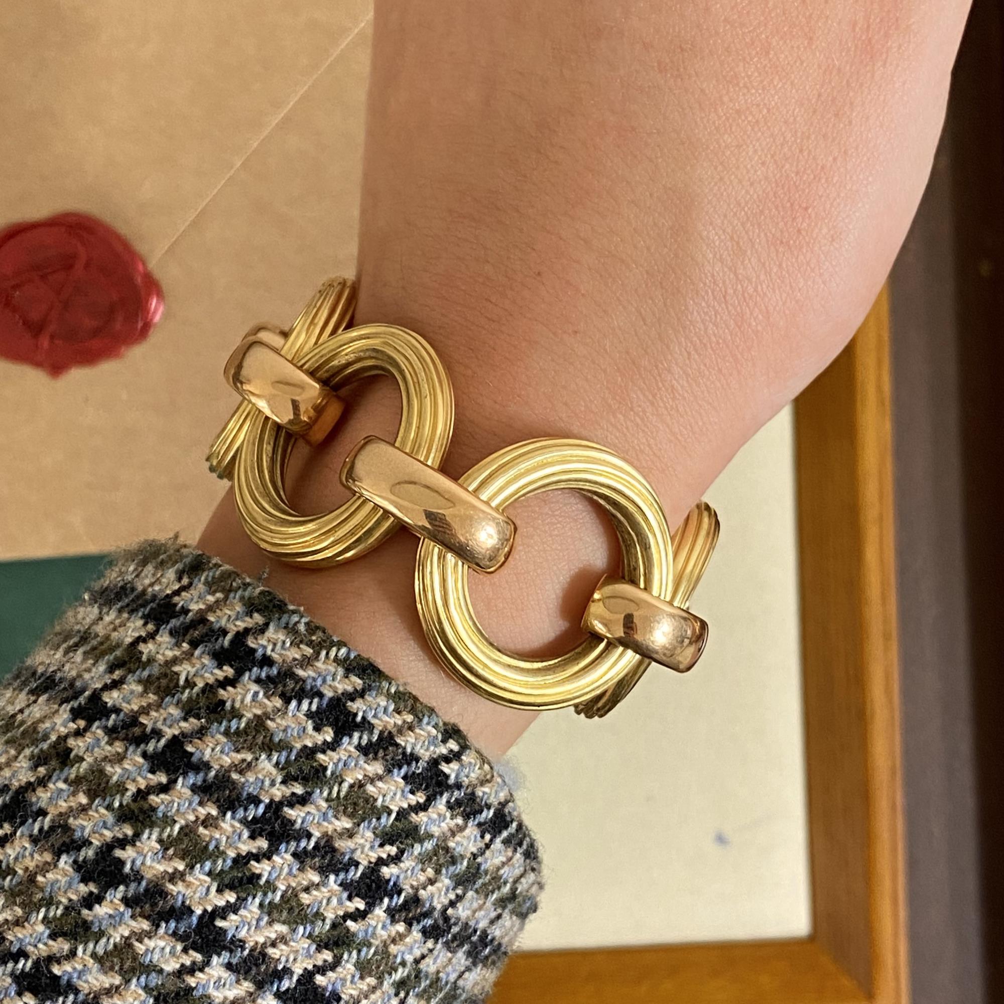 BRACCIALE CON CERCHI TORCHON IN ORO GIALLO E ROSA 18KT ANNI '50 CA.