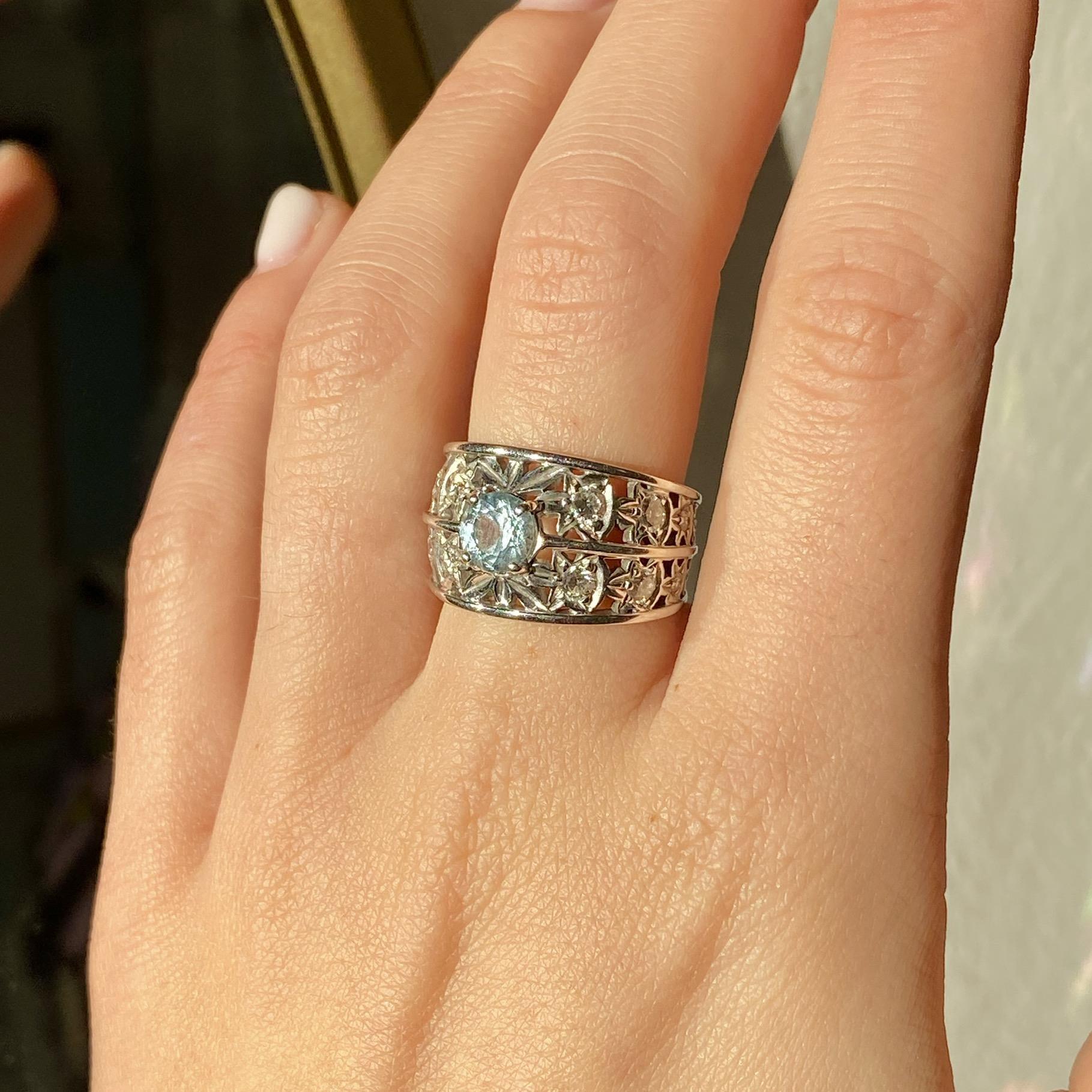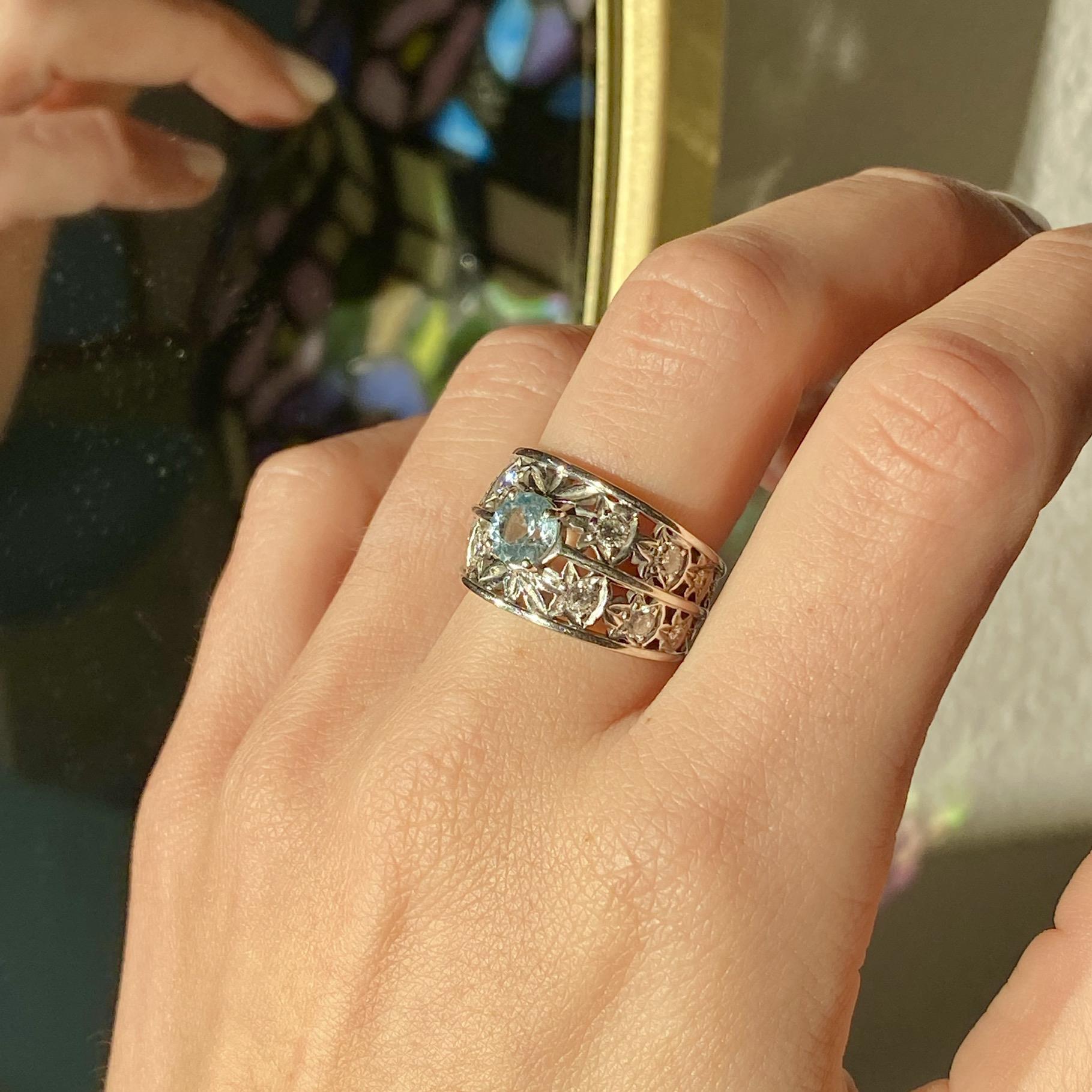 FASCIA IN ORO 18KT CON DIAMANTI CT 0,60 CA. E ACQUAMARINA CT 0,80 CA.