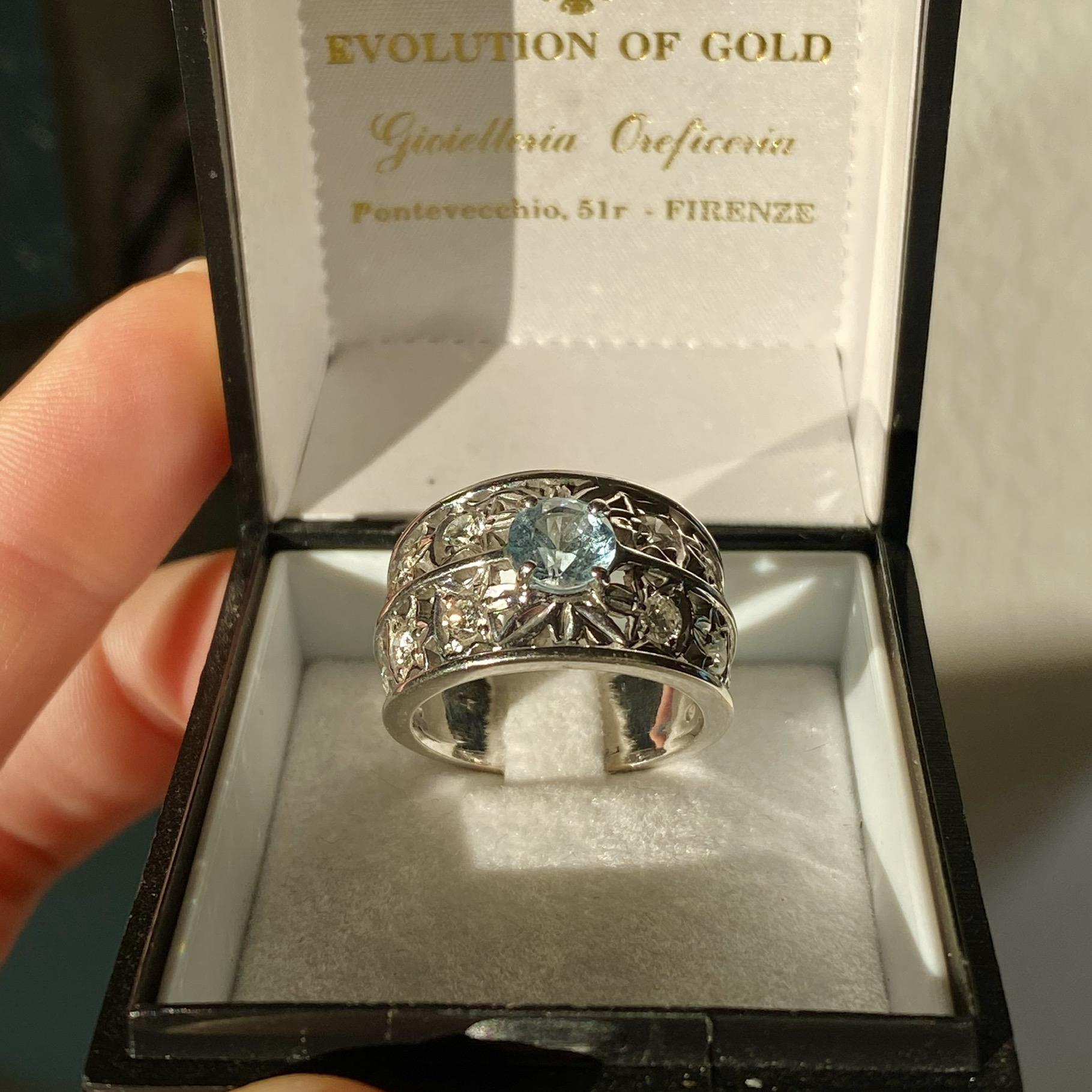 Oro 18kt, diamanti naturali e acquamarina naturale