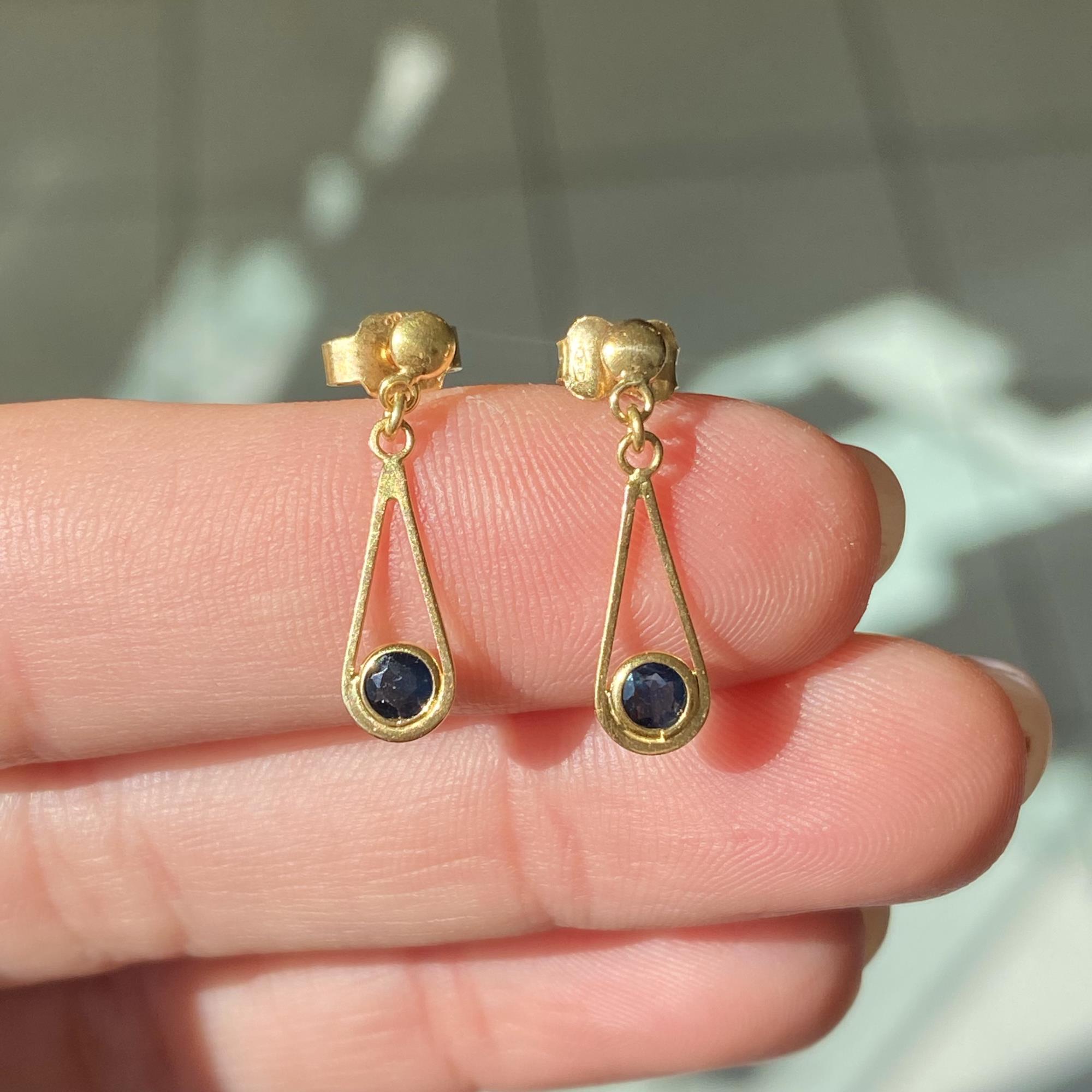 ORECCHINI VINTAGE GOCCIA PENDENTE IN ORO 18KT CON ZAFFIRI CT 0,30 CA.