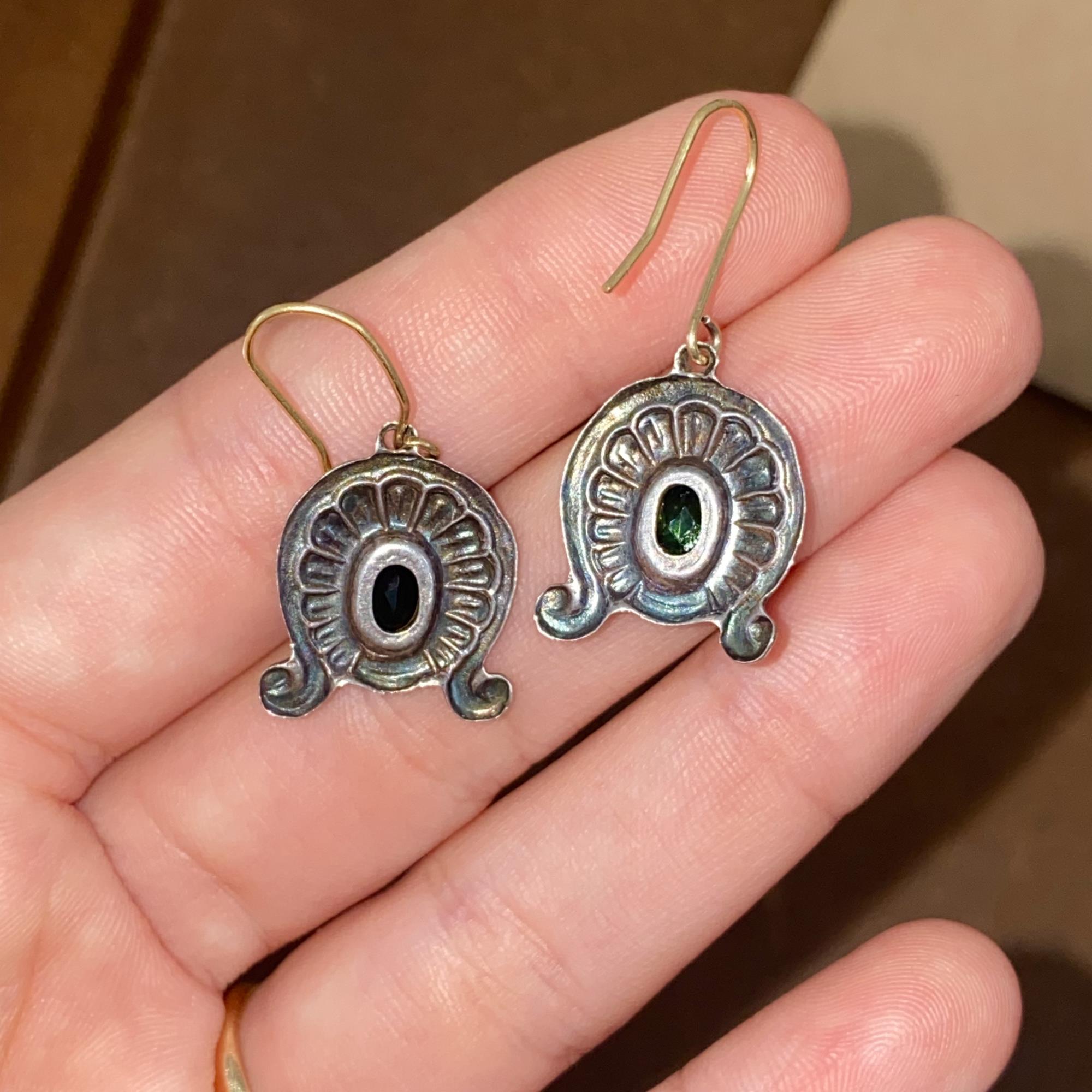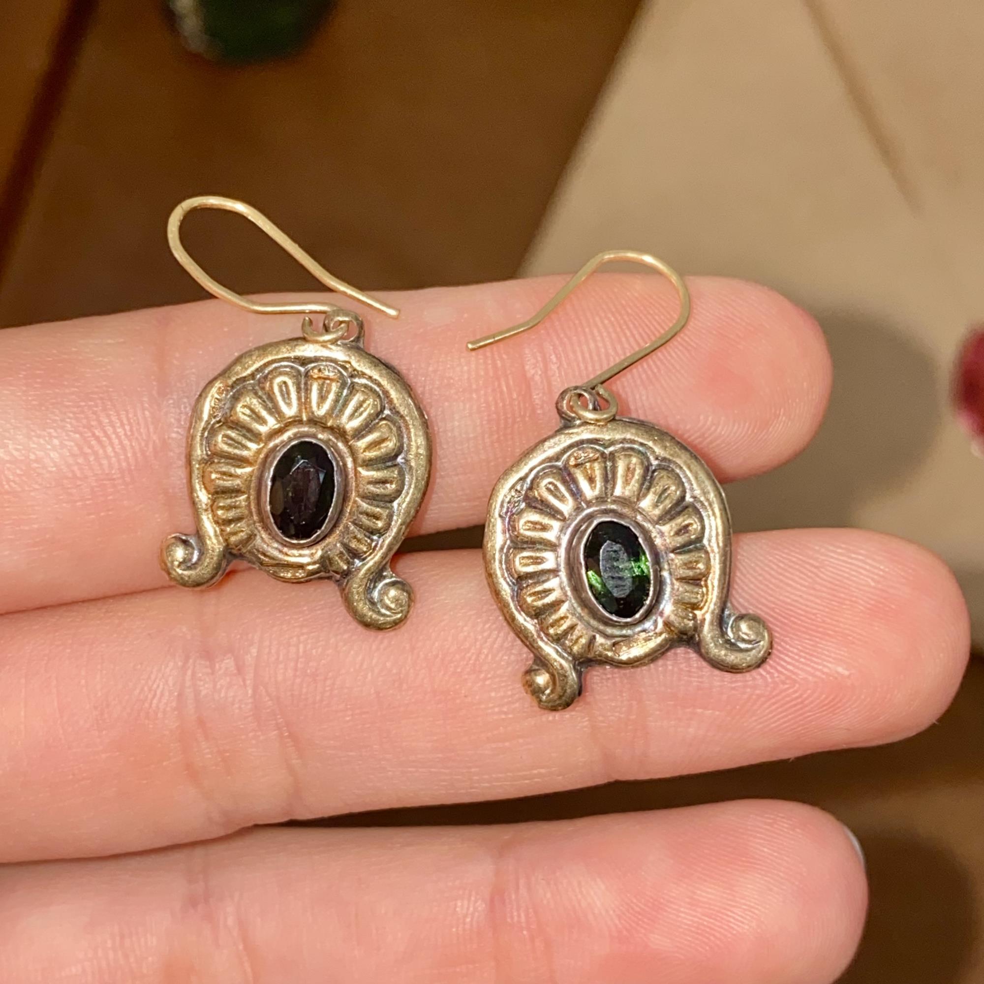 ORECCHINI VINTAGE IN ORO 18KT E ARGENTO CON TORMALINA VERDE