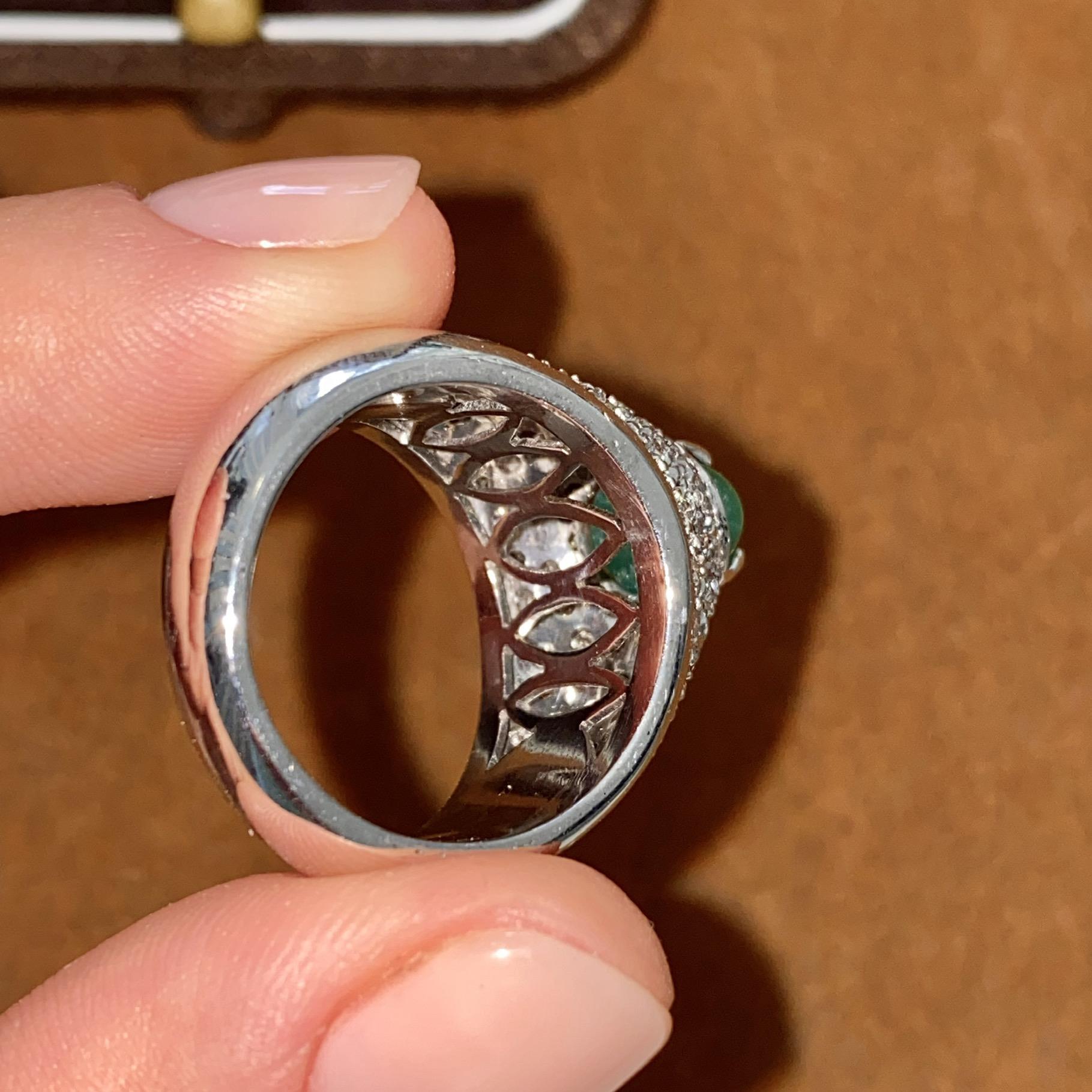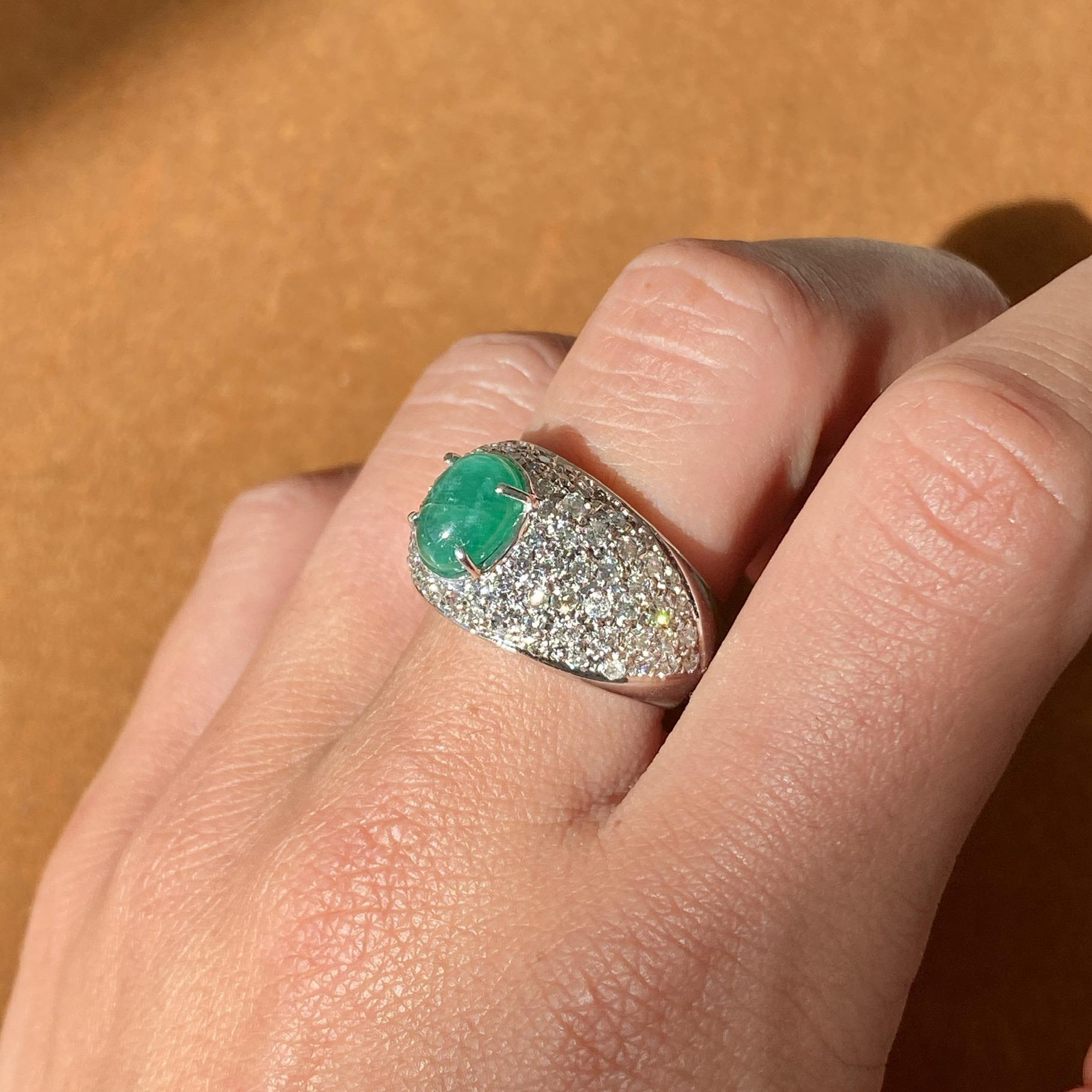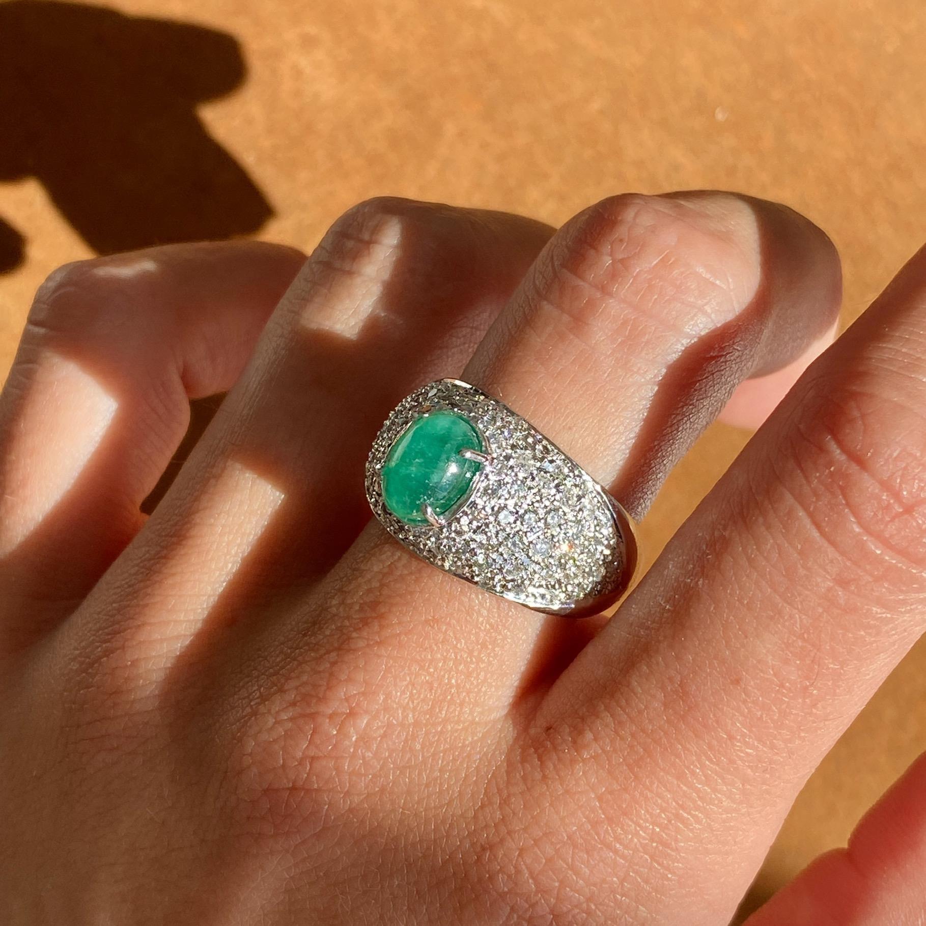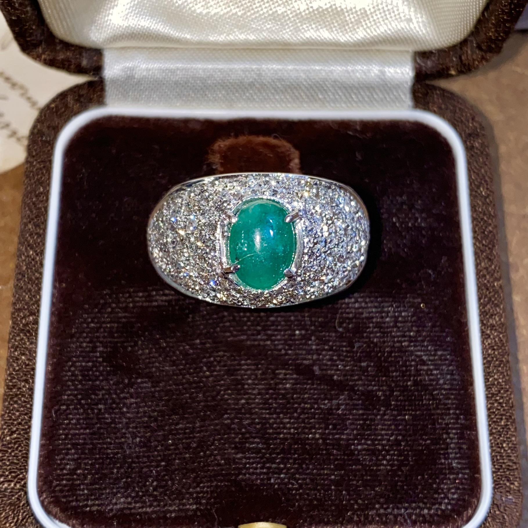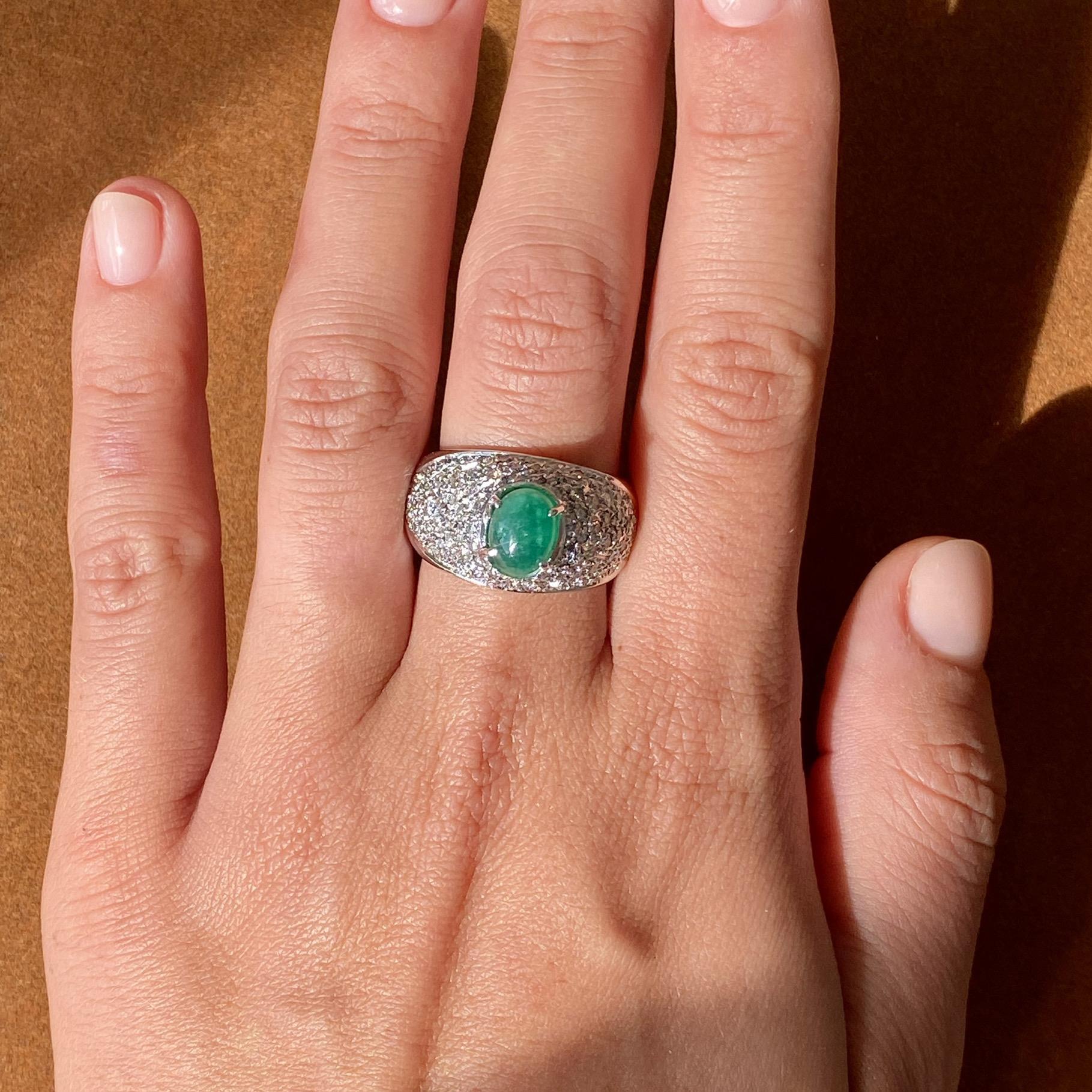 PAVÈ VINTAGE IN ORO 18KT CON DIAMANTI CT 1,20 CA. E SMERALDO CABOCHON CT 1,10 CA.