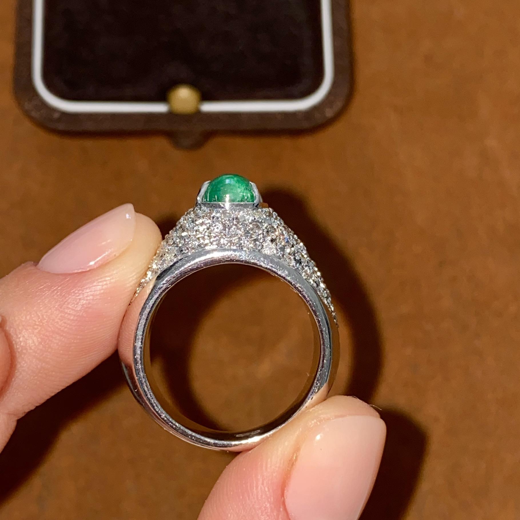 Oro 18kt, smeraldo naturale di taglio cabochon e diamanti naturali H ca. VS2 ca.