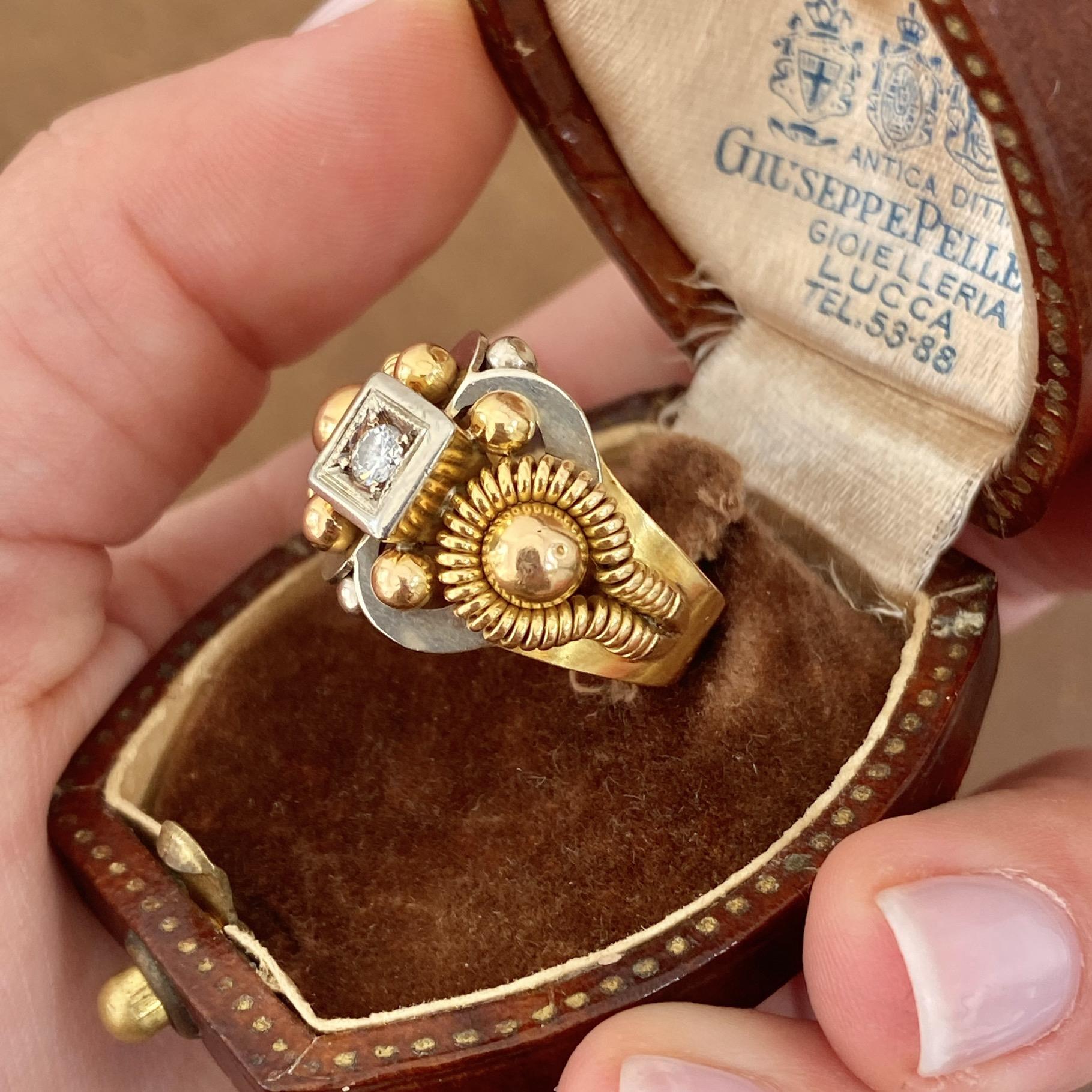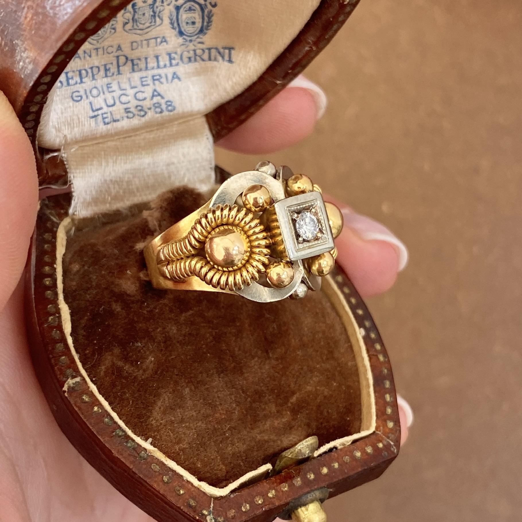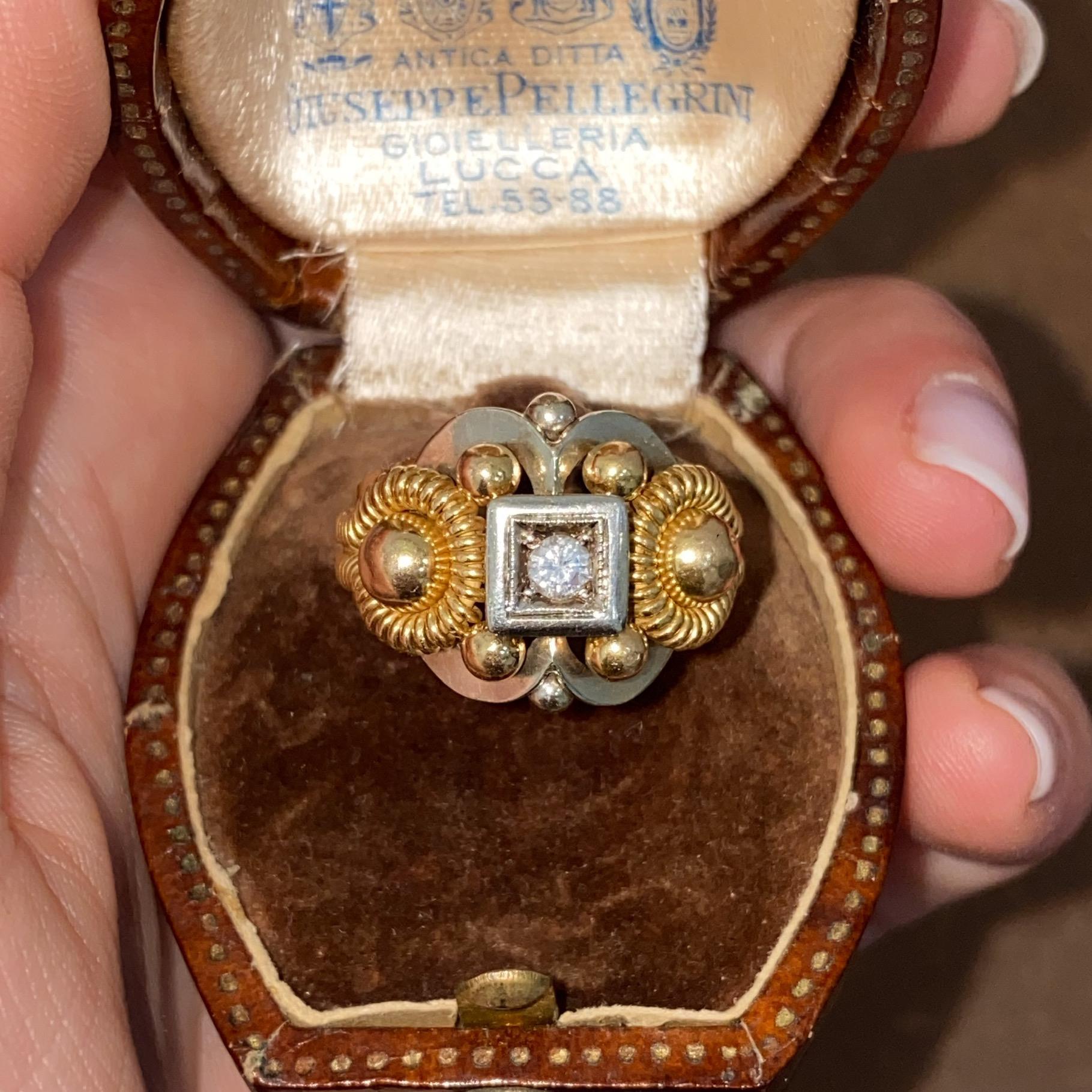 SPLENDIDO ANELLO VINTAGE IN ORO 18KT CON DIAMANTE CT 0,10 CA.