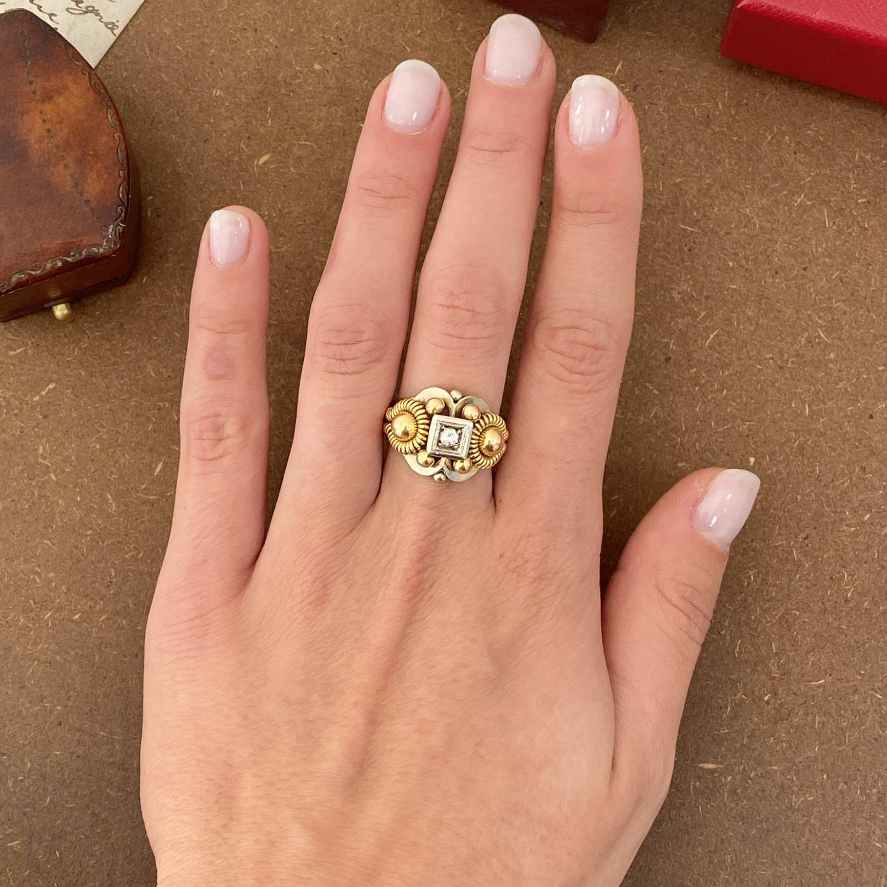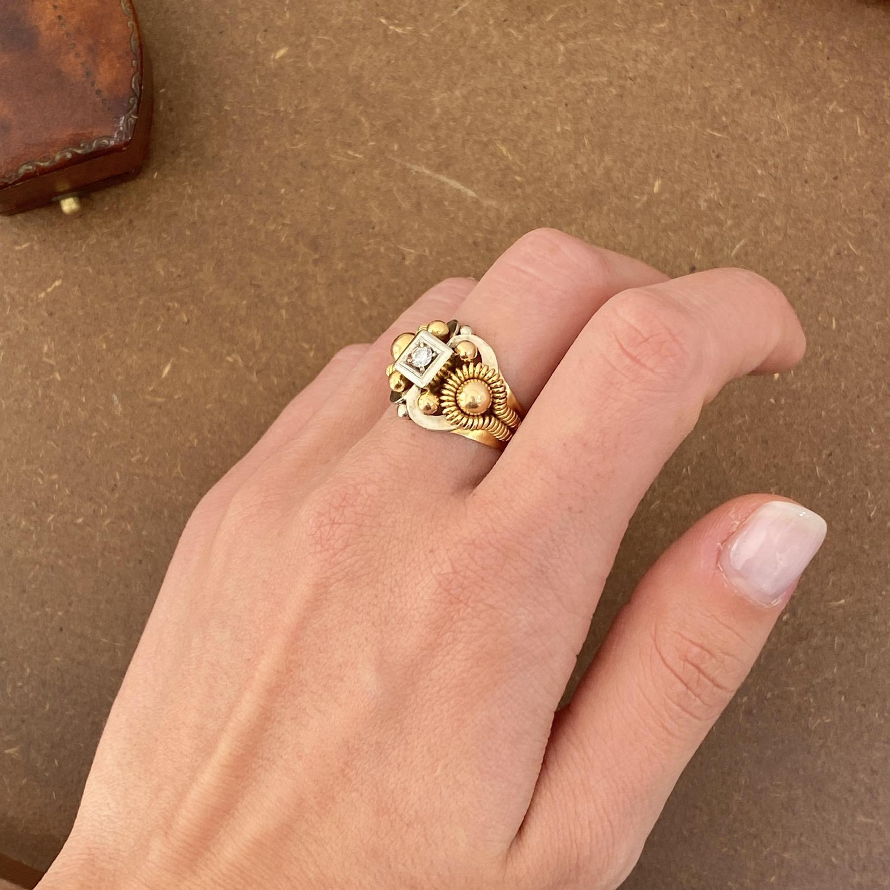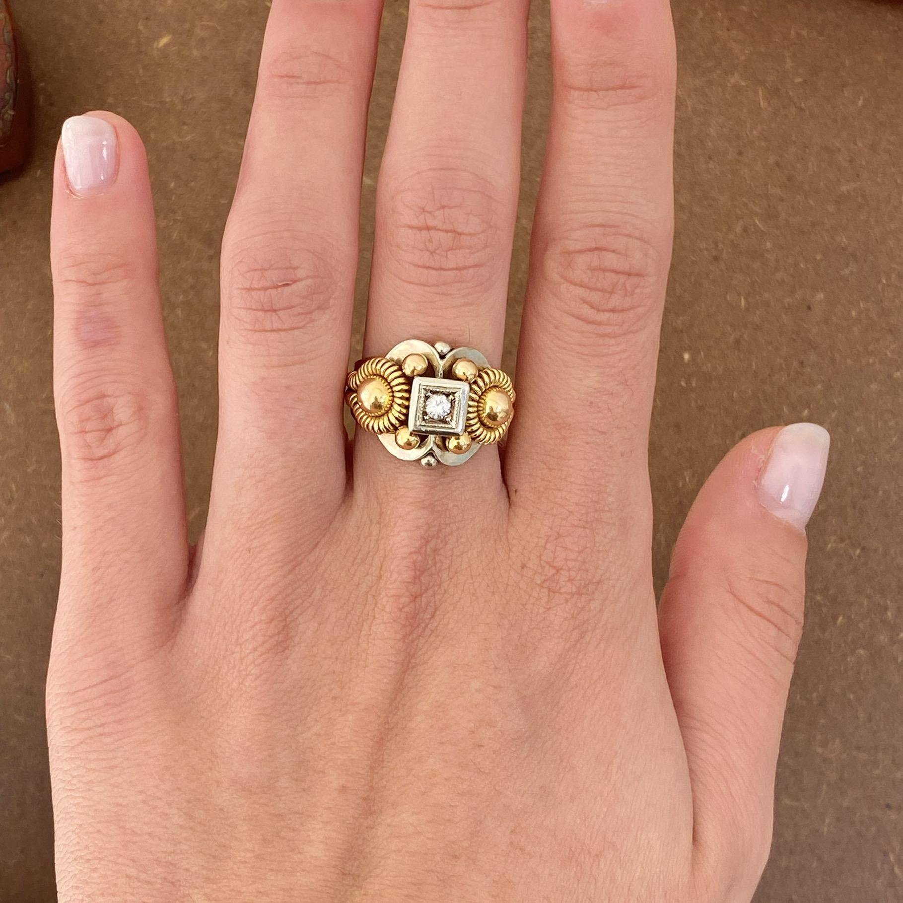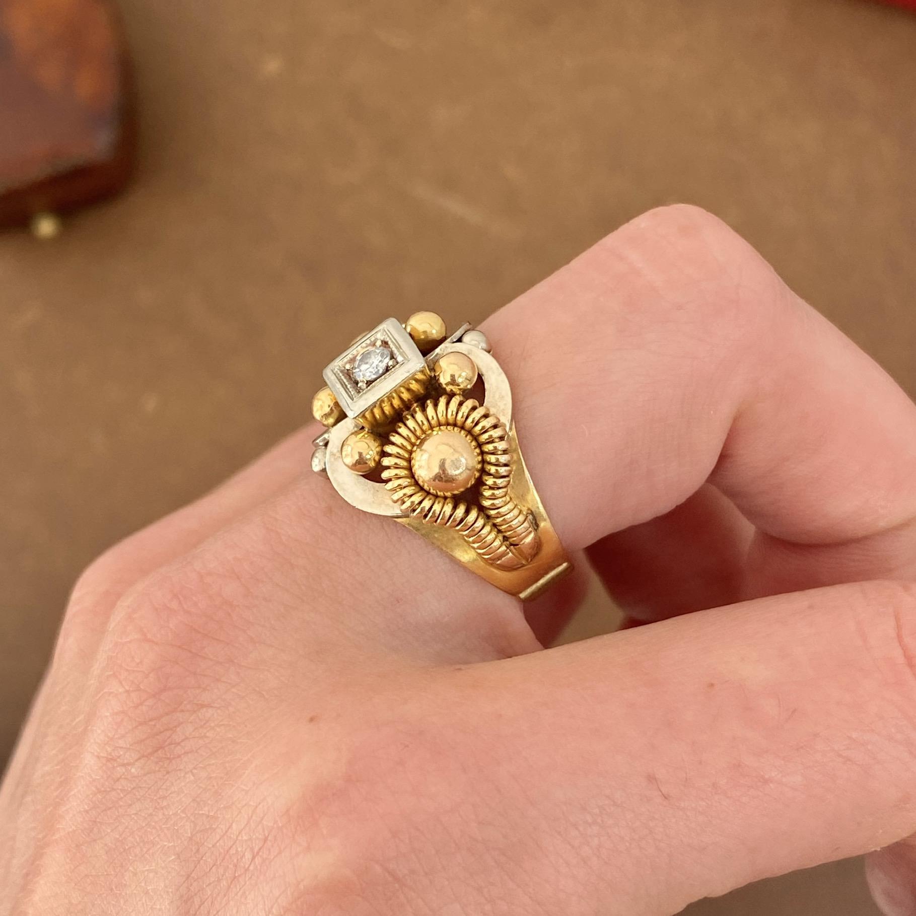 SPLENDIDO ANELLO VINTAGE IN ORO 18KT CON DIAMANTE CT 0,10 CA.