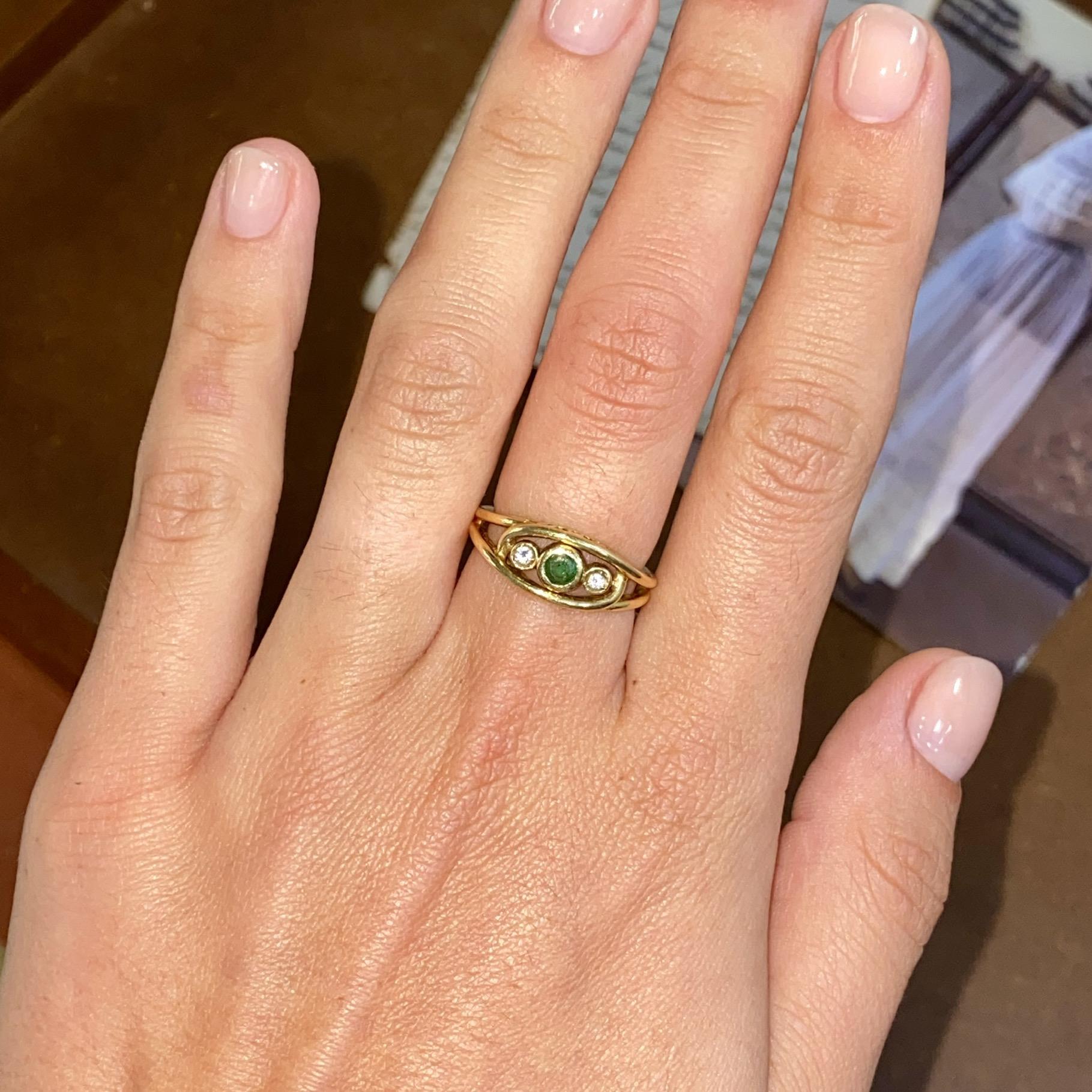 TRILOGY VINTAGE IN ORO 18KT CON SMERALDO CT 0,30 CA E DUE DIAMANTI CT 0,05 CA.
