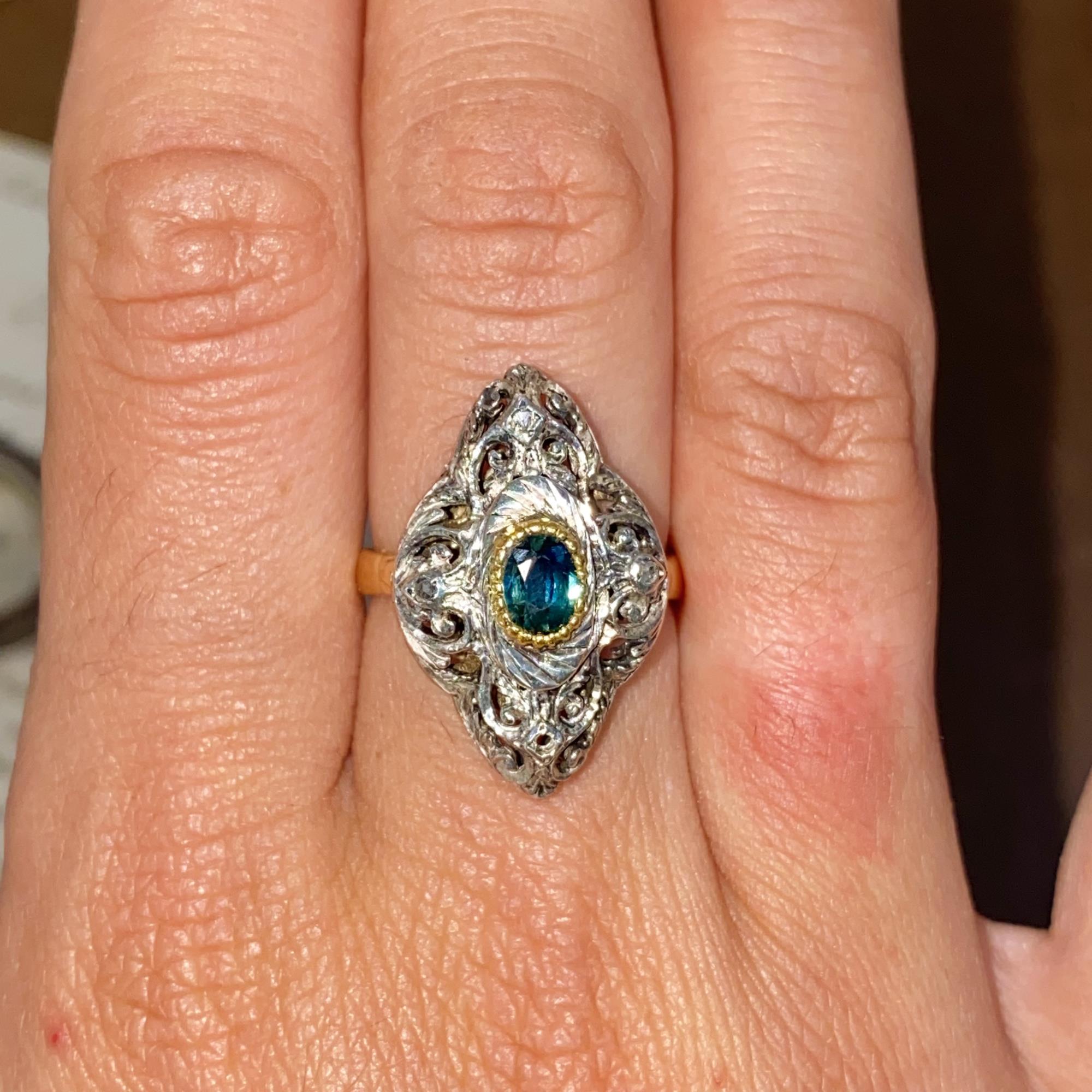 Anello vintage in oro 14kt con zaffiro naturale ct 0,85 ca.