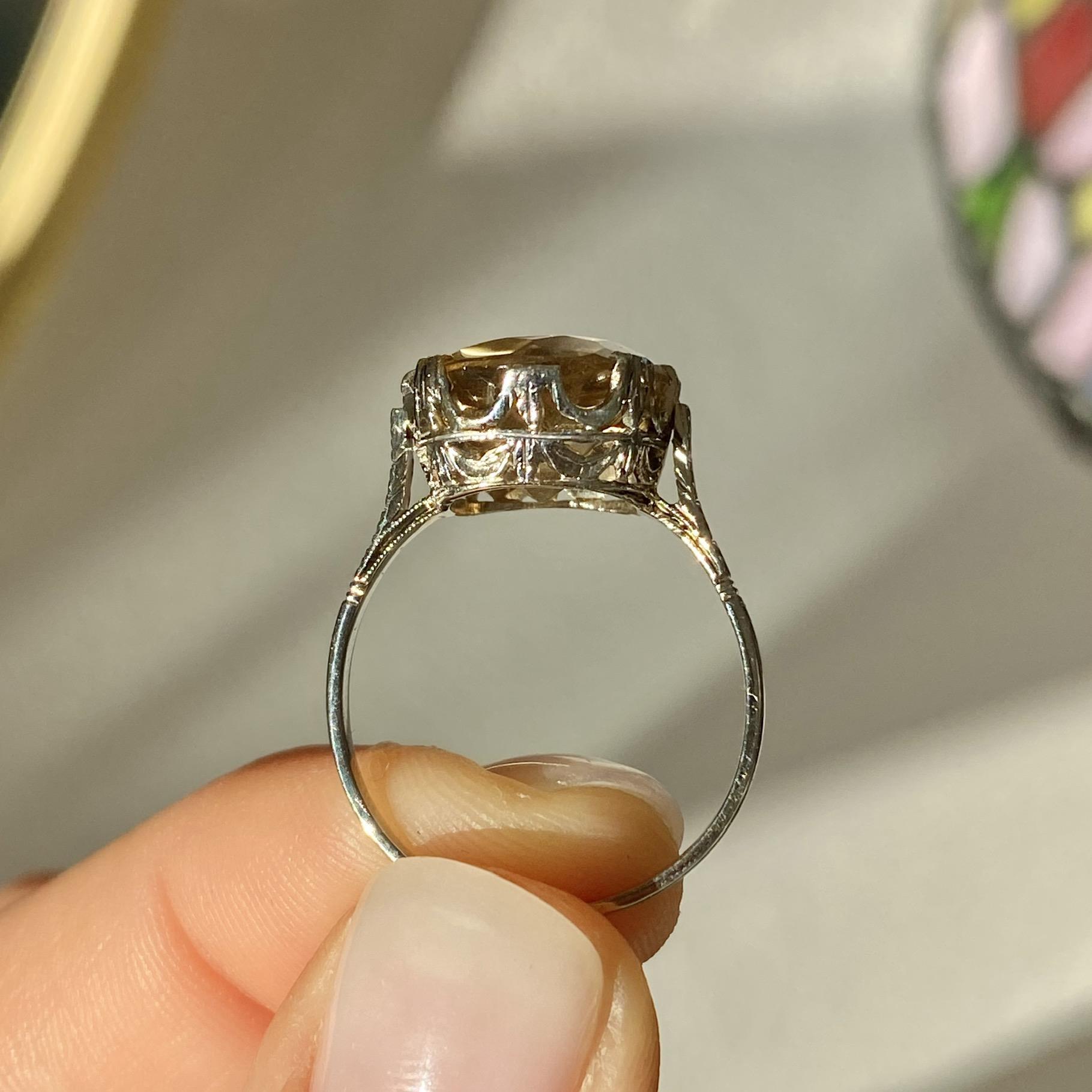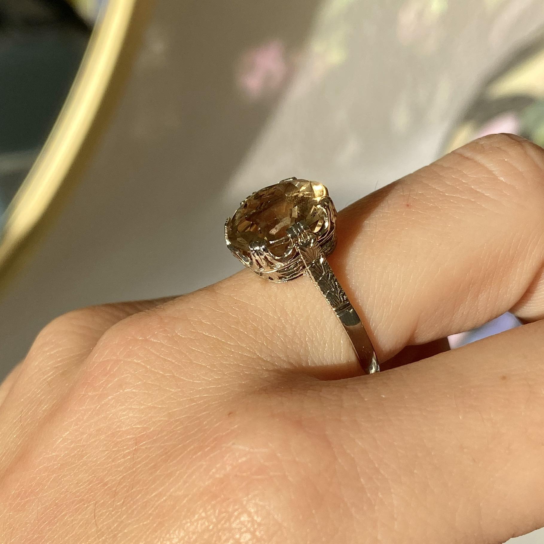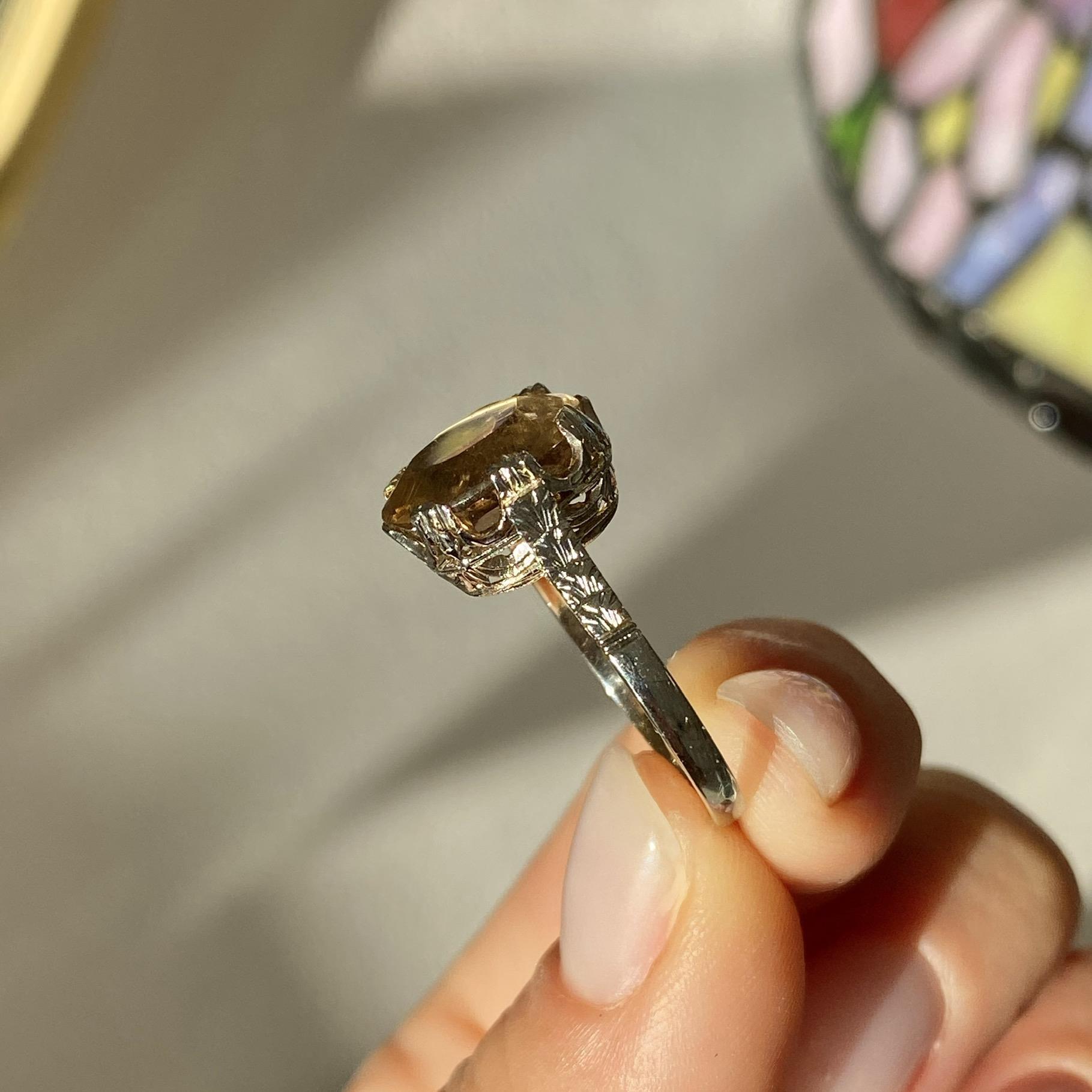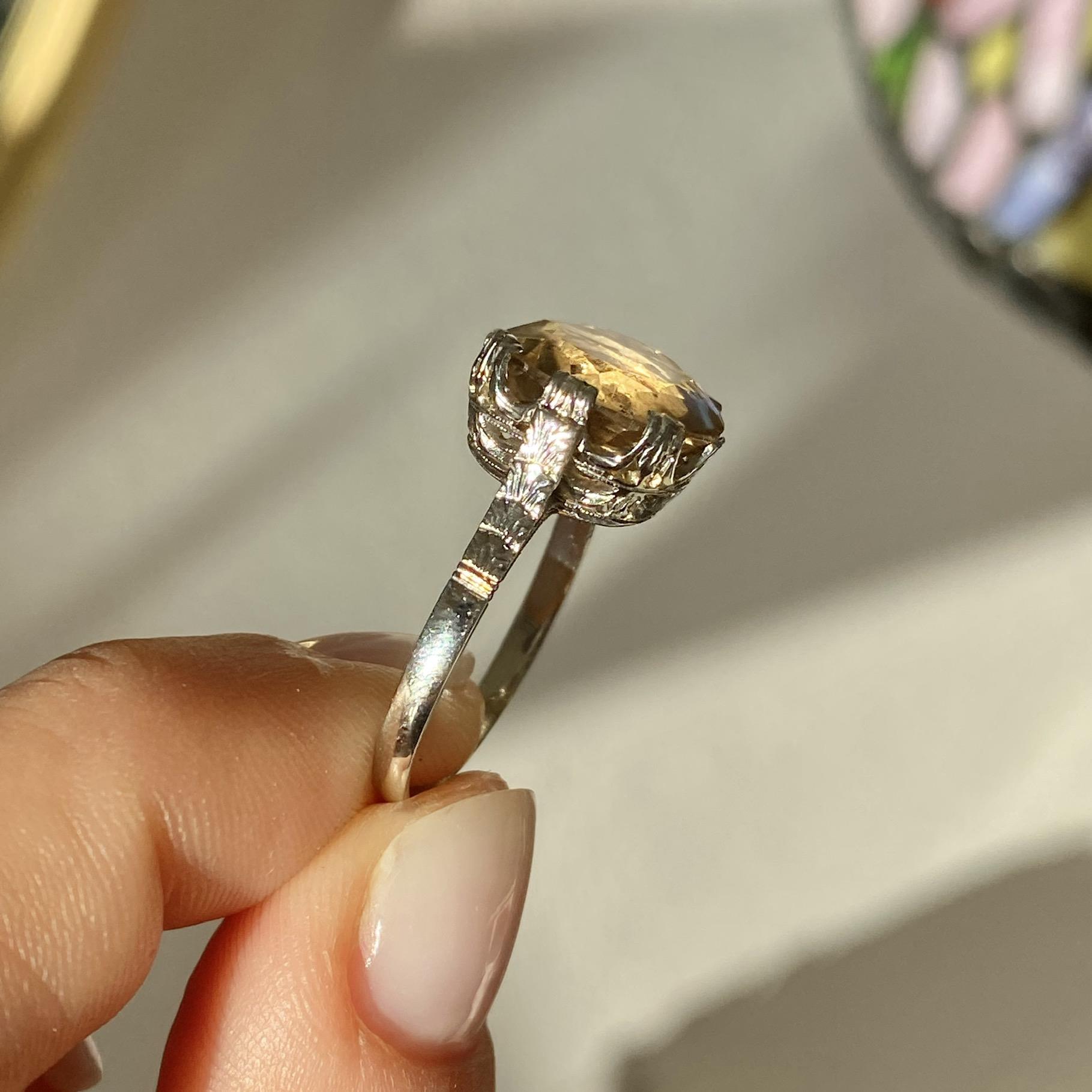 ANELLO ANTICO IN ORO BIANCO 18KT CON QUARZO CITRINO CT 4,00 CA.