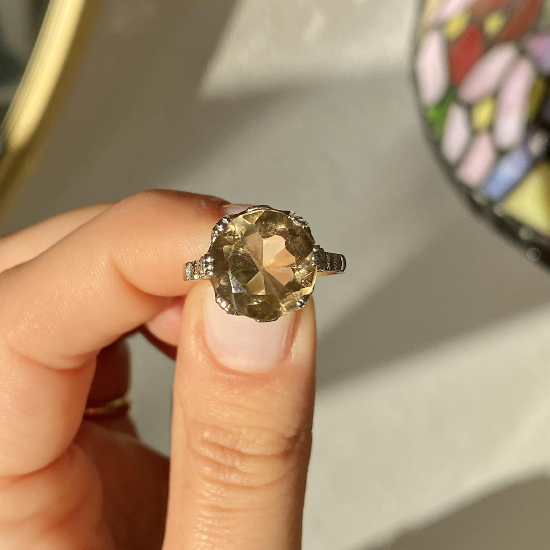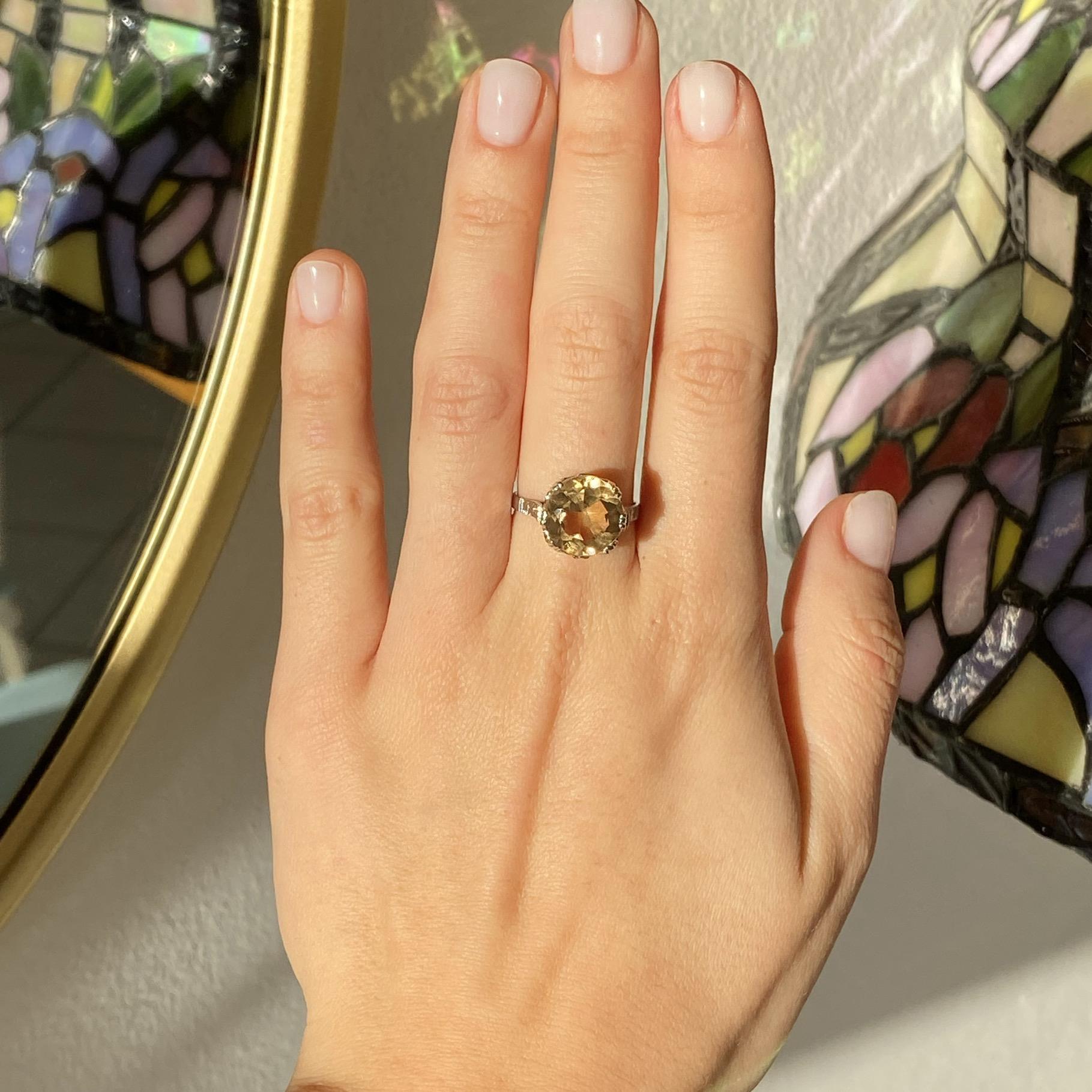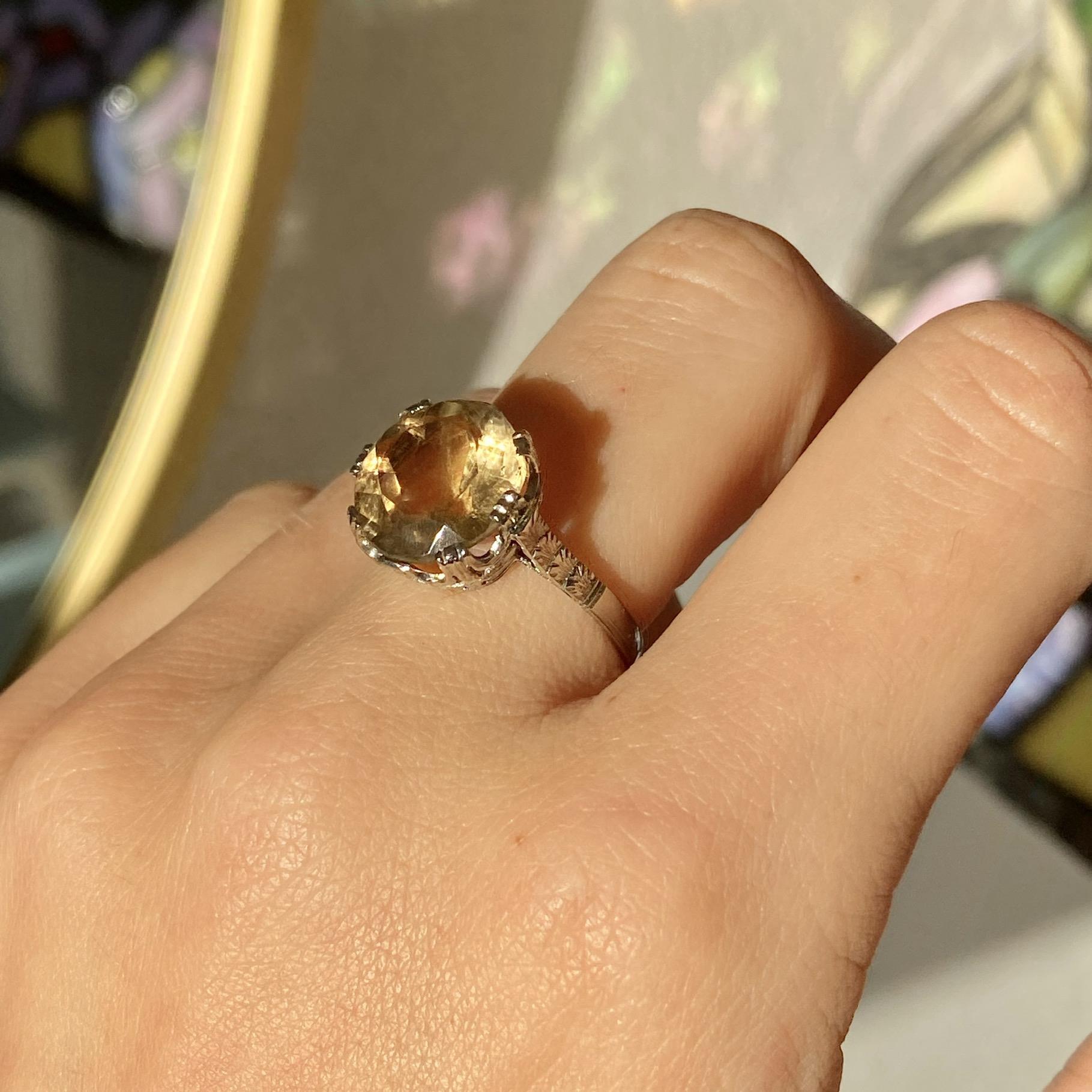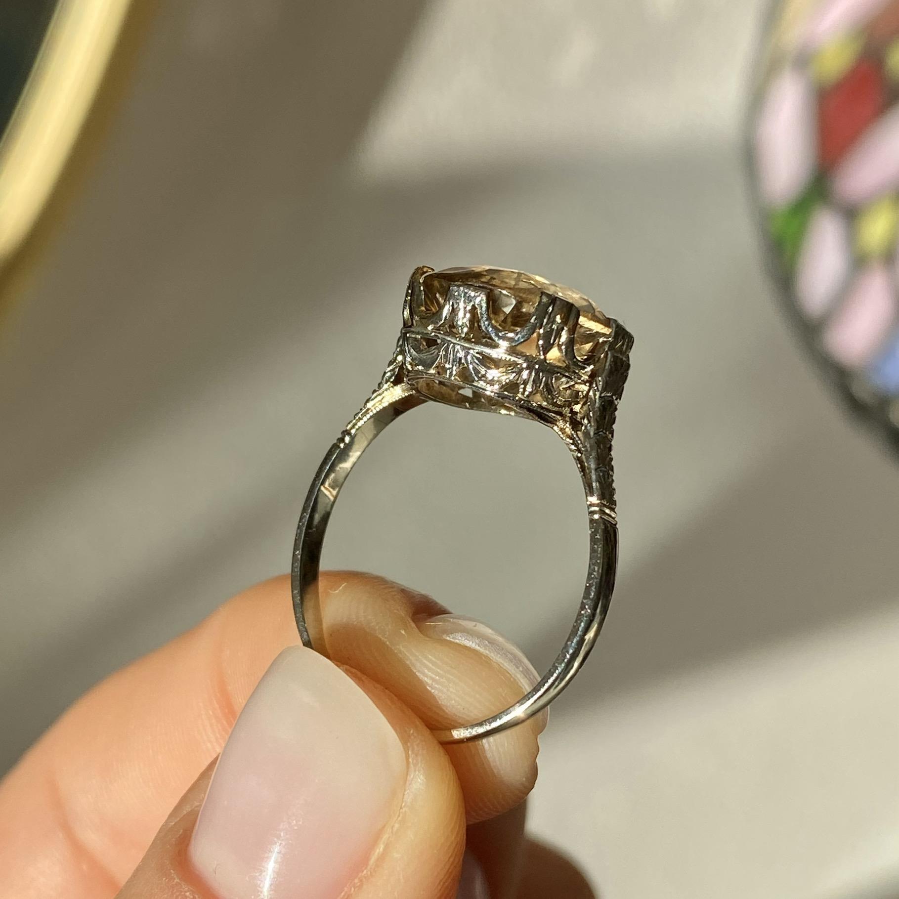 ANELLO ANTICO IN ORO BIANCO 18KT CON QUARZO CITRINO CT 4,00 CA.