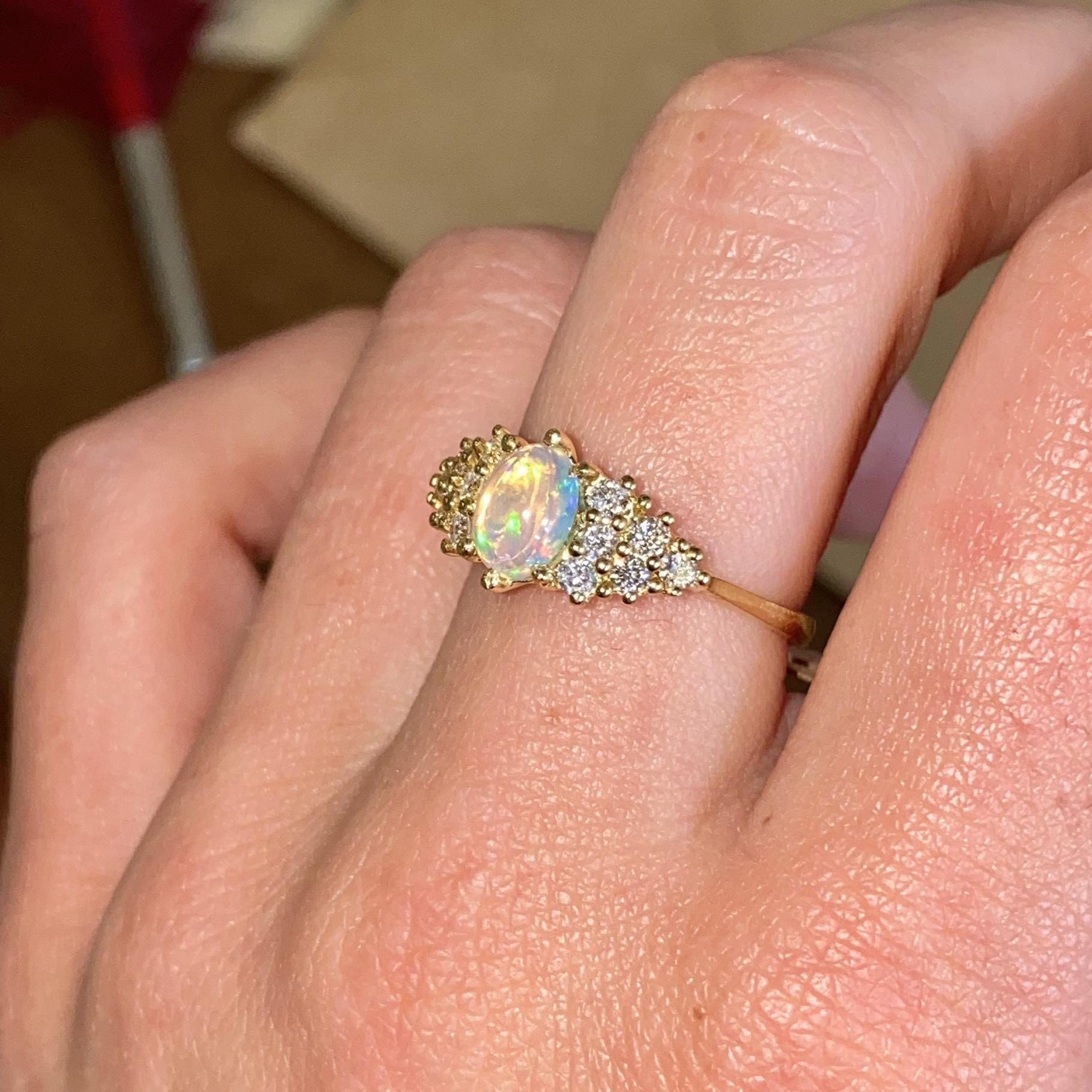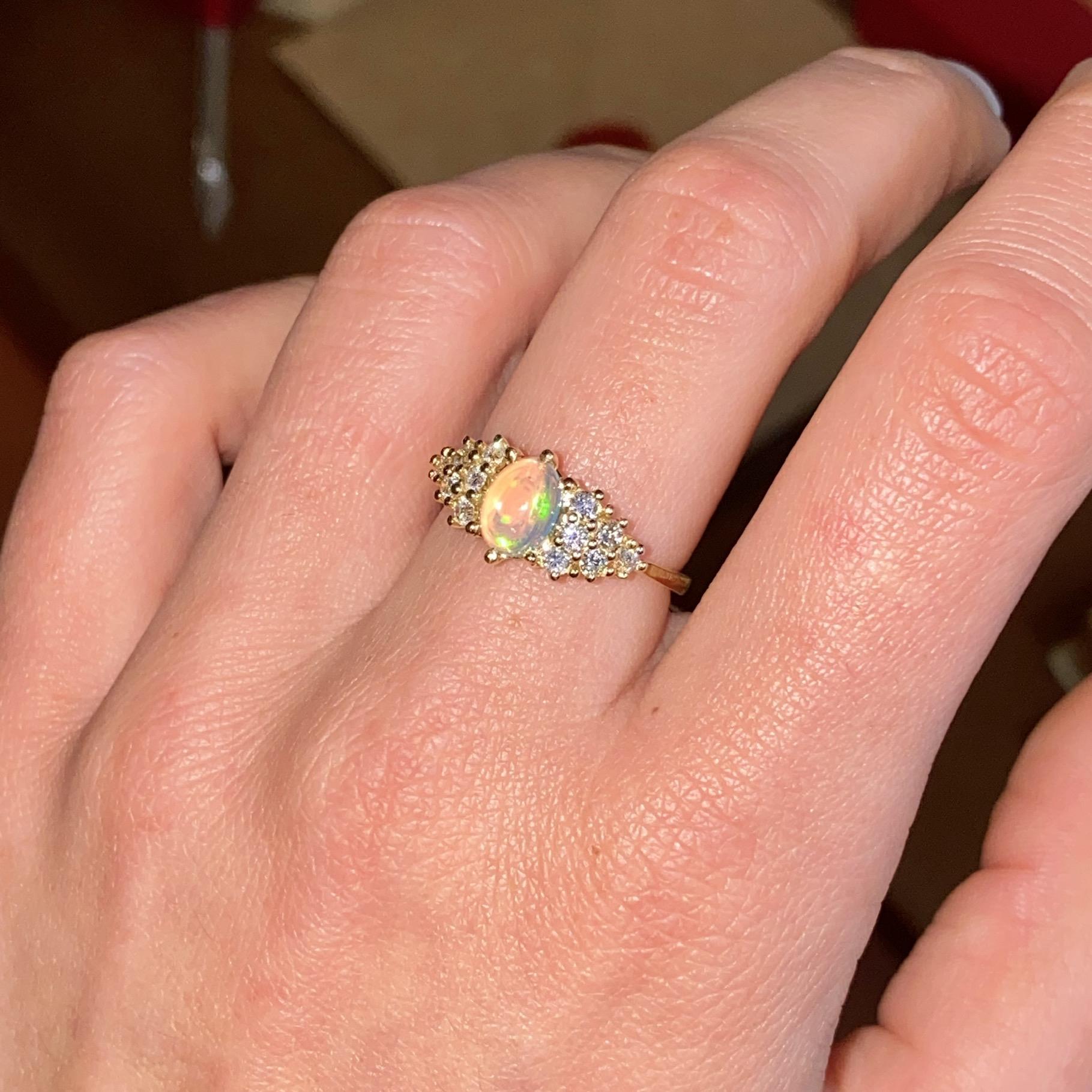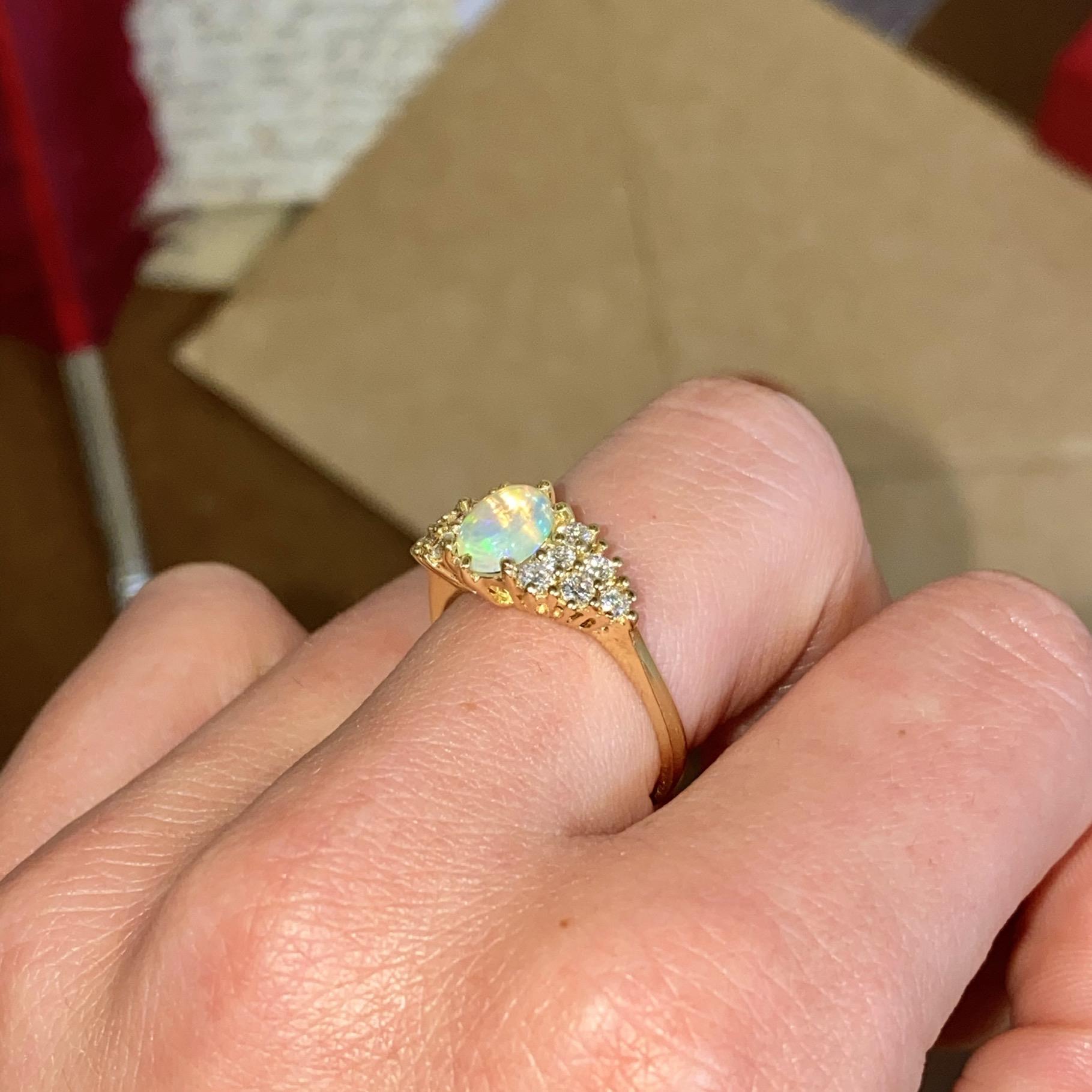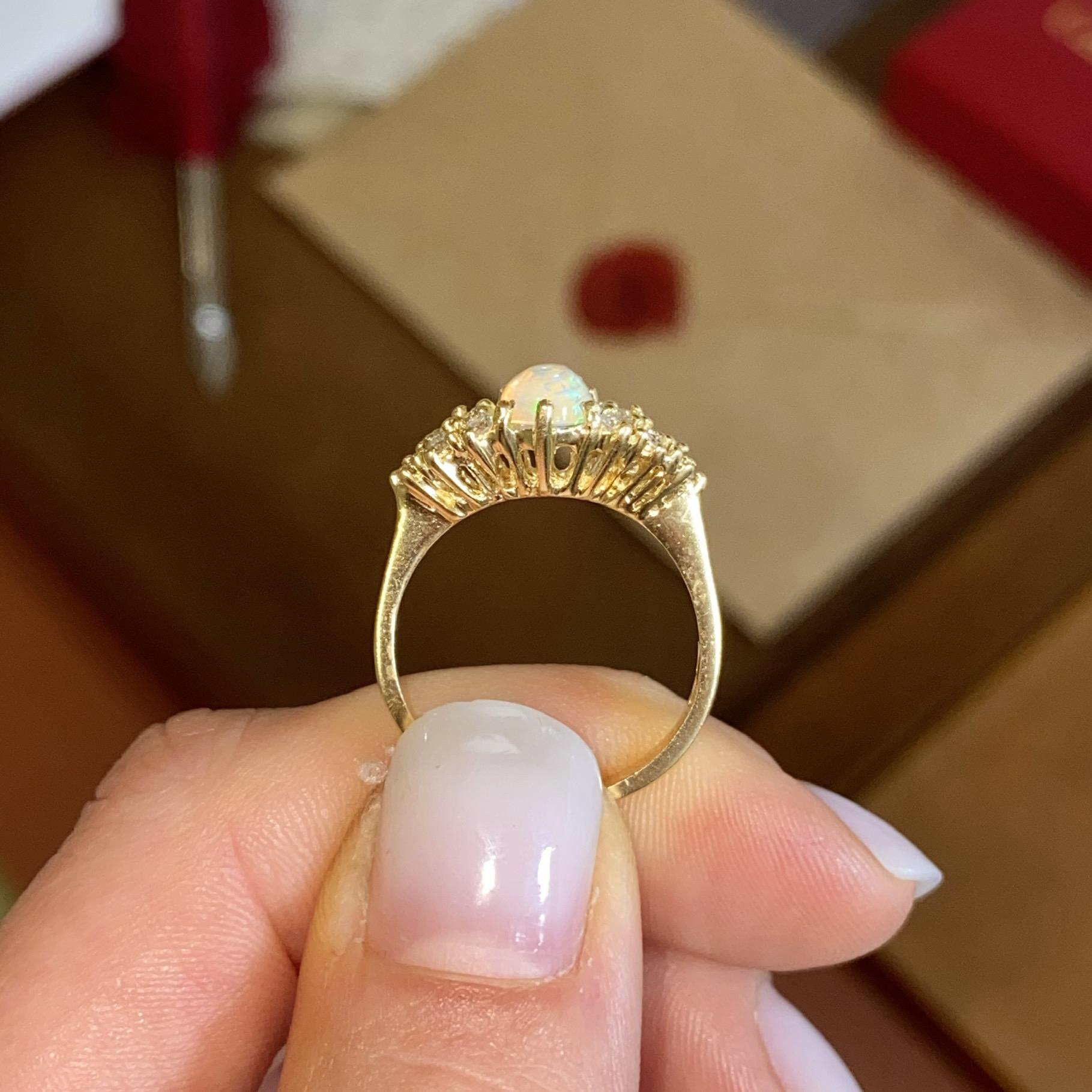 ANELLO IN ORO 18KT CON OPALE CT 0,50 CA. E DIAMANTI CT 0,40 CA.