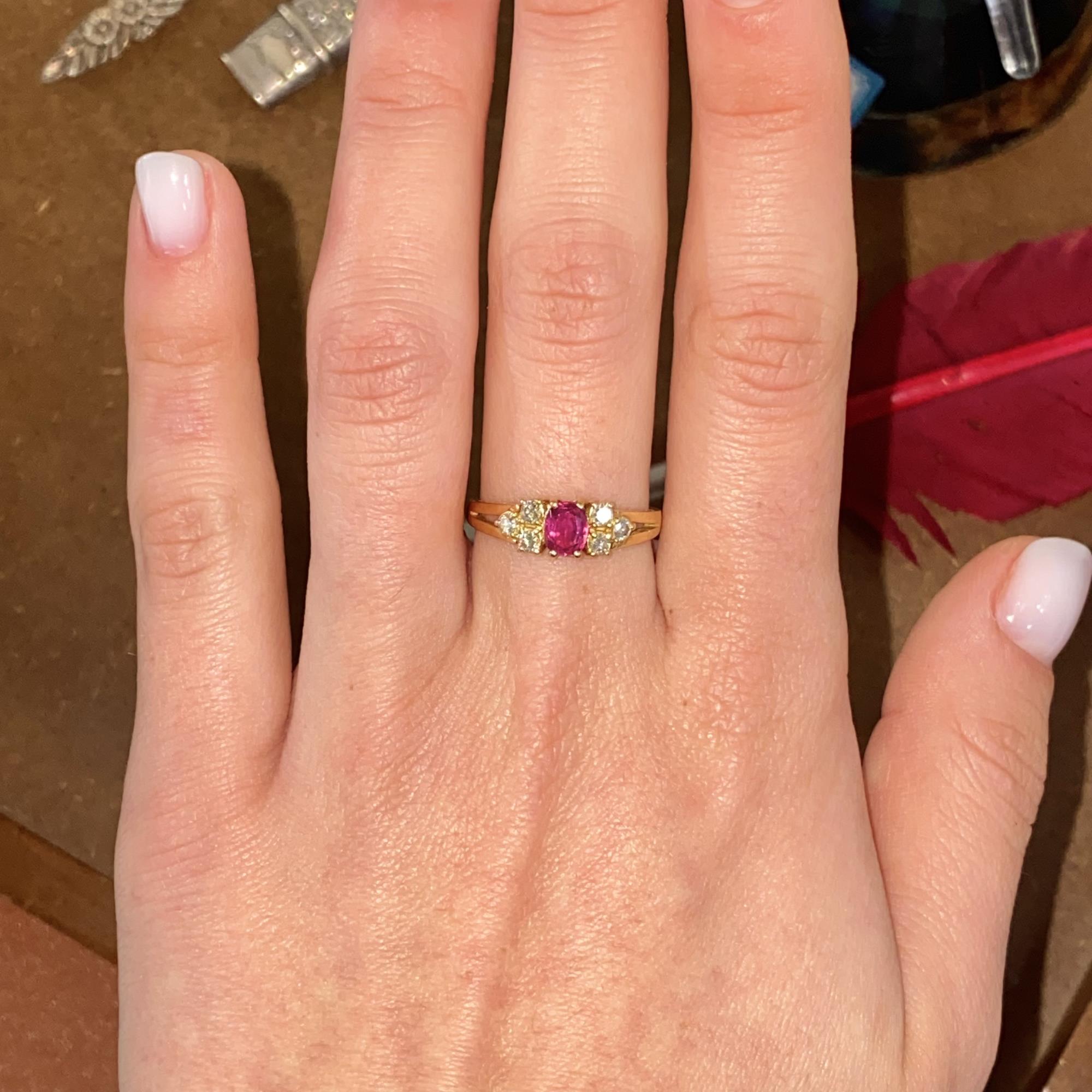ANELLO IN ORO 18KT CON RUBINO CT 0,55 CA. E DIAMANTI CT 0,25 CA.