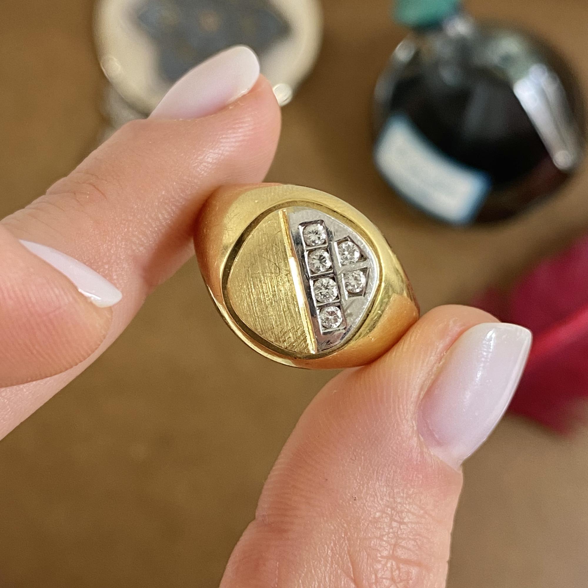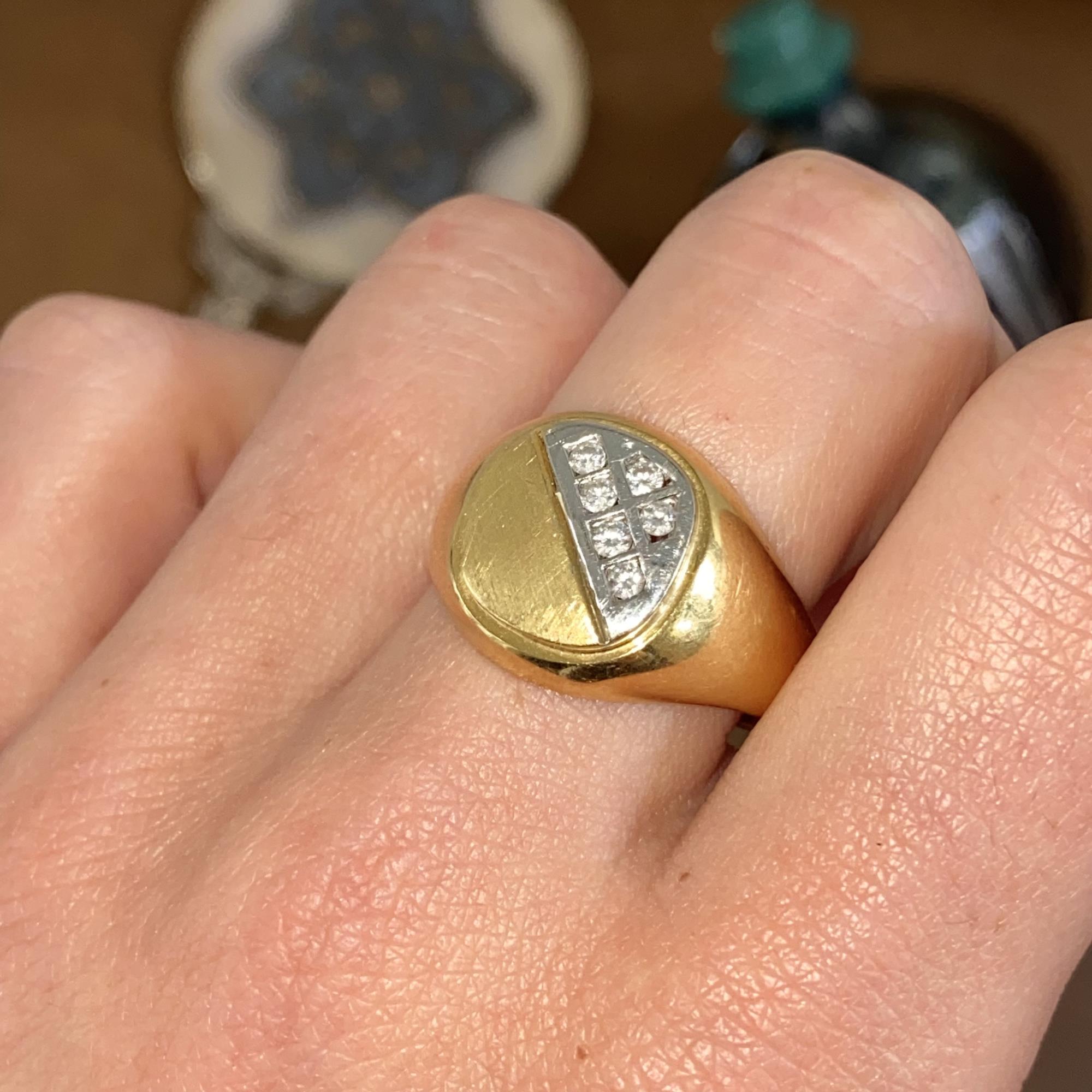 ANELLO VINTAGE CHEVALIER IN ORO 18KT CON 6 DIAMANTI PER CT 0,15 CA.