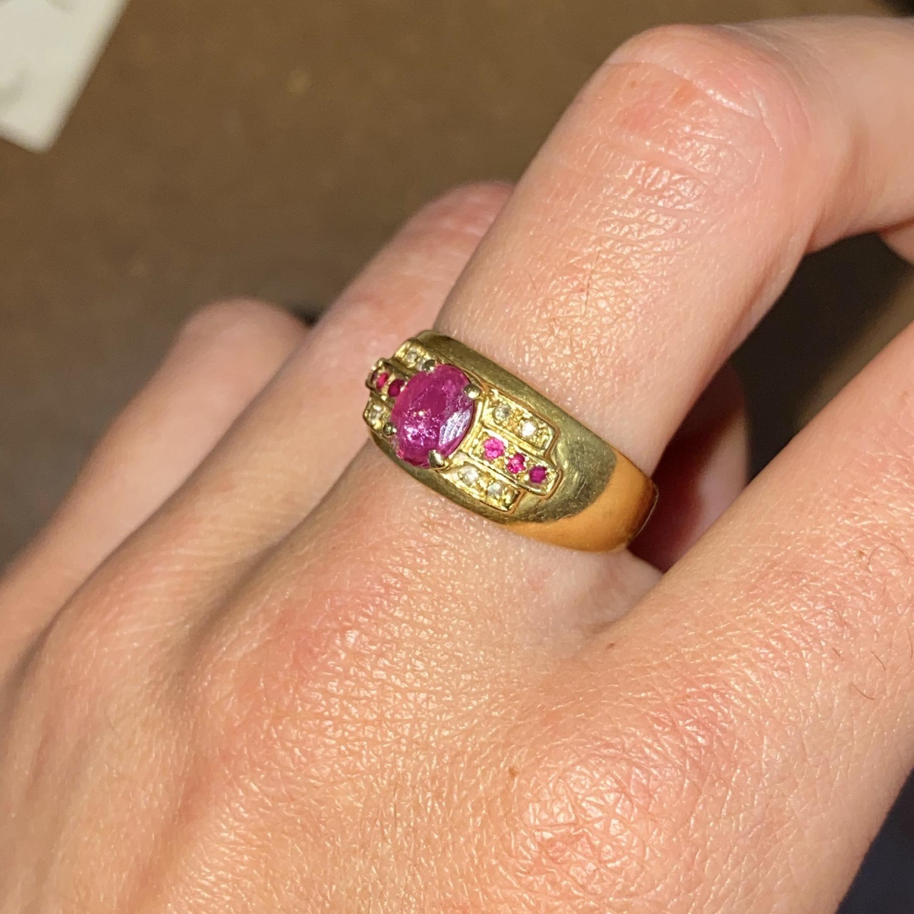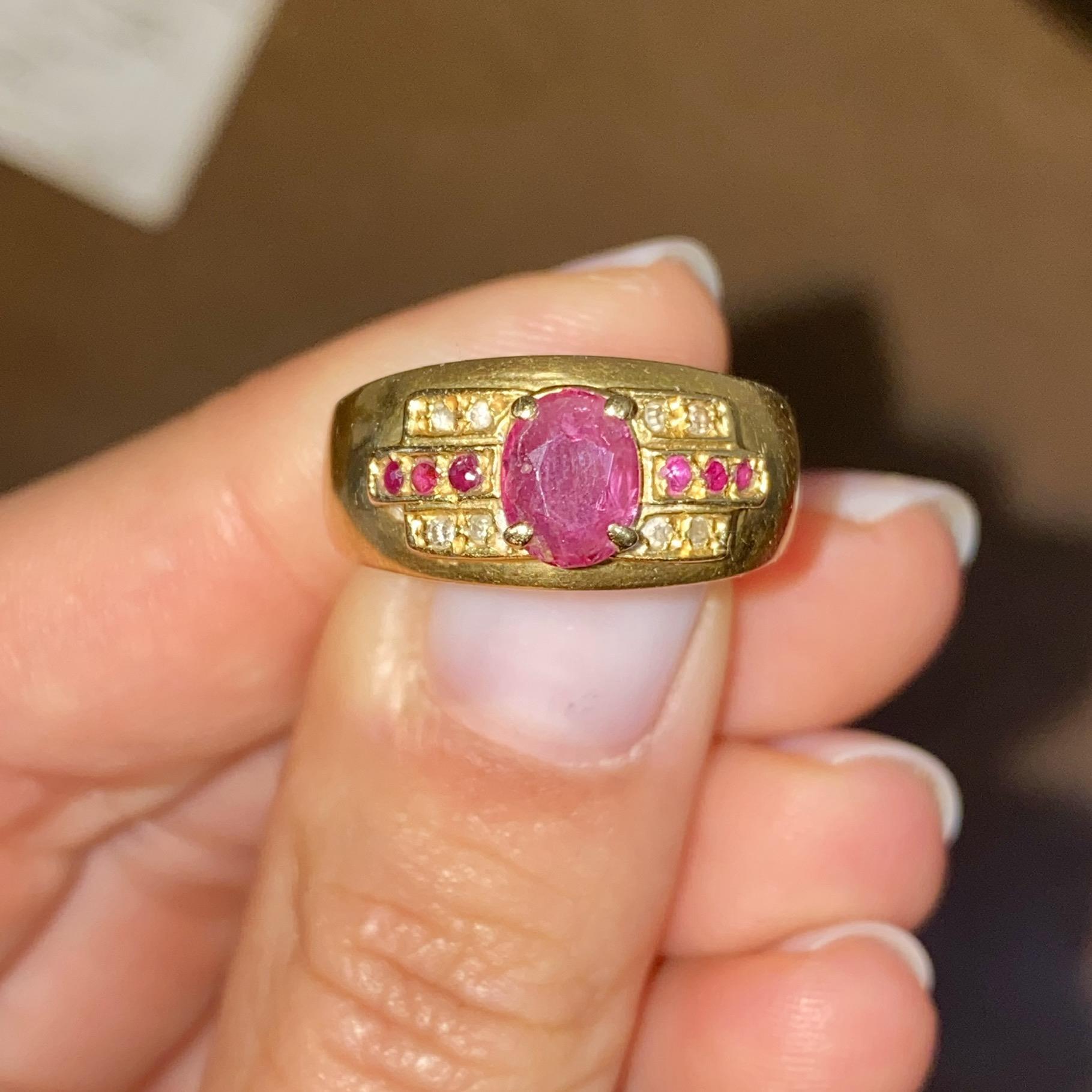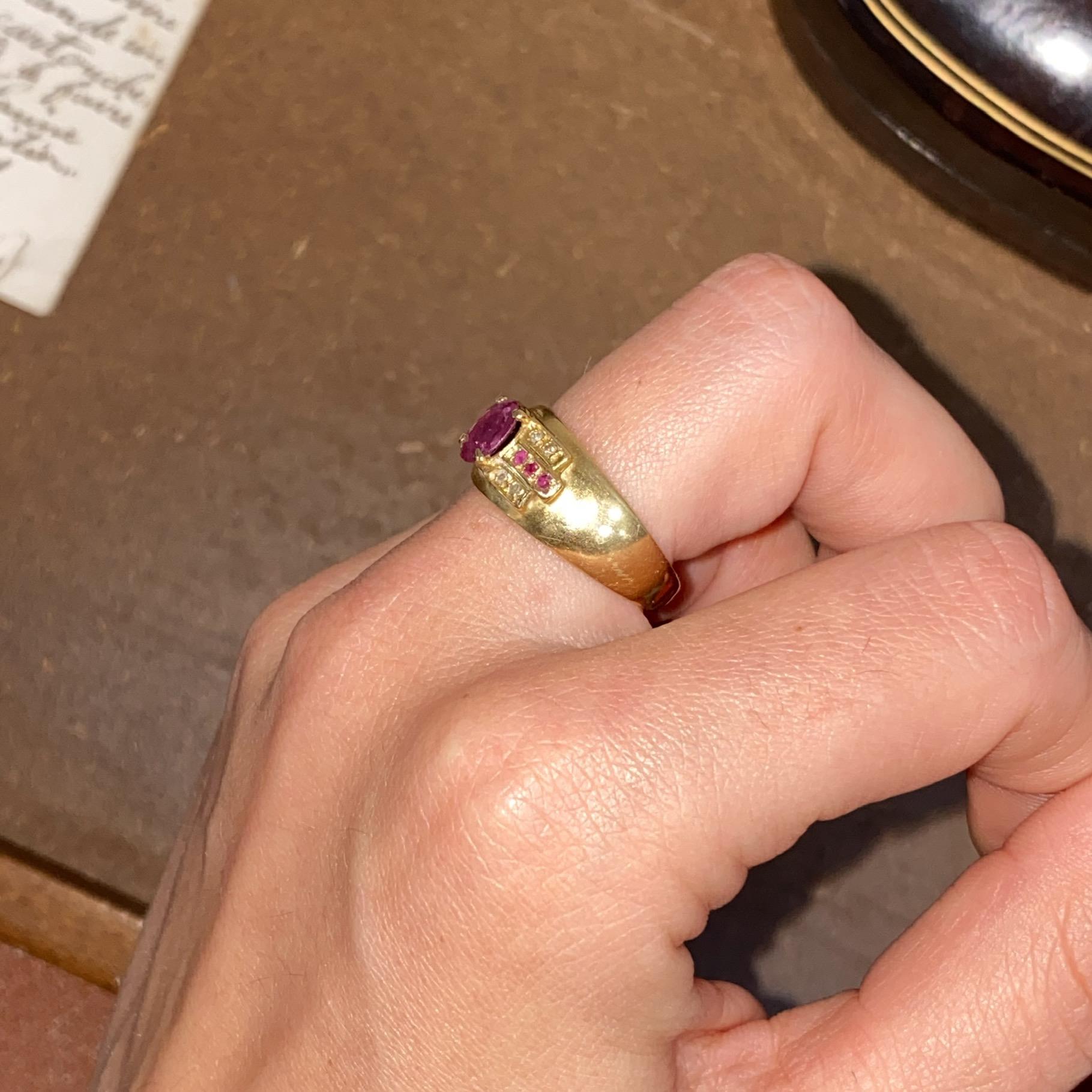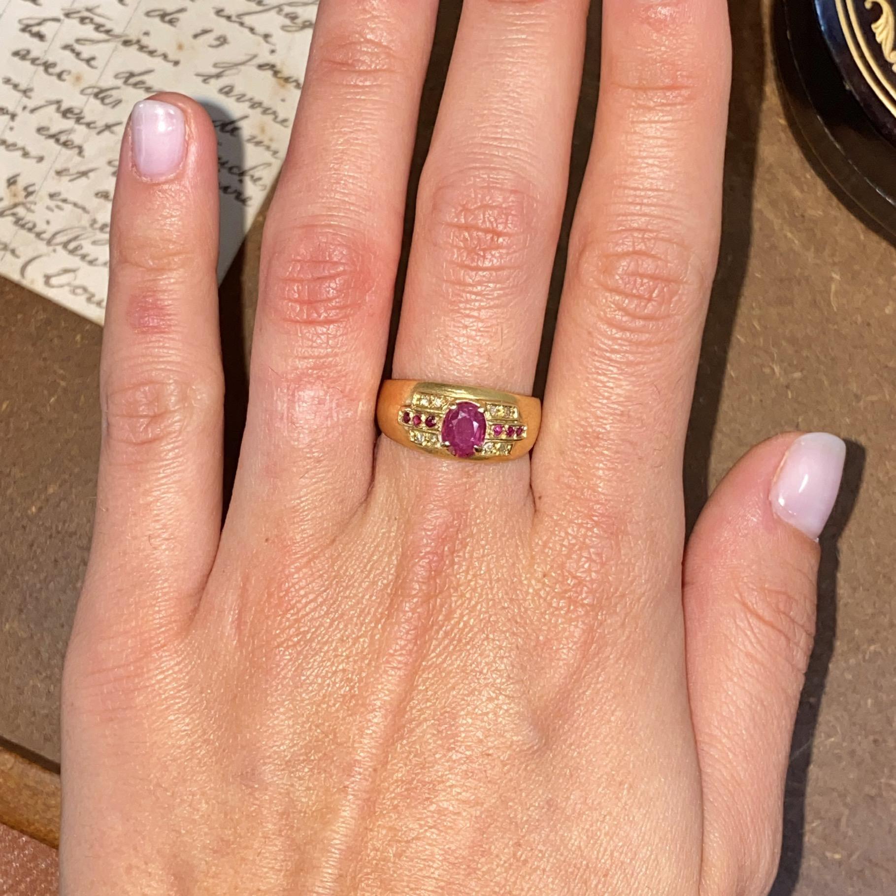ANELLO VINTAGE FASCIA IN ORO 18KT CON RUBINI CT 1,00 E DIAMANTI CT 0,06 CA.