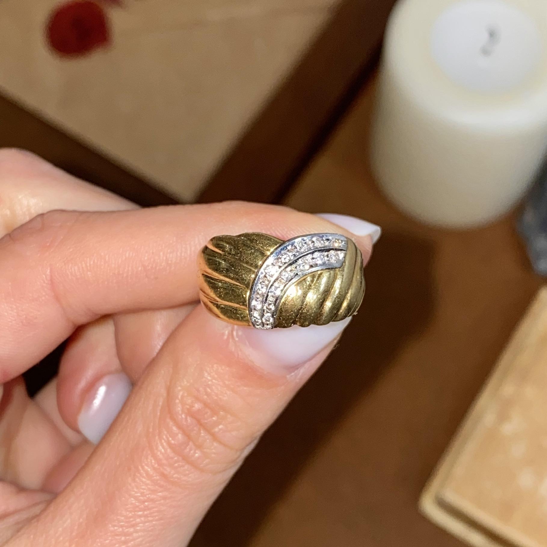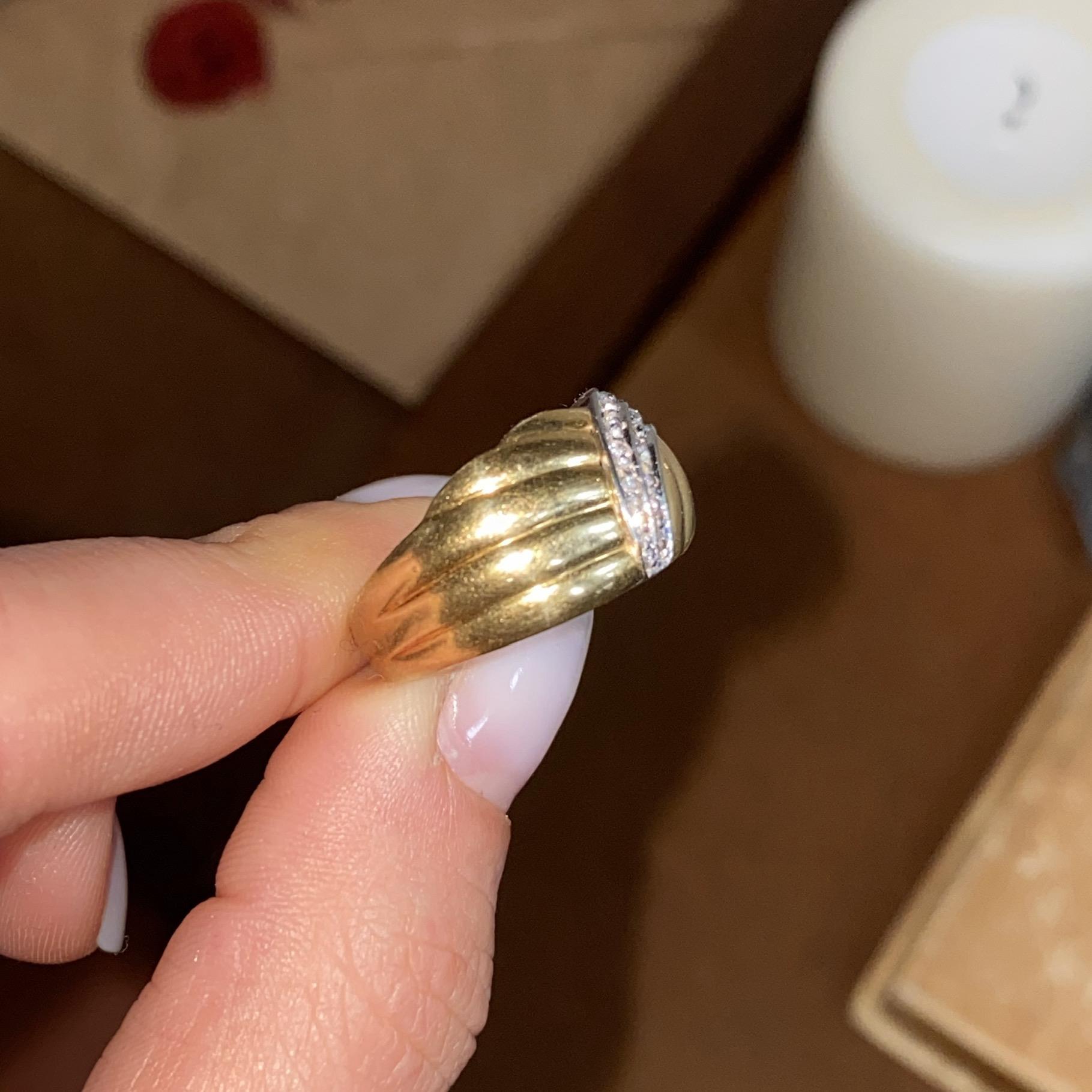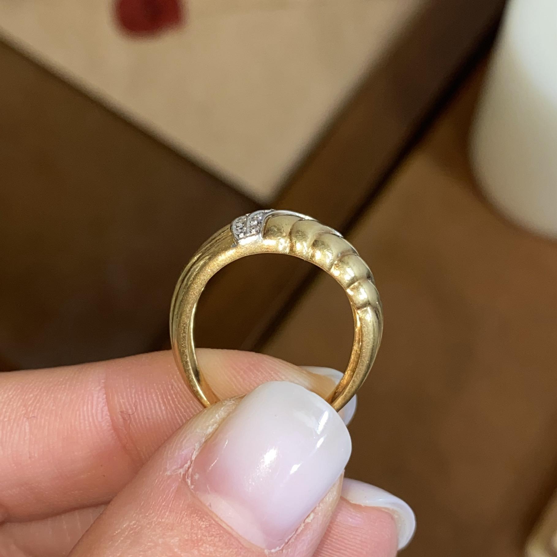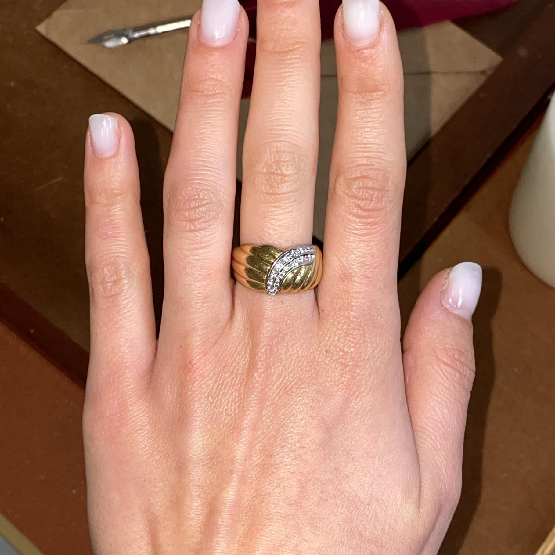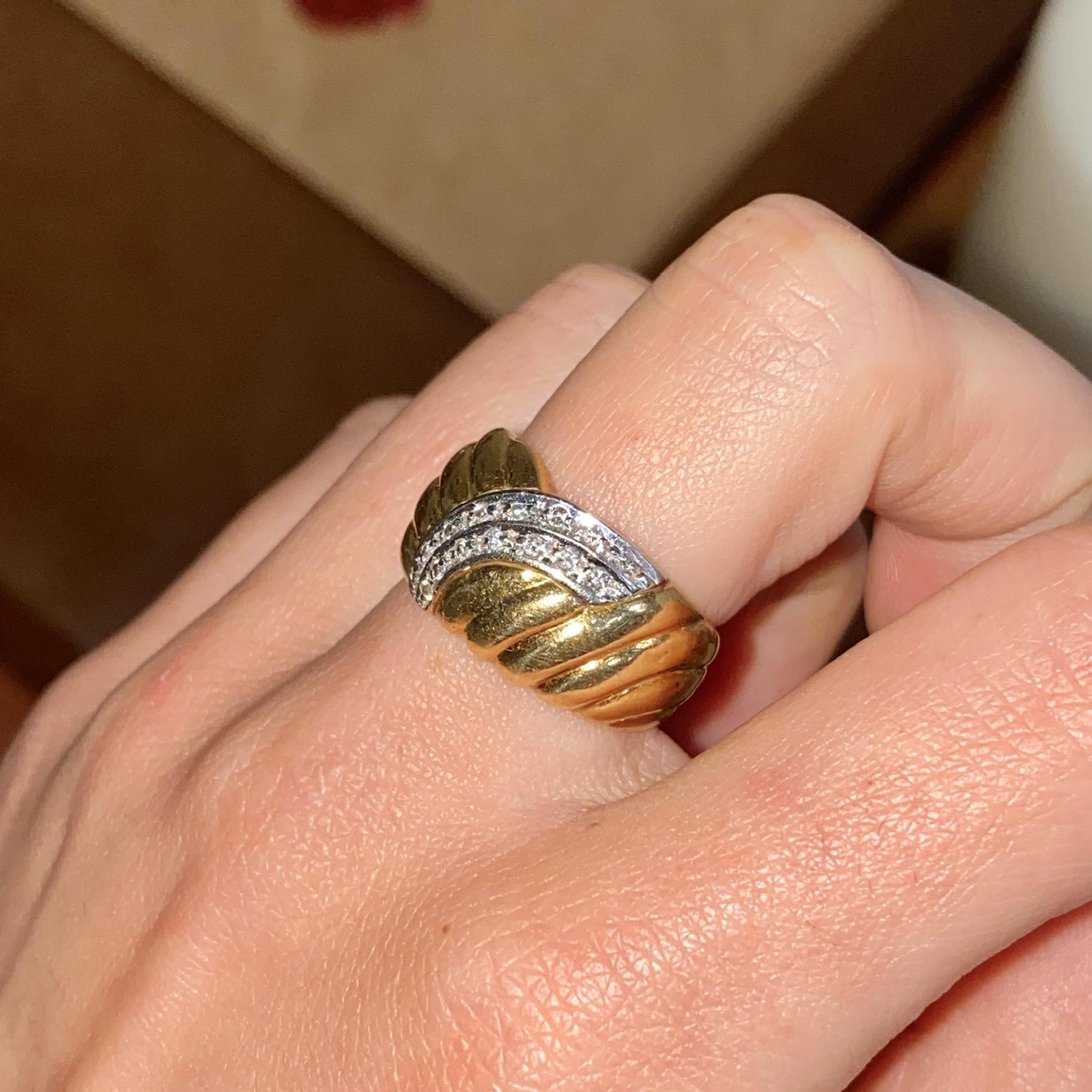 ANELLO VINTAGE FASCIA IN ORO GIALLO E BIANCO 18KT CON DIAMANTI CT 0,15 CA.