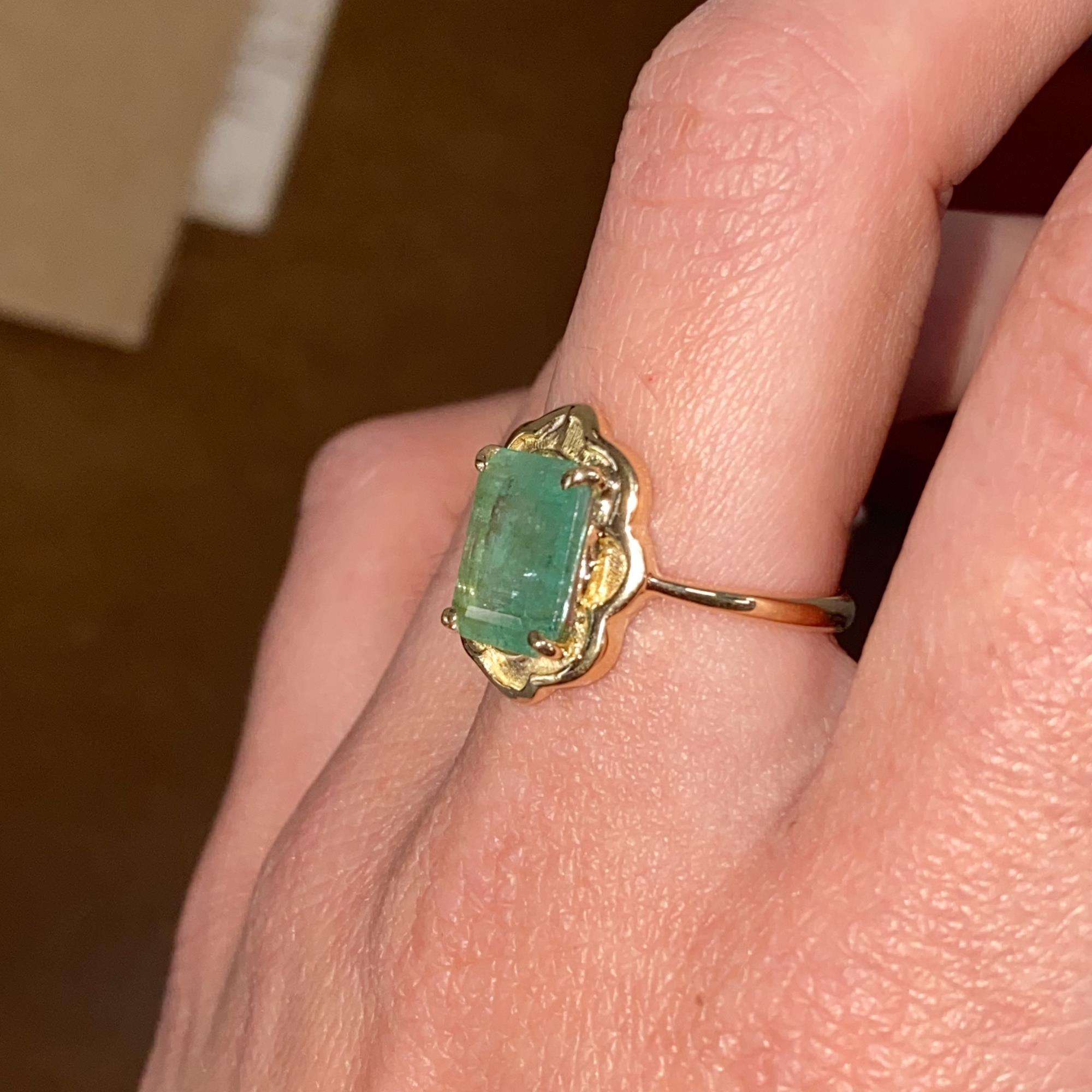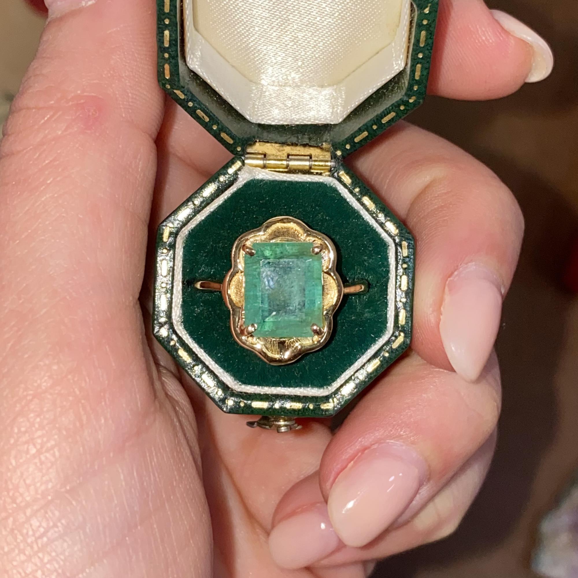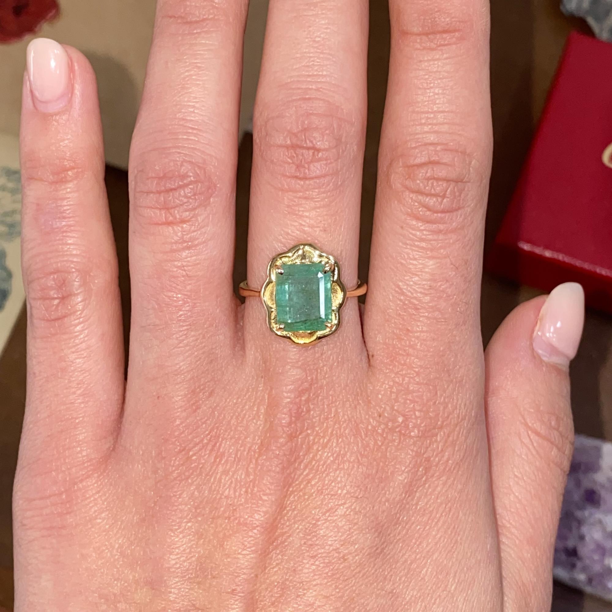 ANELLO VINTAGE FIORE IN ORO 18KT CON GRANDE SMERALDO NATURALE CT 2,20 CA.