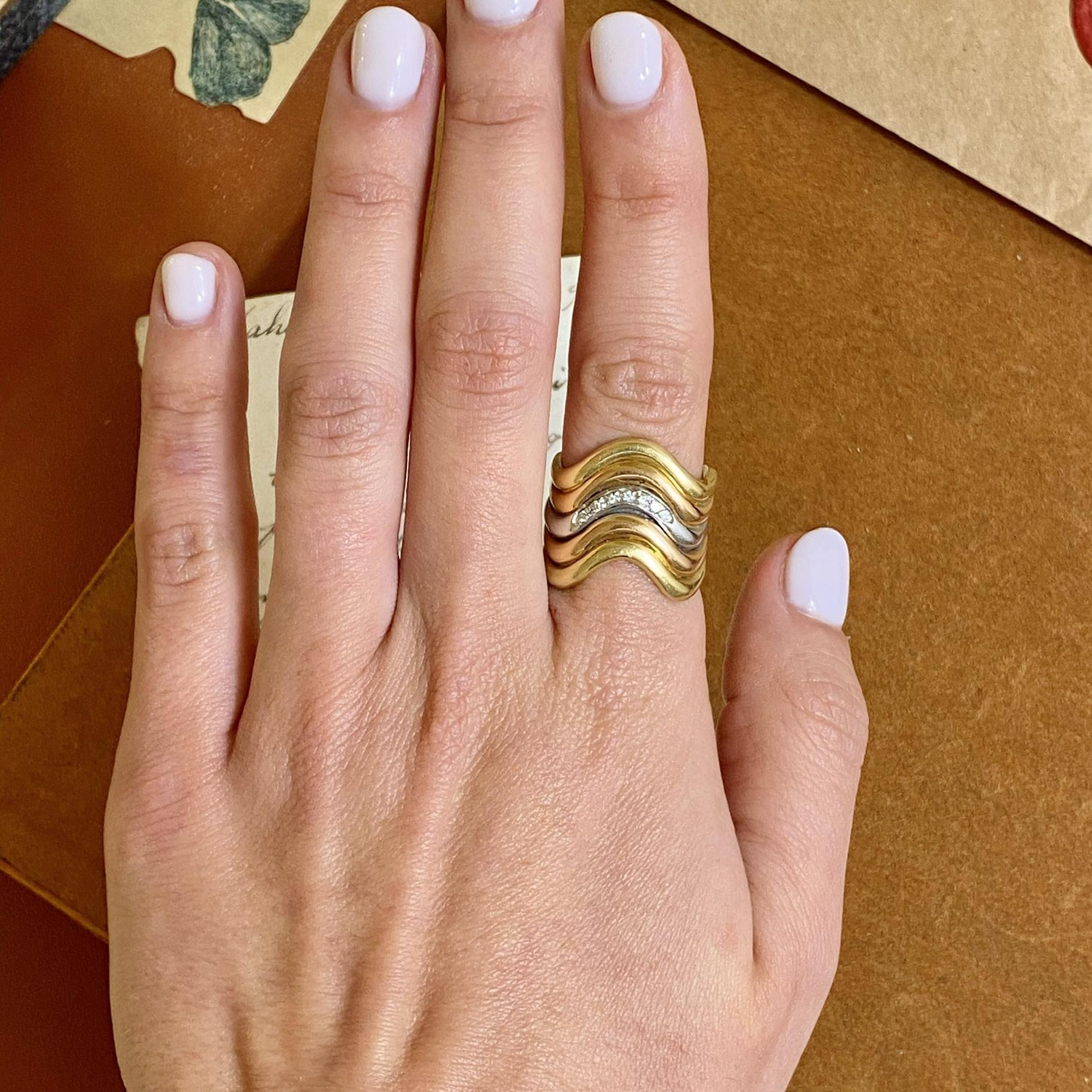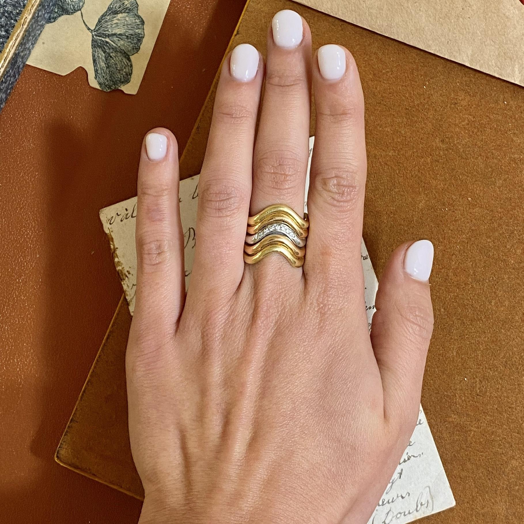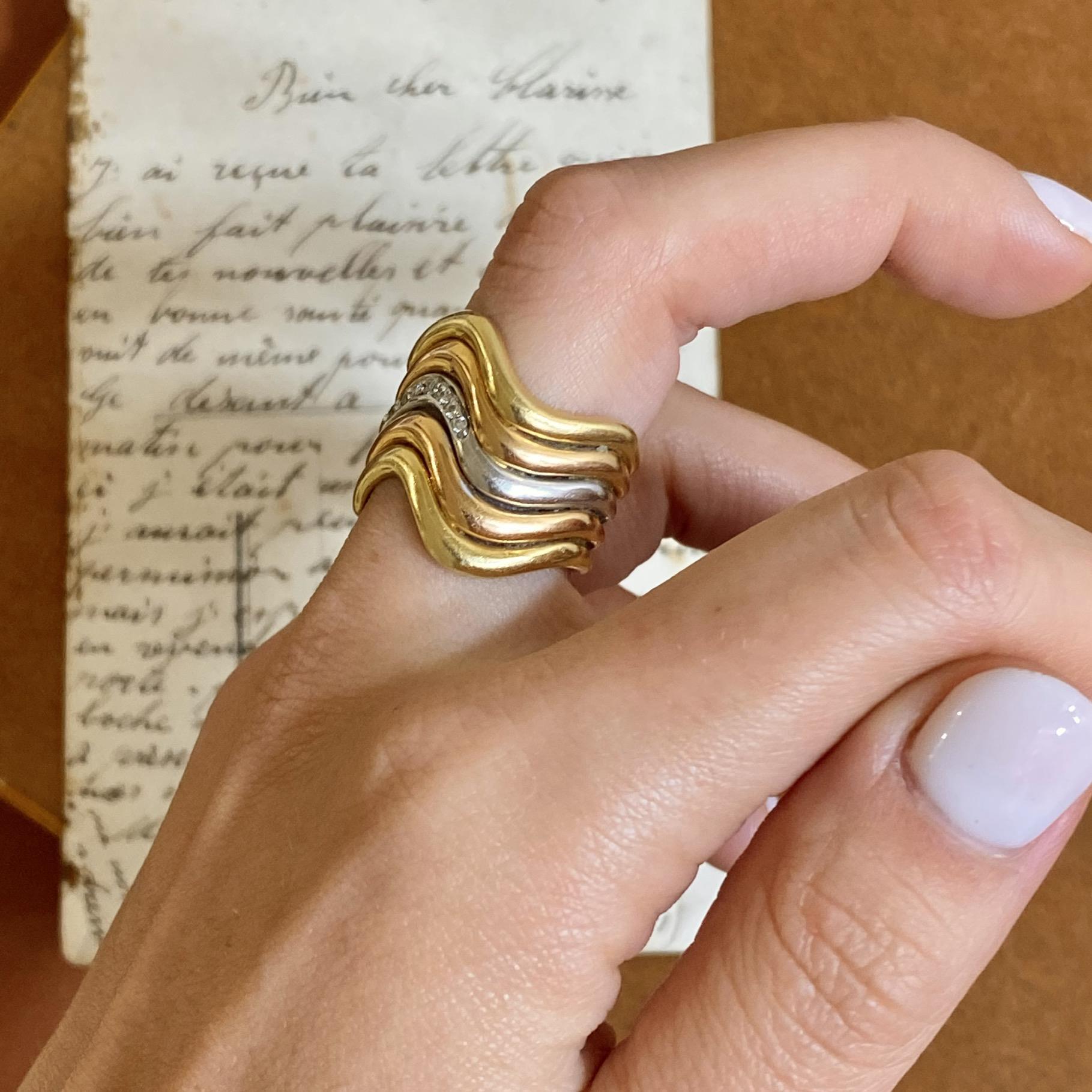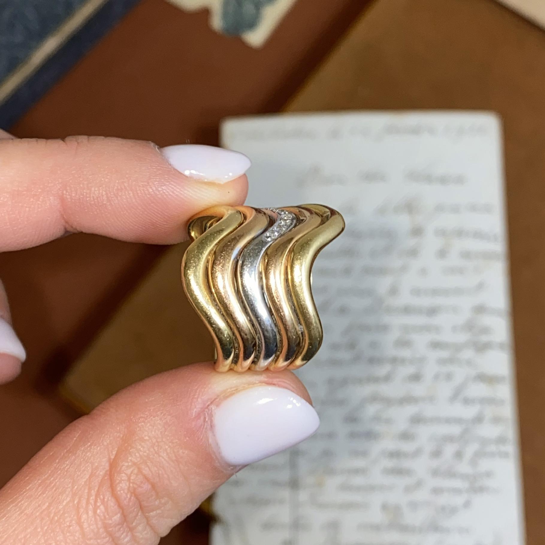 ANELLO VINTAGE GRANDE FASCIA ONDULATA IN ORO 18KT CON DIAMANTI CT 0,07 CA.