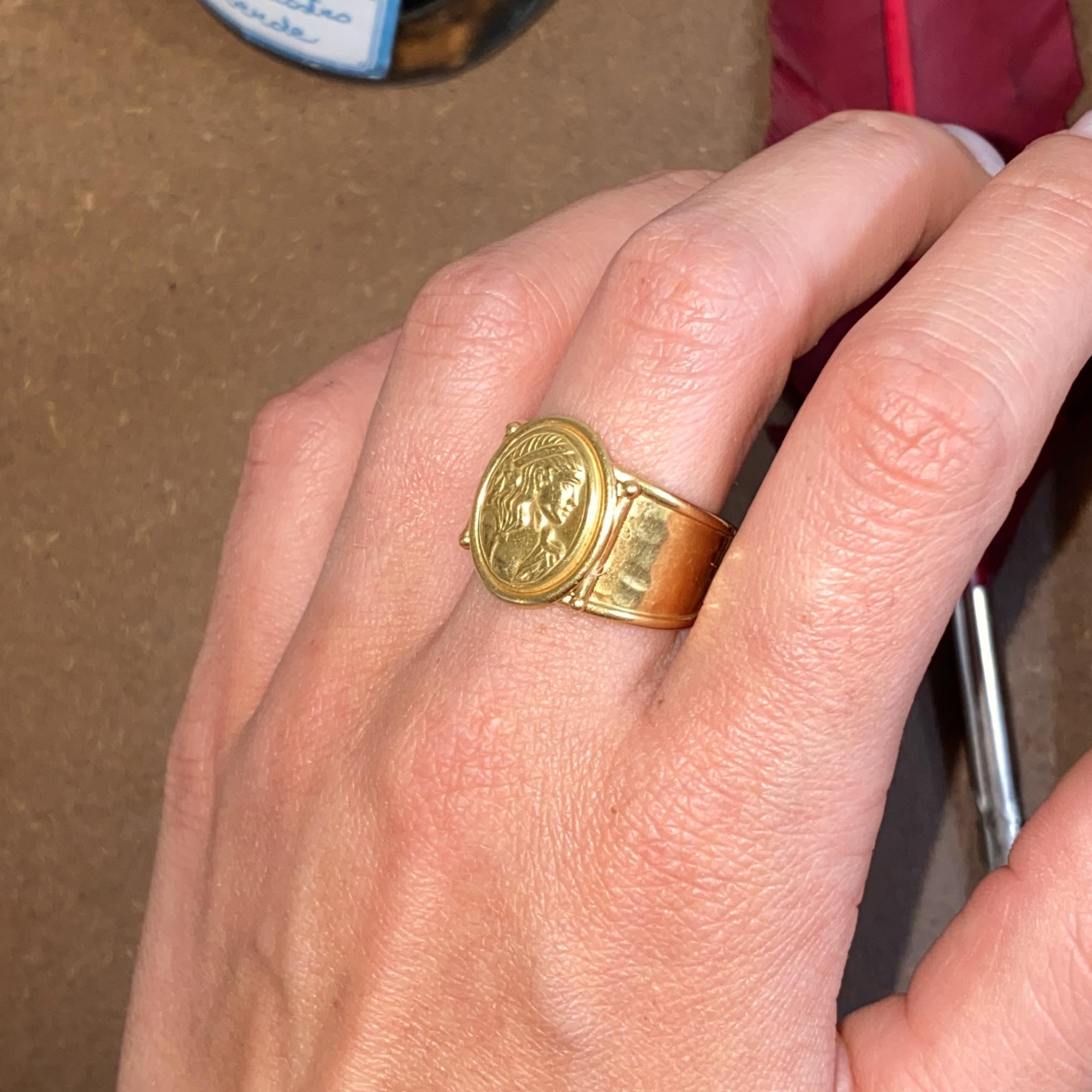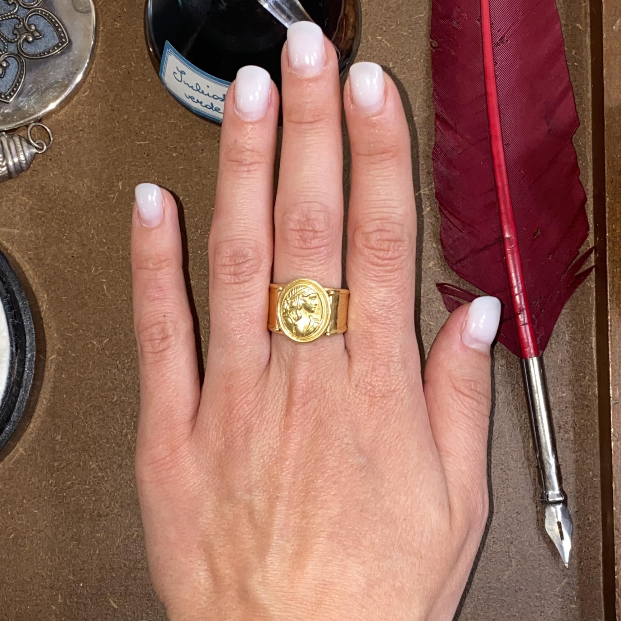 ANELLO VINTAGE IN ORO 18KT CAMMEO RAFFIGURANTE UNA DEA, MISURA REGOLABILE