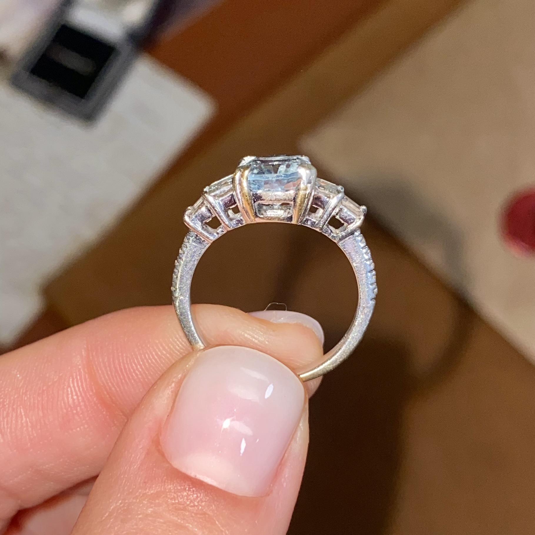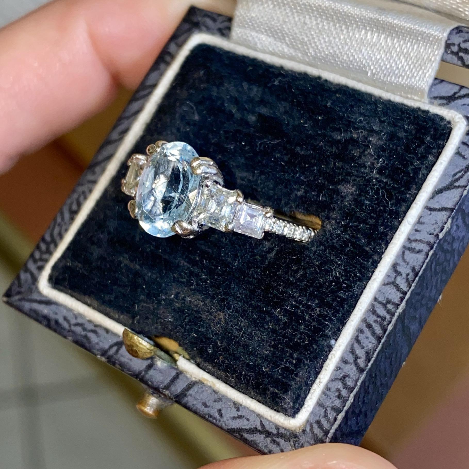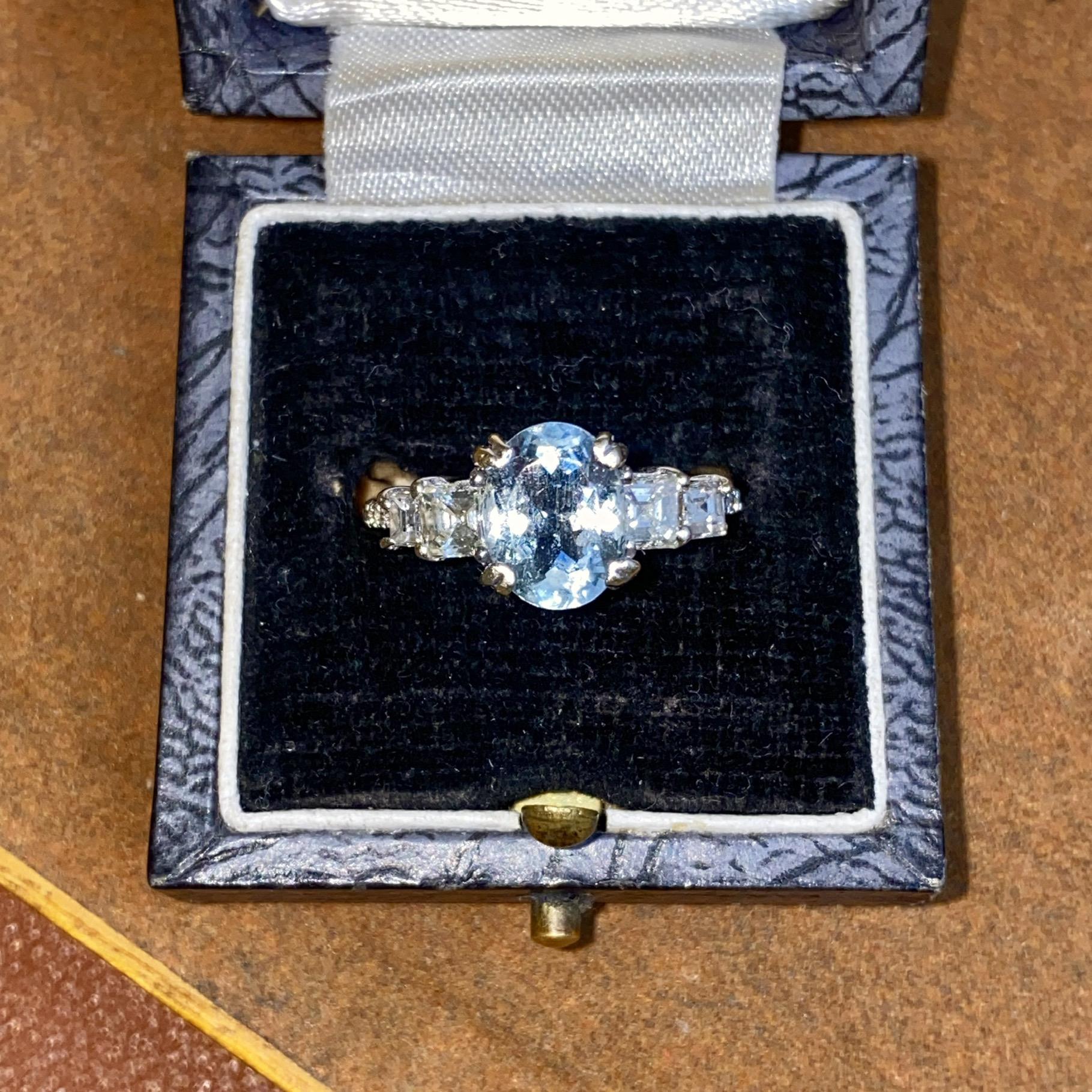 ANELLO VINTAGE IN ORO 18KT CON ACQUAMARINA CT 2,50 CA. E DIAMANTI CT 0,40 CA.