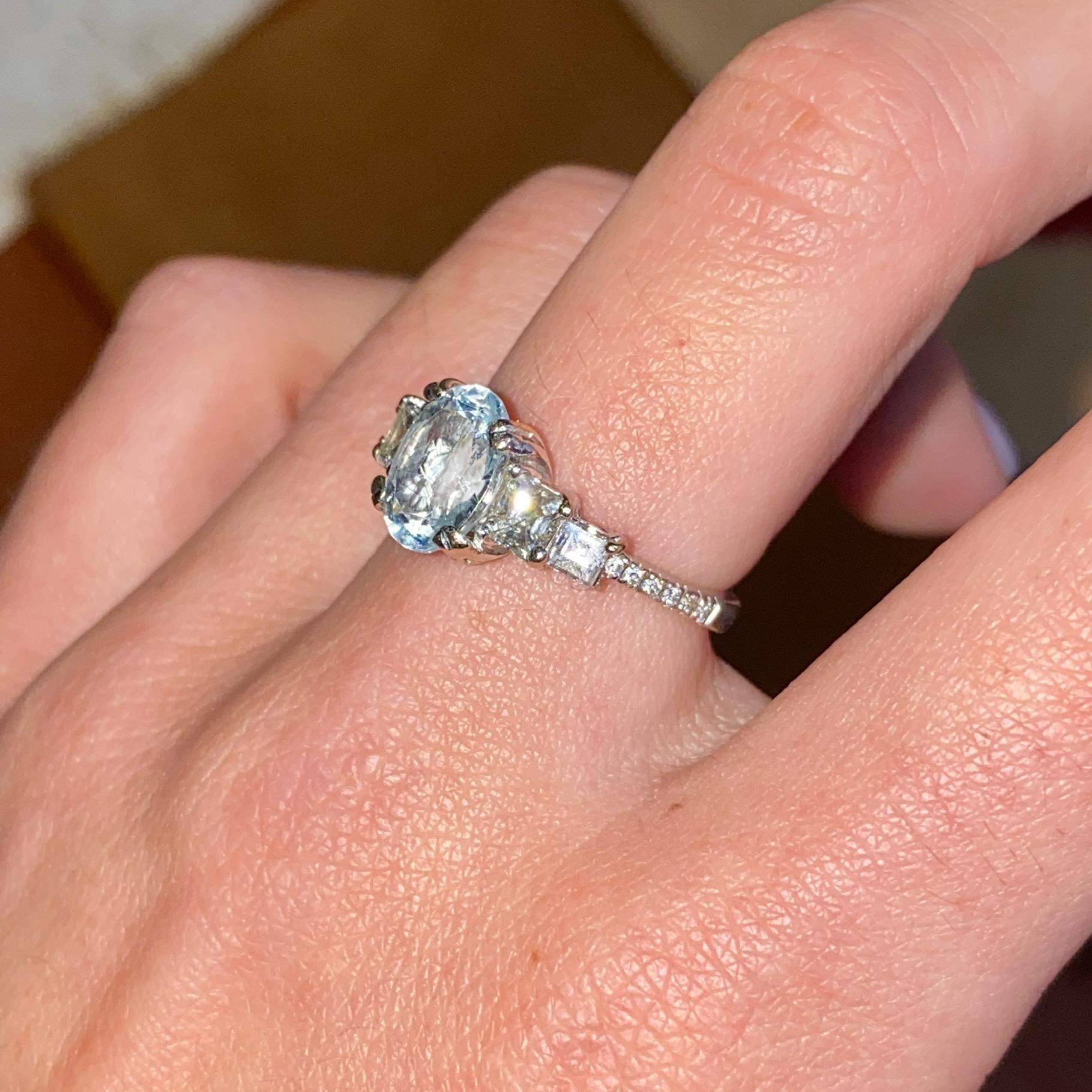 Oro 18kt, diamanti di taglio brillante e di taglio princess H/I ca. VS2 ca. e acquamarina ovale