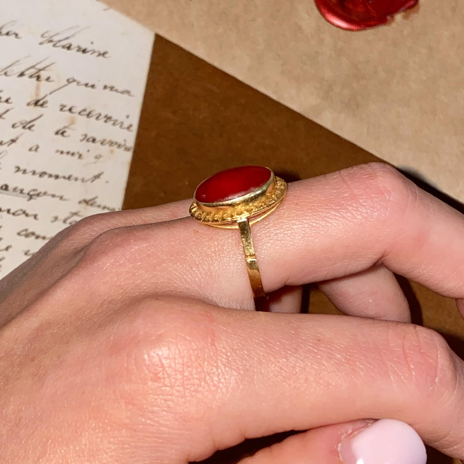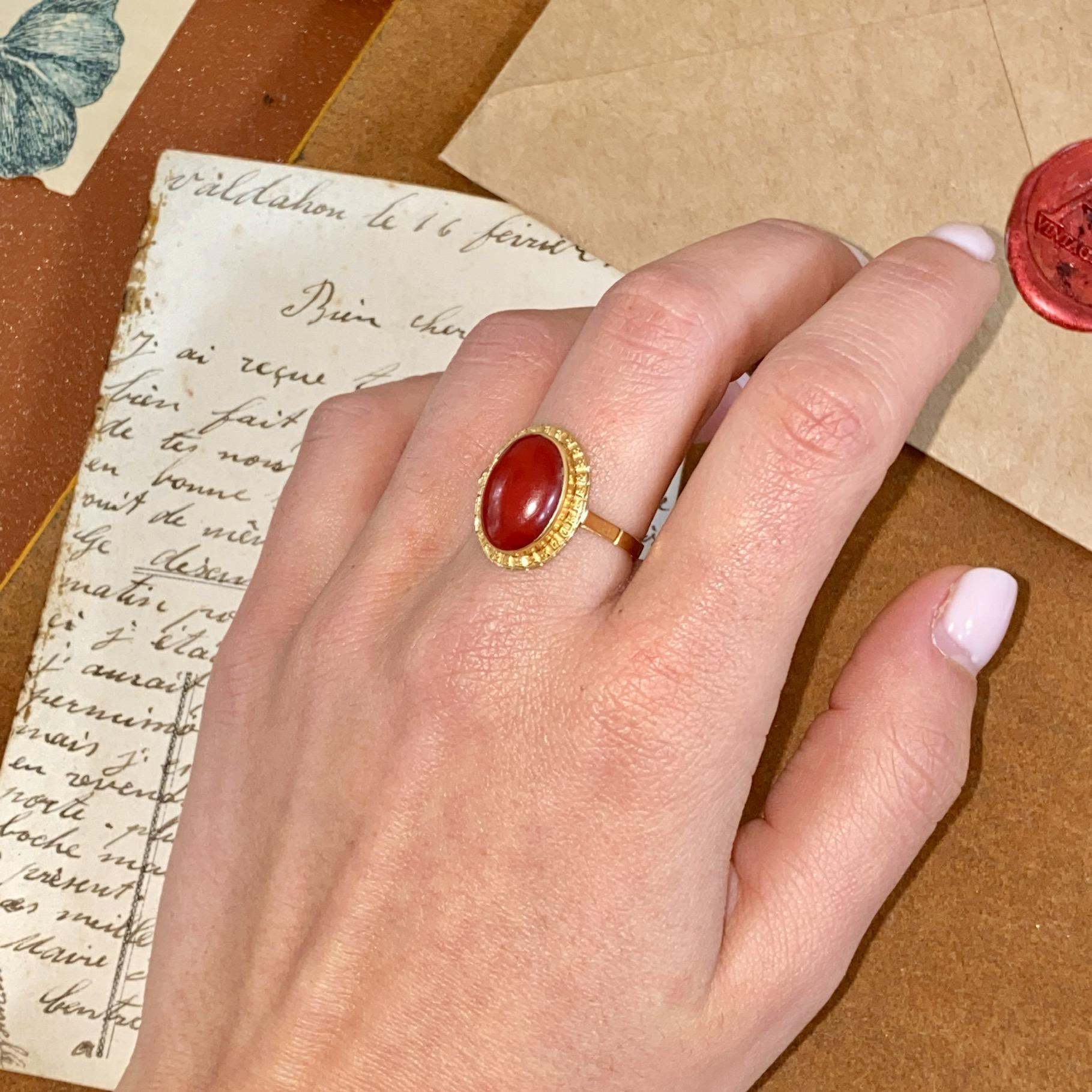 ANELLO VINTAGE IN ORO 18KT CON CORALLO ROSSO NATURALE