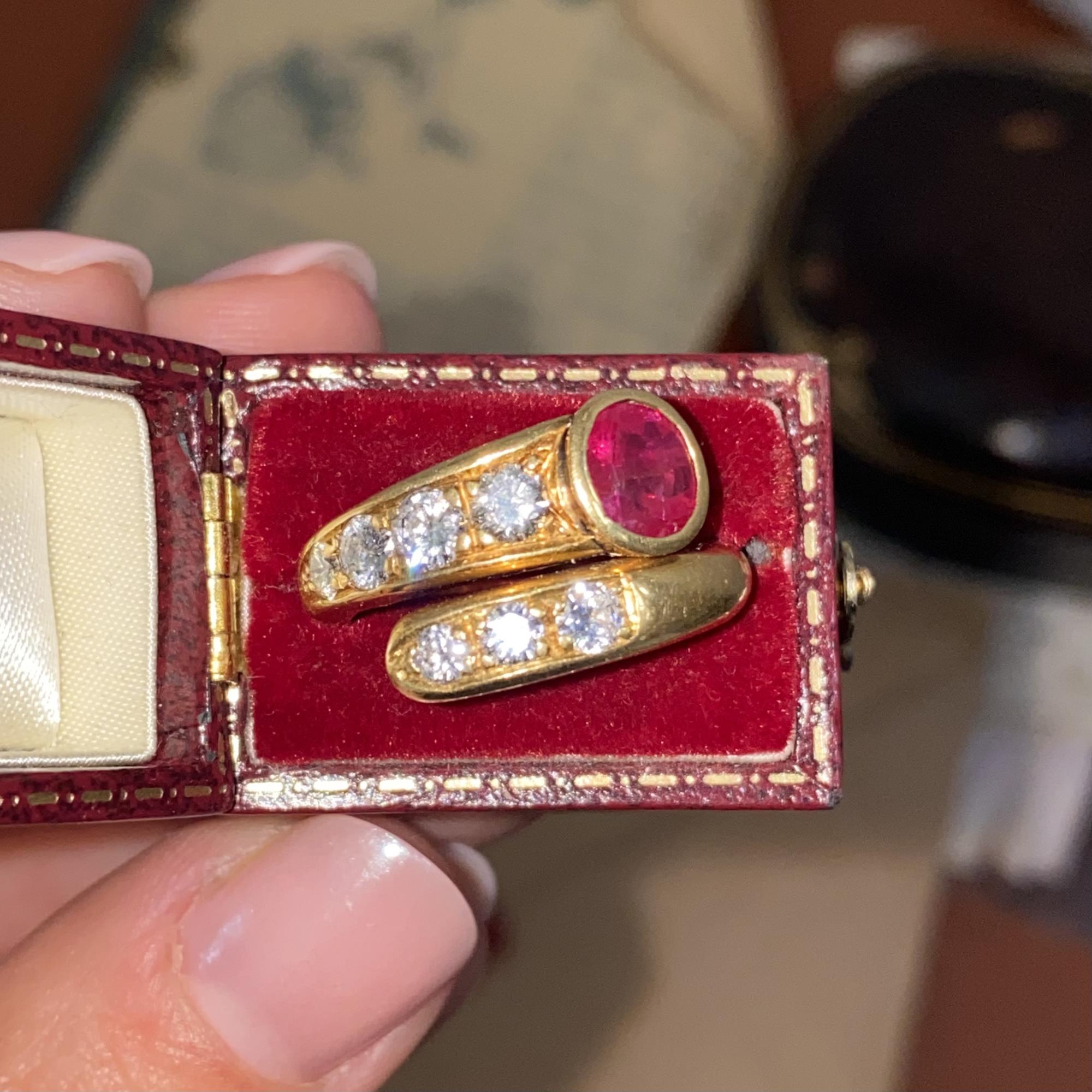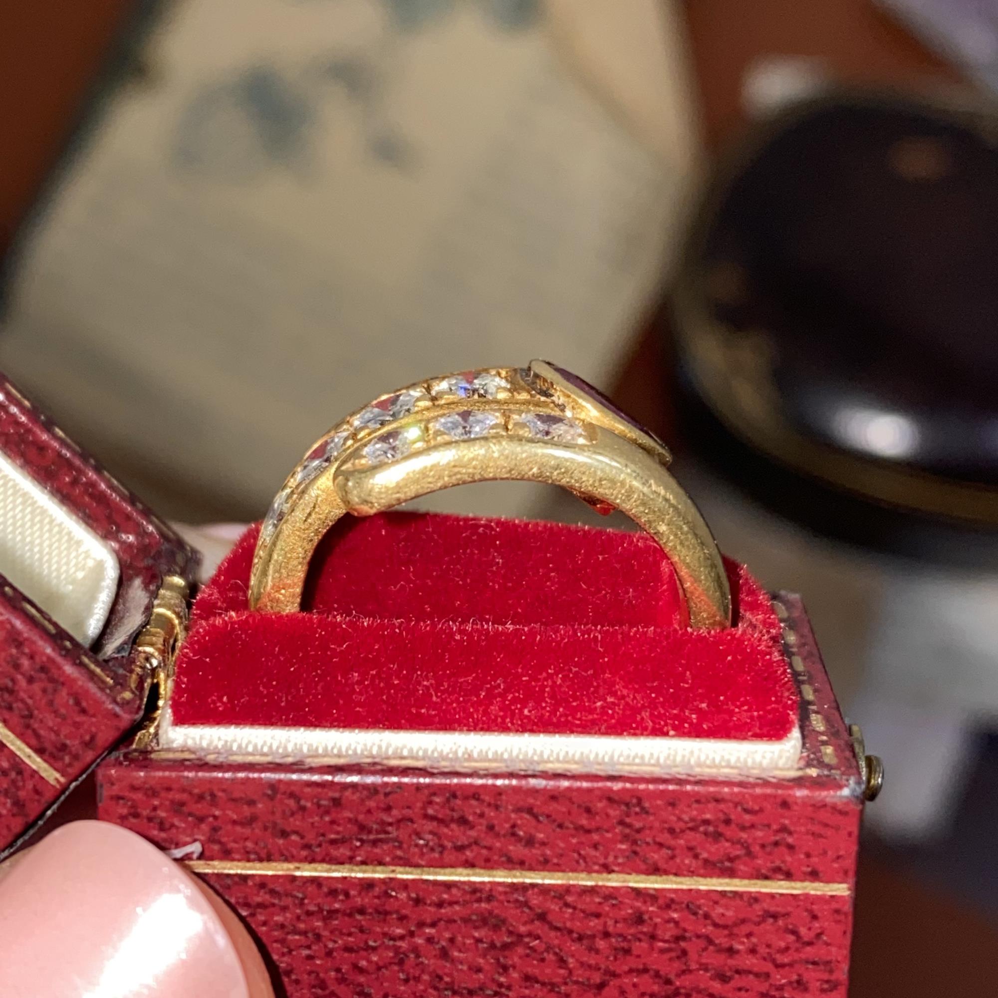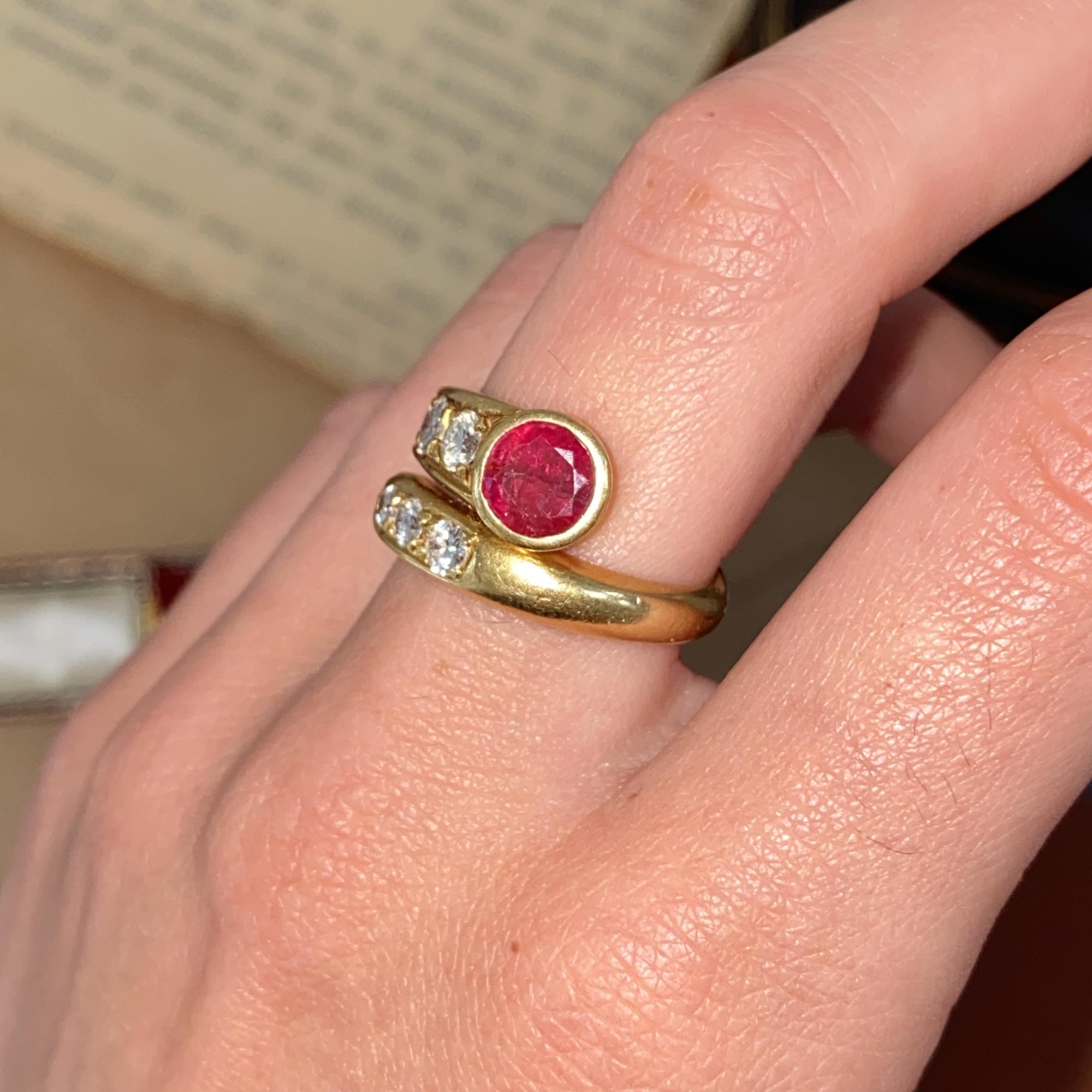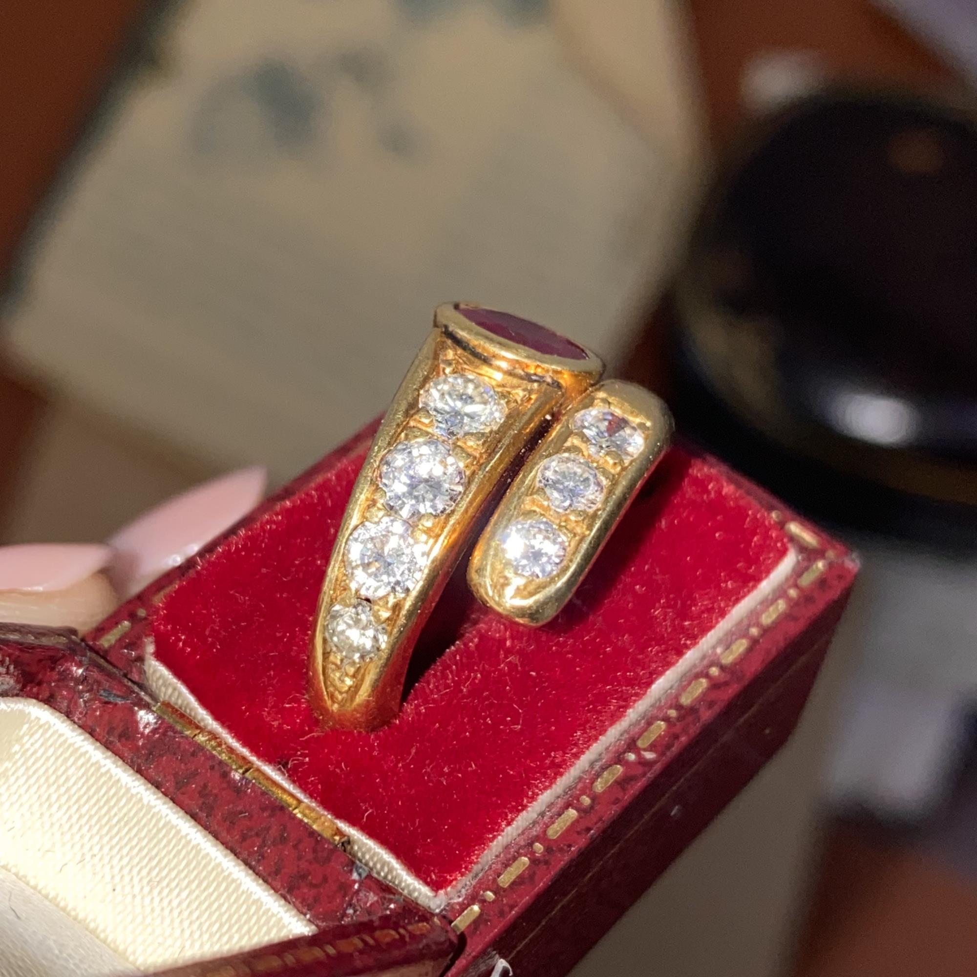 ANELLO VINTAGE IN ORO 18KT CON RUBINO CT 0,95 CA. E DIAMANTI CT 0,70 CA.