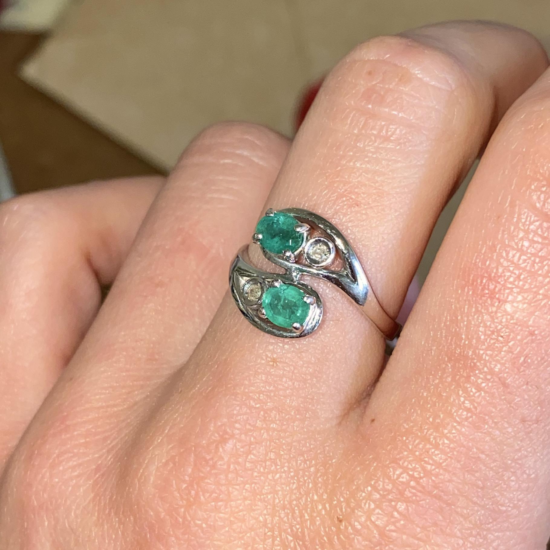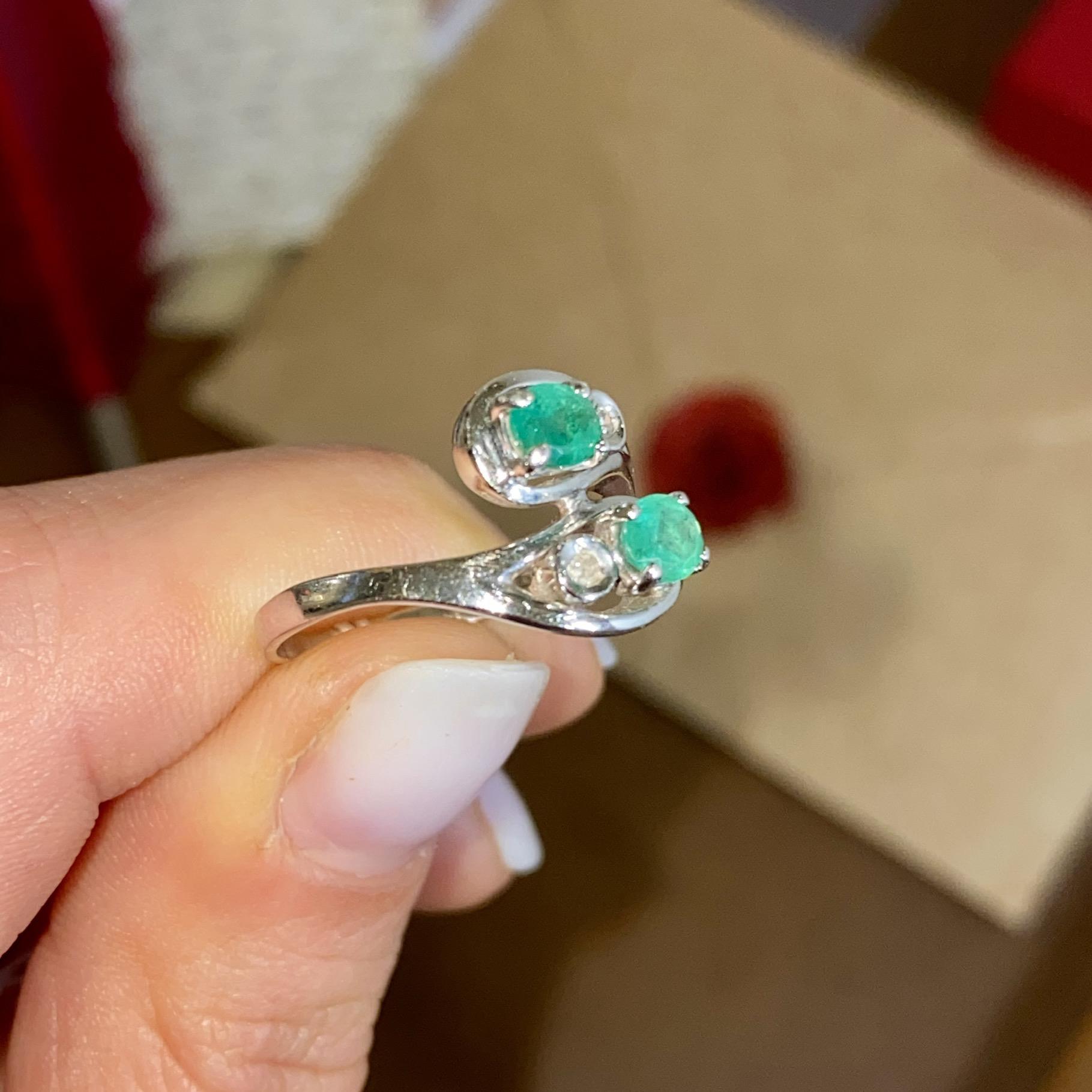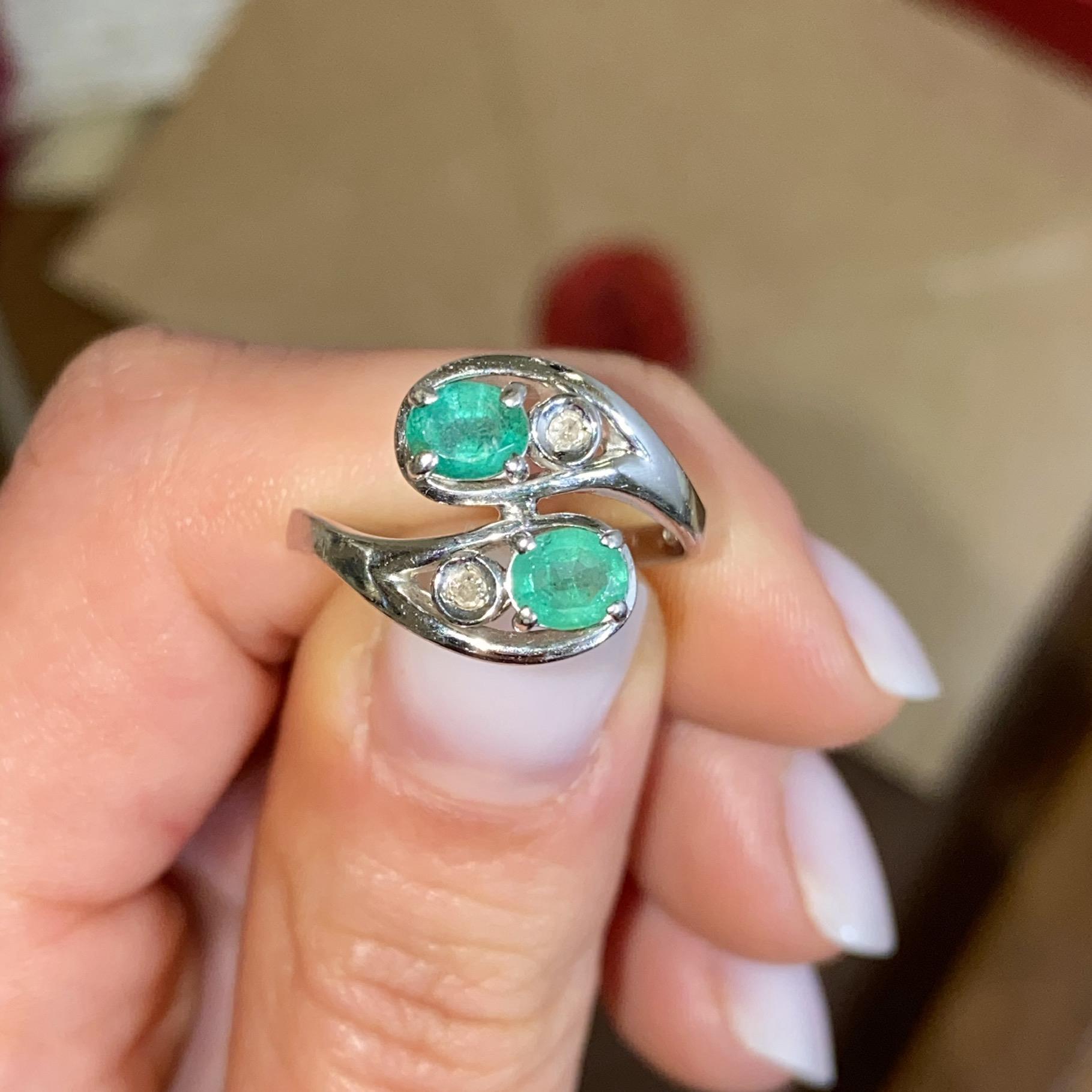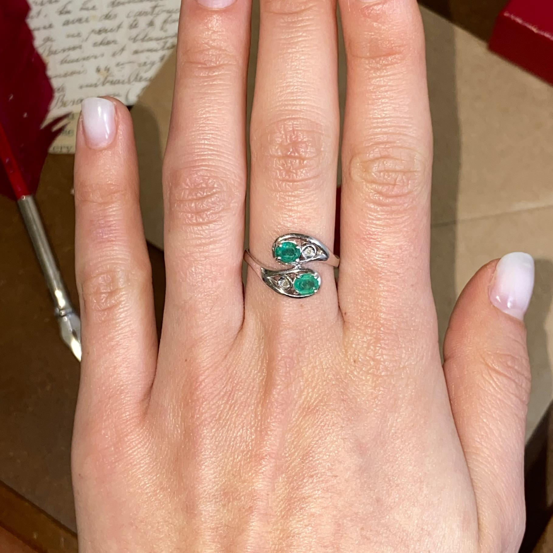 ANELLO VINTAGE IN ORO 18KT CON SMERALDI CT 1,00 CA. E DIAMANTI CT 0,02 CA.