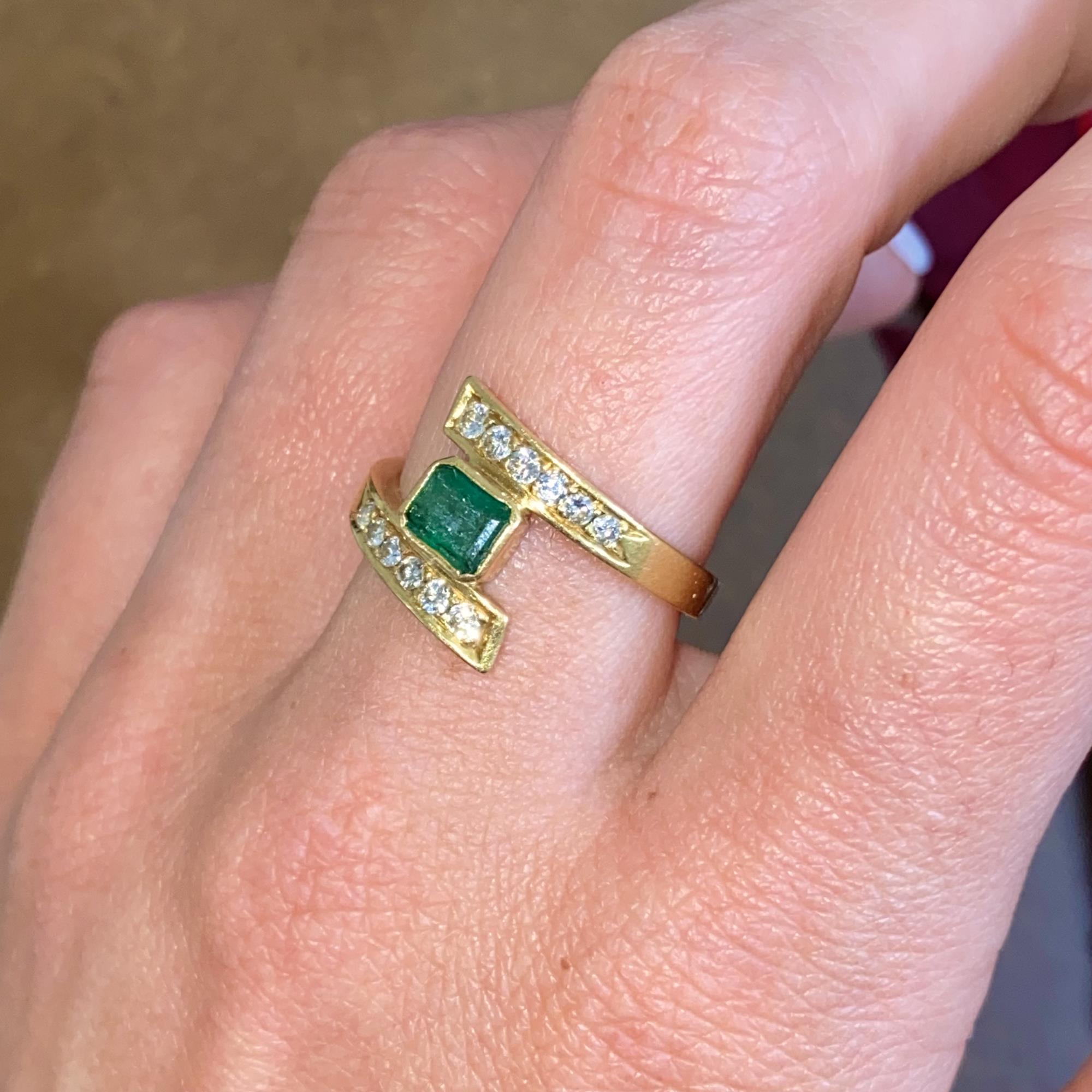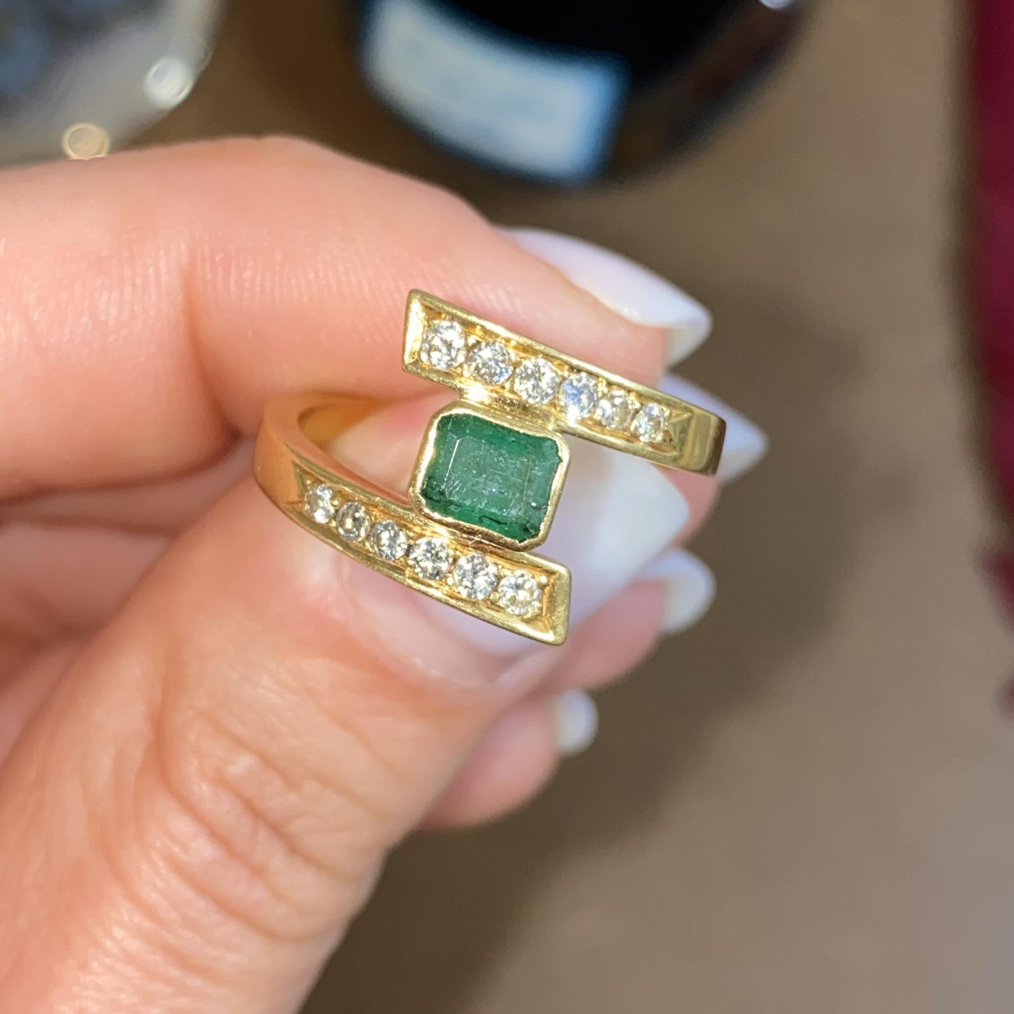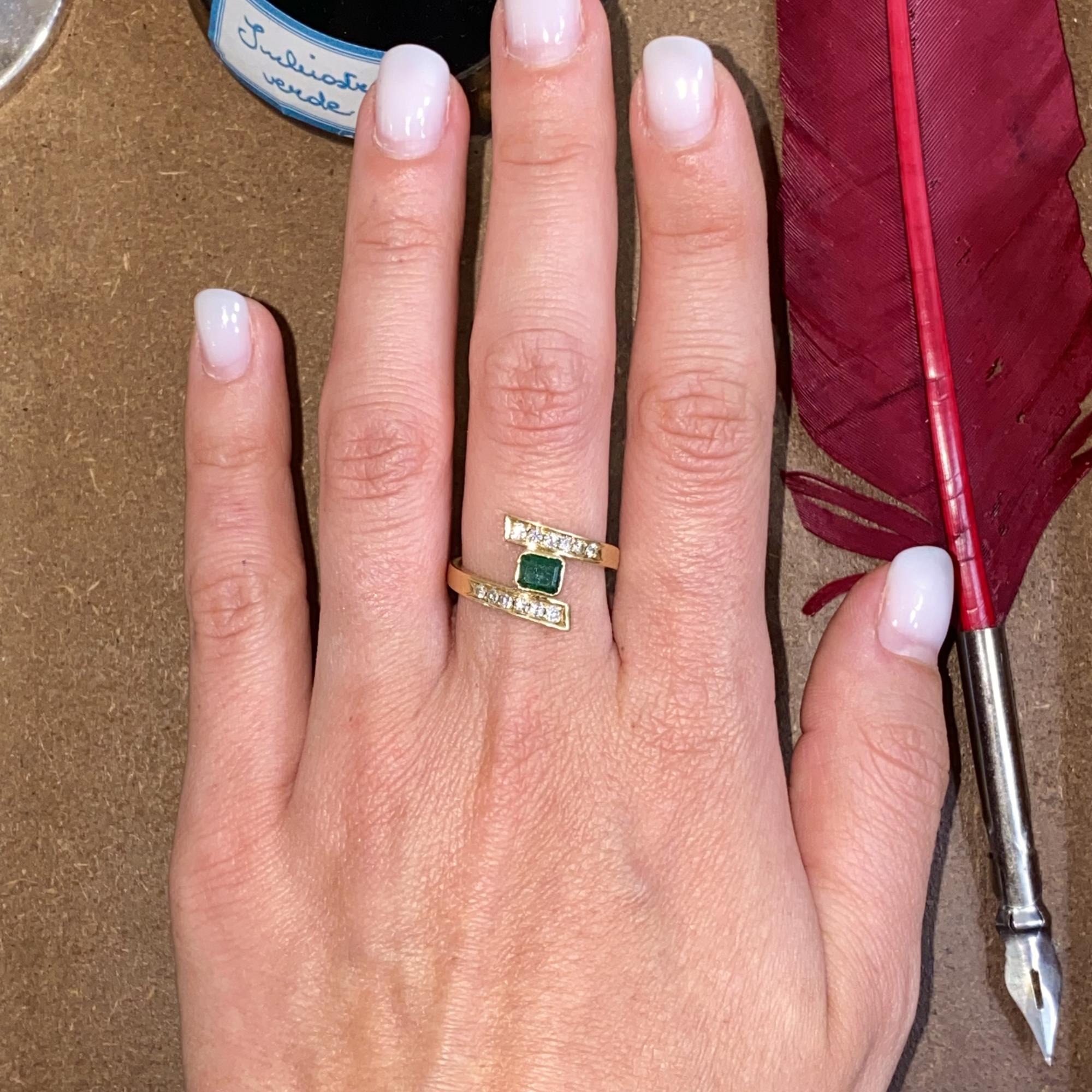 ANELLO VINTAGE IN ORO 18KT CON SMERALDO CT 0,40 CA. E DIAMANTI CT 0,11 CA.