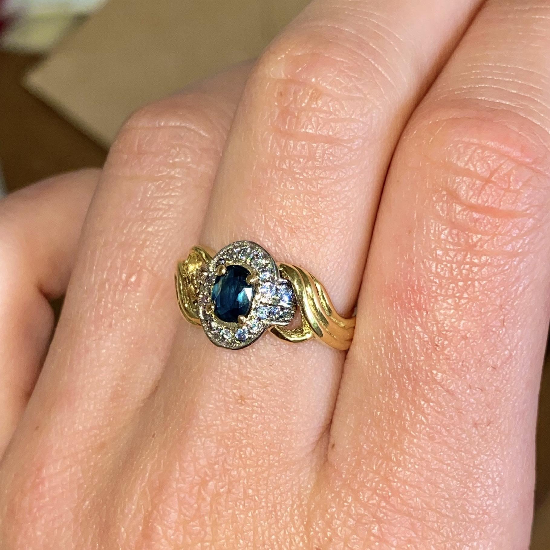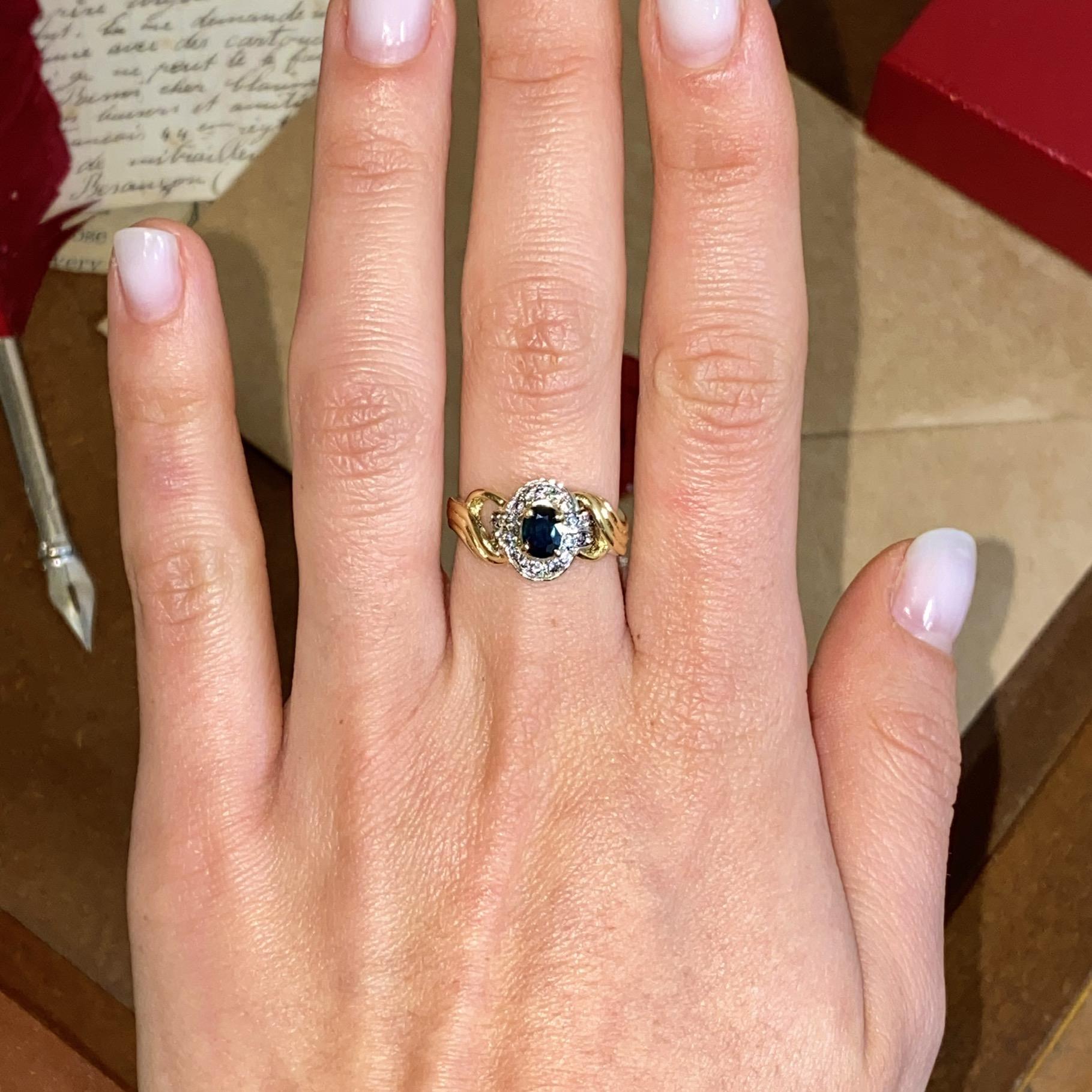 ANELLO VINTAGE IN ORO 18KT CON ZAFFIRO CT 0,30 CA. E ZIRCONI