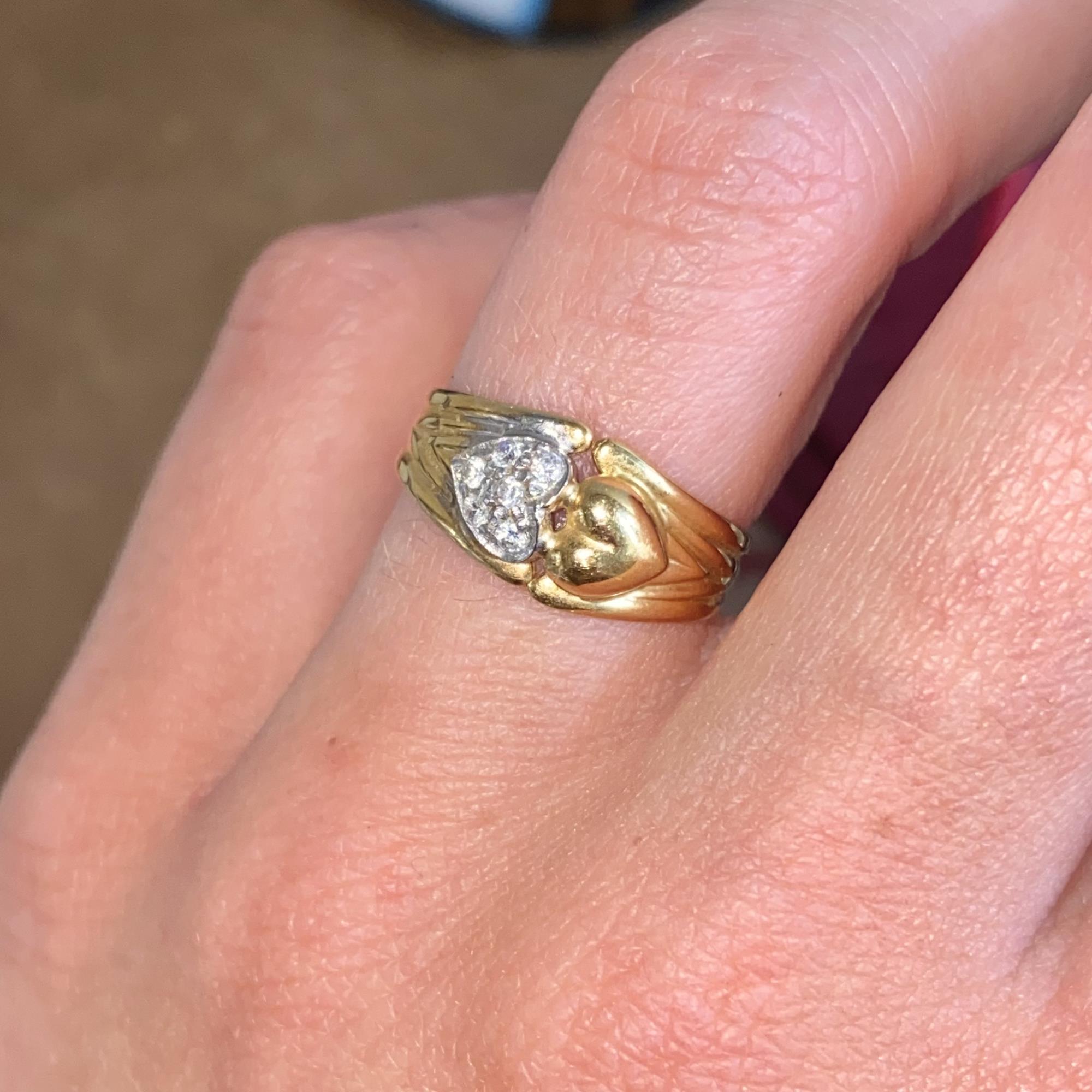ANELLO VINTAGE IN ORO 18KT DOPPIO CUORE CON ZIRCONI
