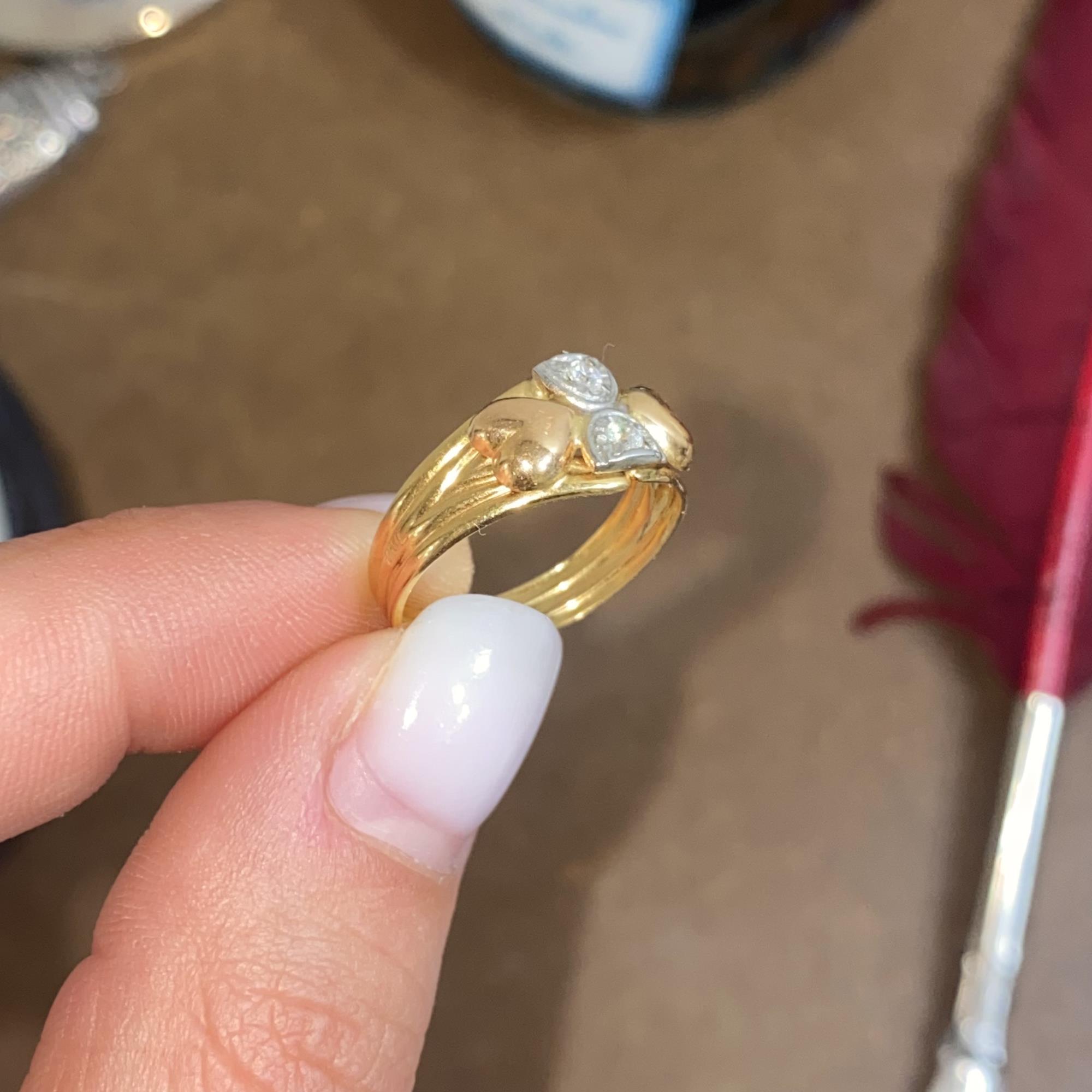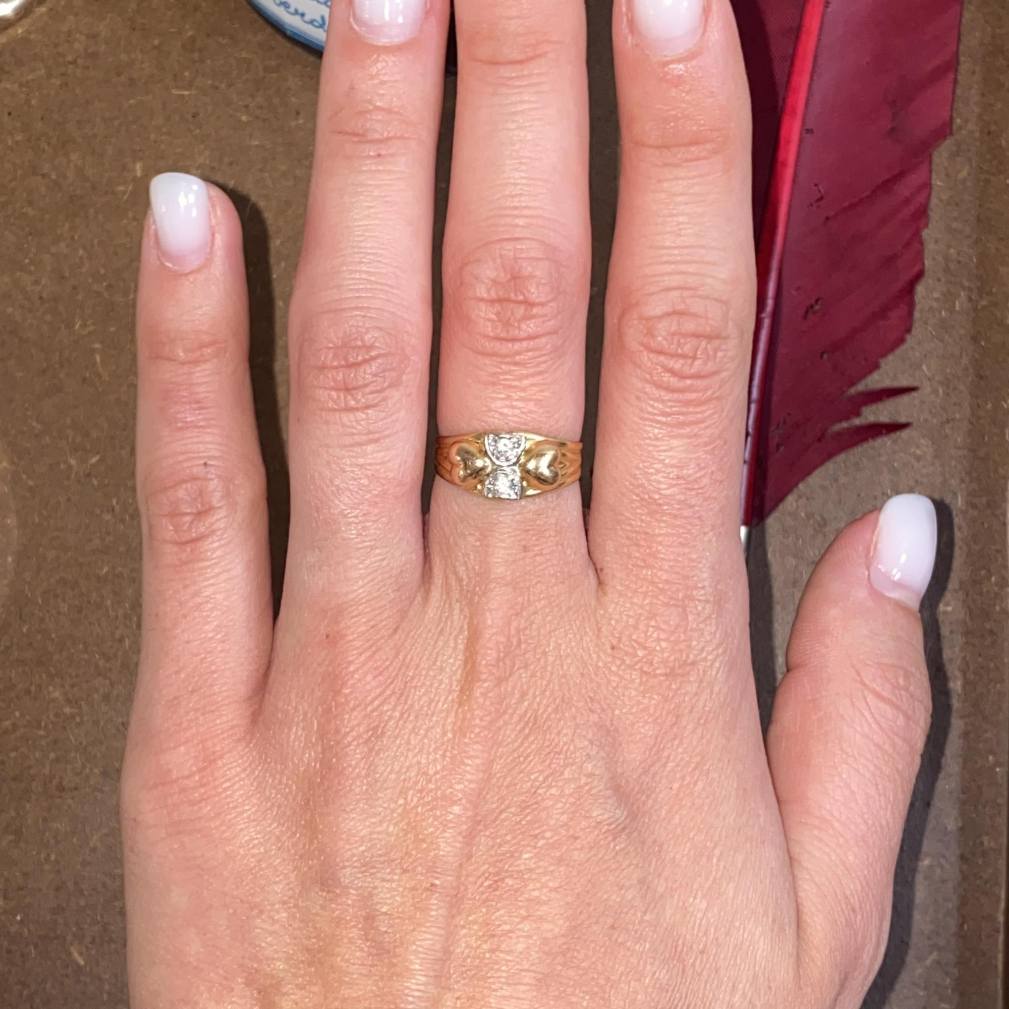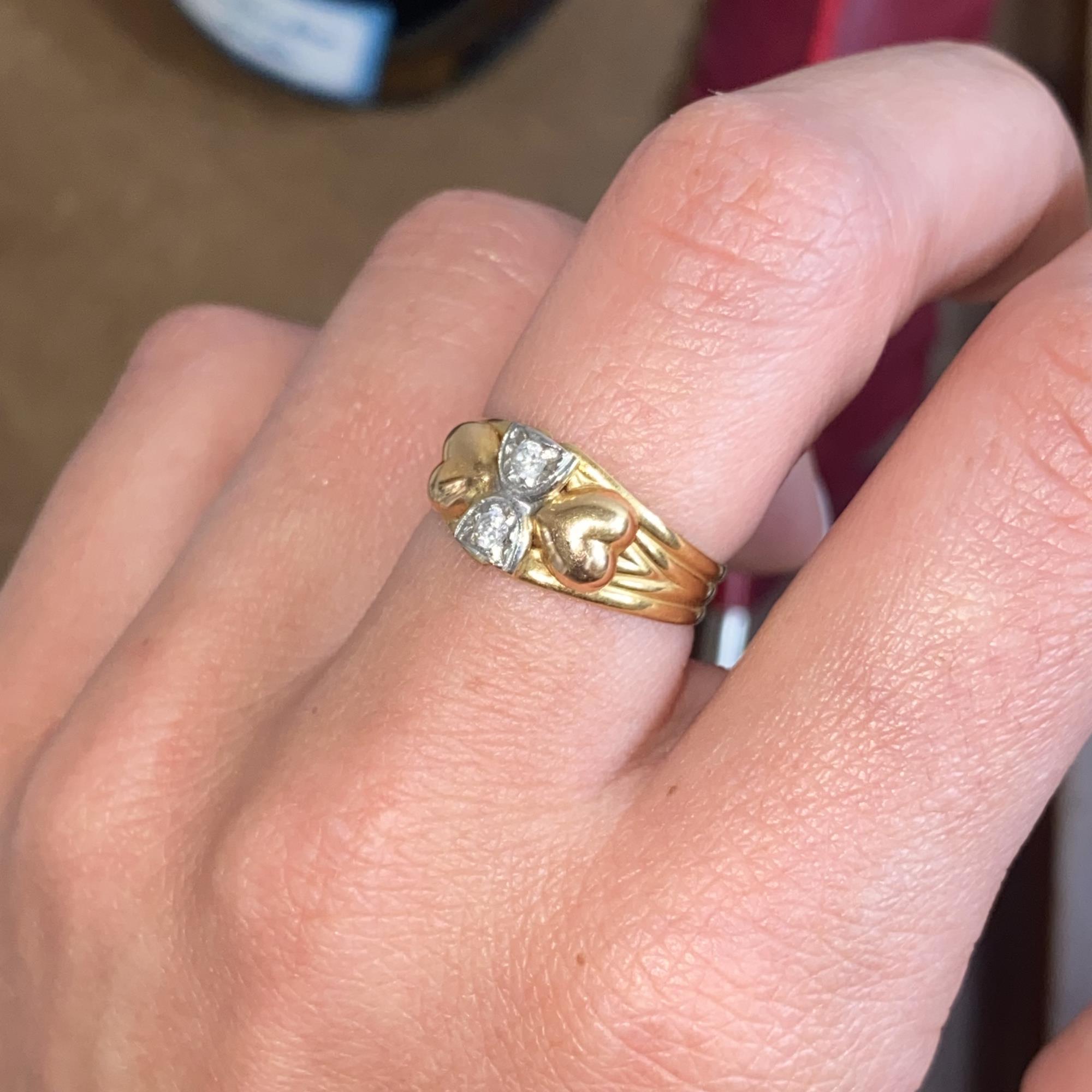 ANELLO VINTAGE IN ORO 18KT DUE CUORI CON ZIRCONI AL CENTRO