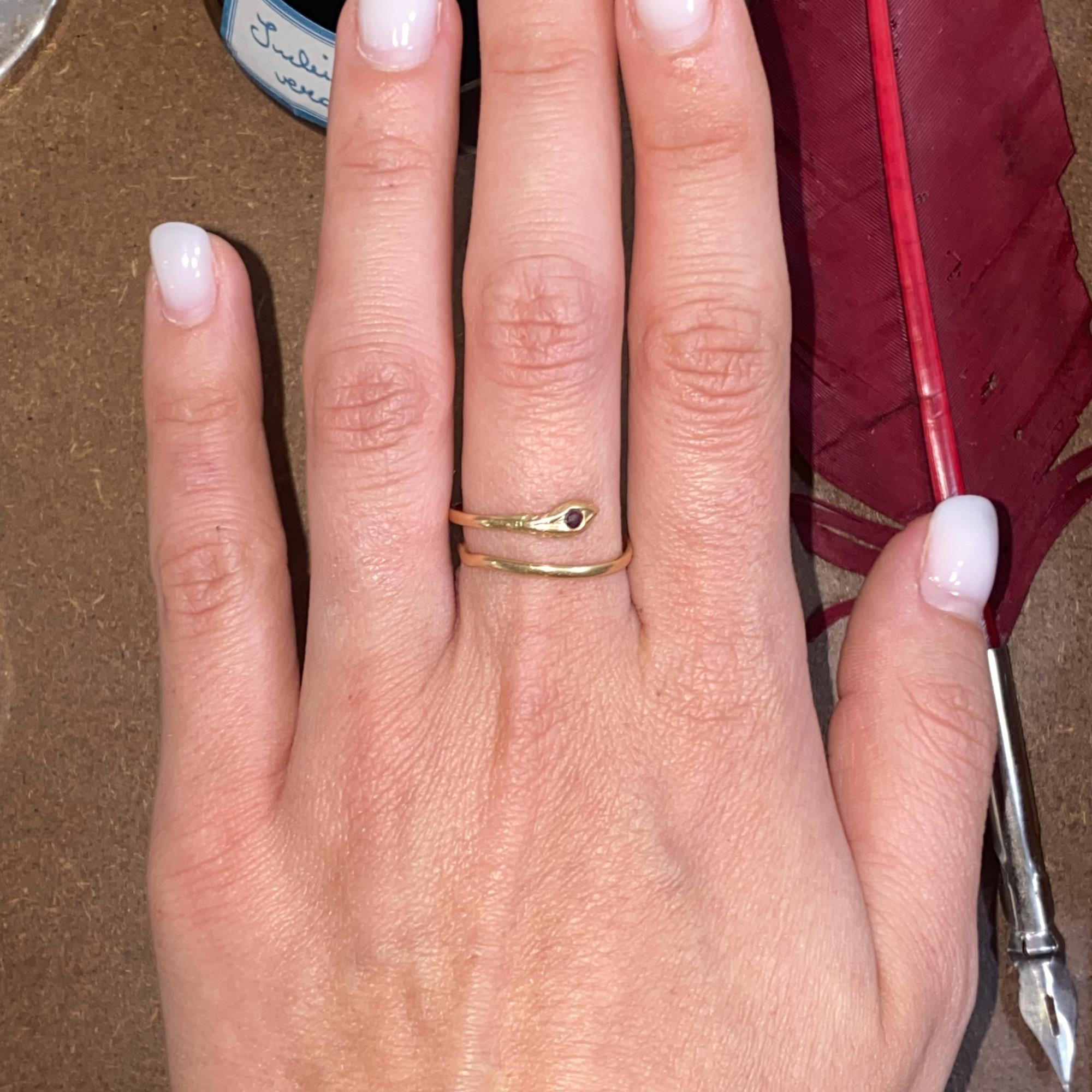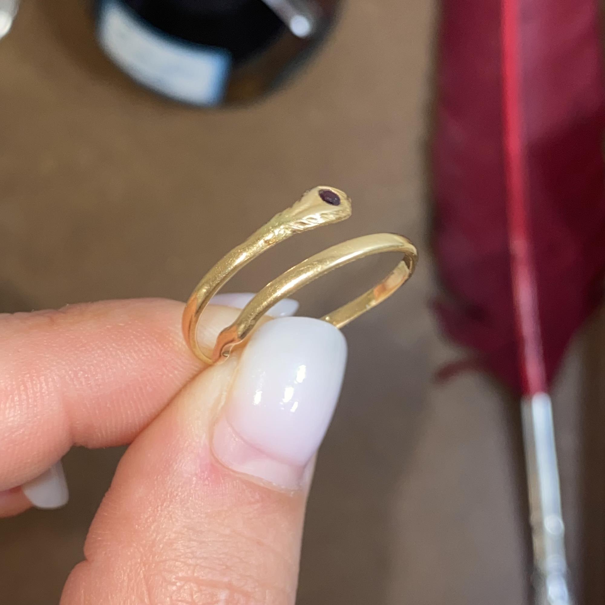 ANELLO VINTAGE IN ORO 18KT SERPENTINO CON RUBINO SINTETICO