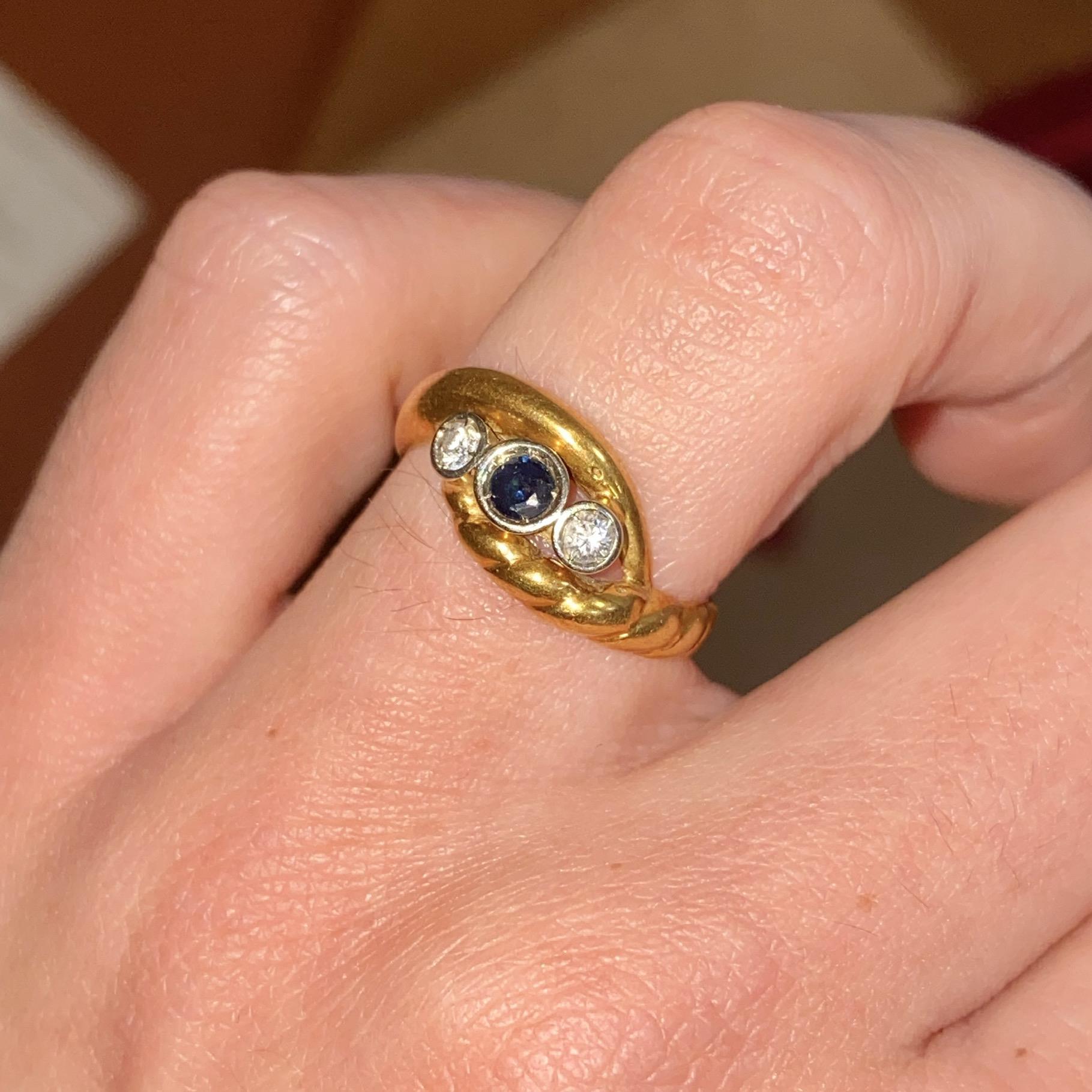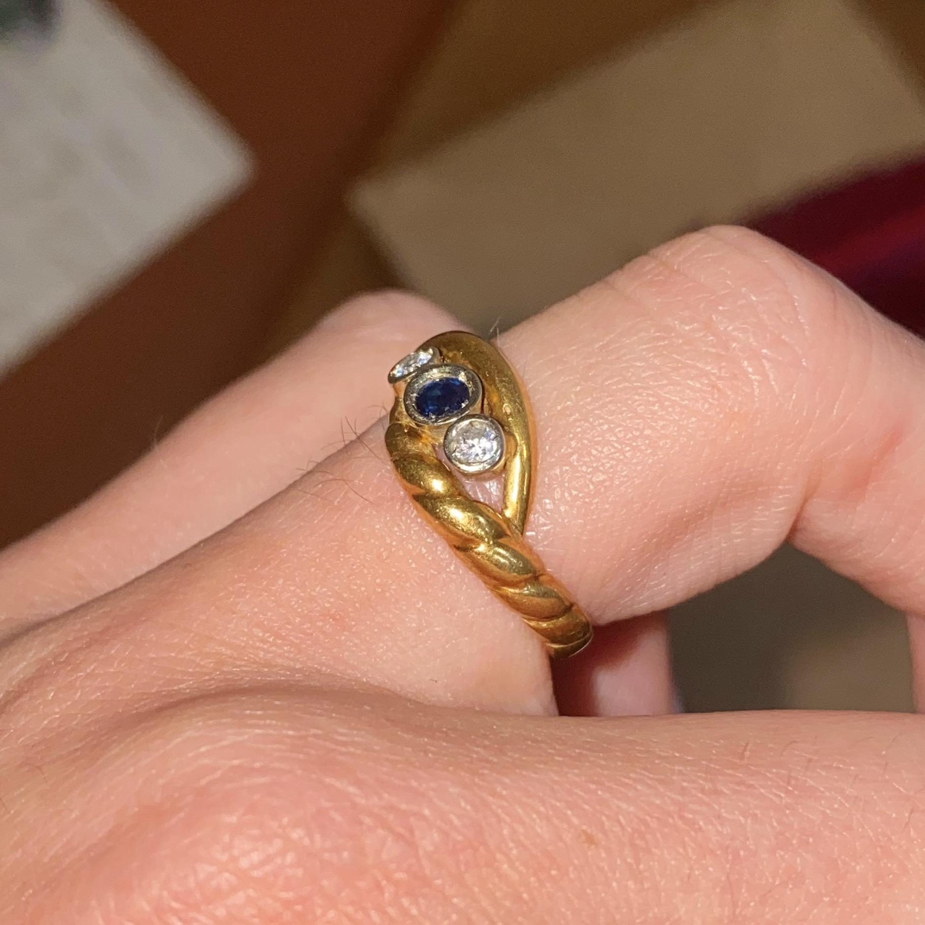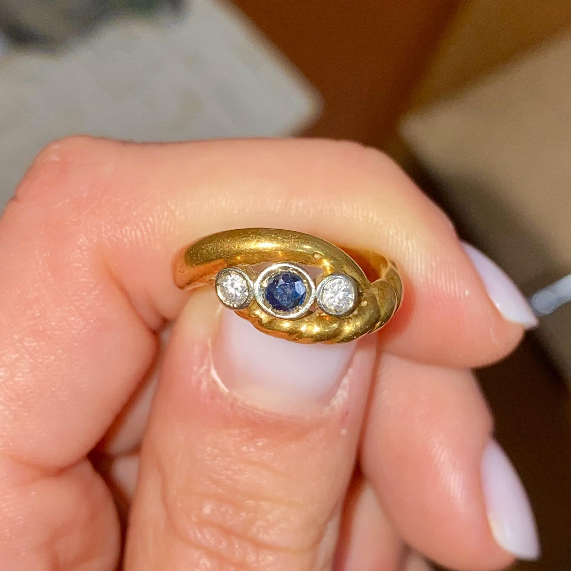 ANELLO VINTAGE IN ORO 18KT ZAFFIRO CT 0,18 CA. E DIAMANTI CT 0,06 CA.