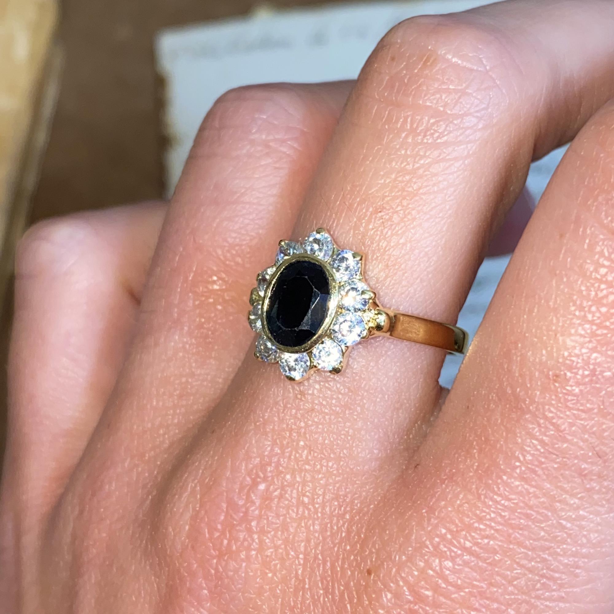 ANELLO VINTAGE MARGHERITA IN ORO 18KT CON ZAFFIRO CT 1,80 CA. E ZIRCONI