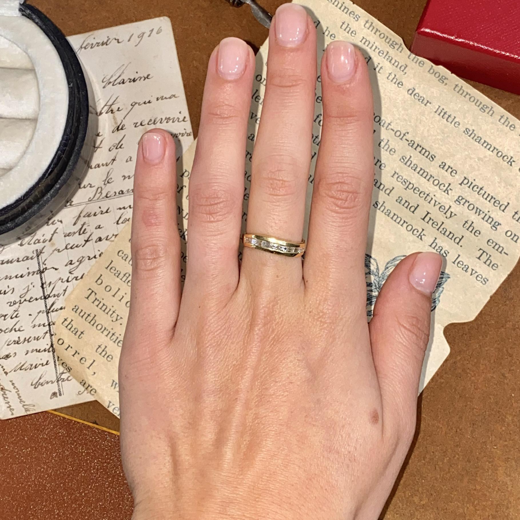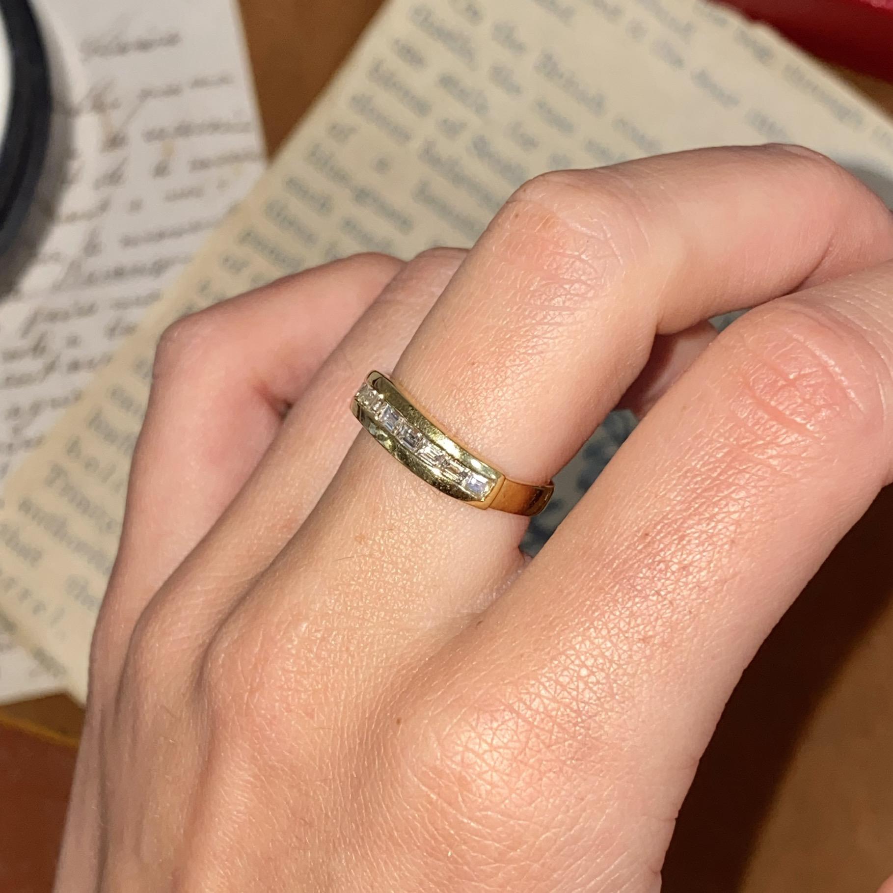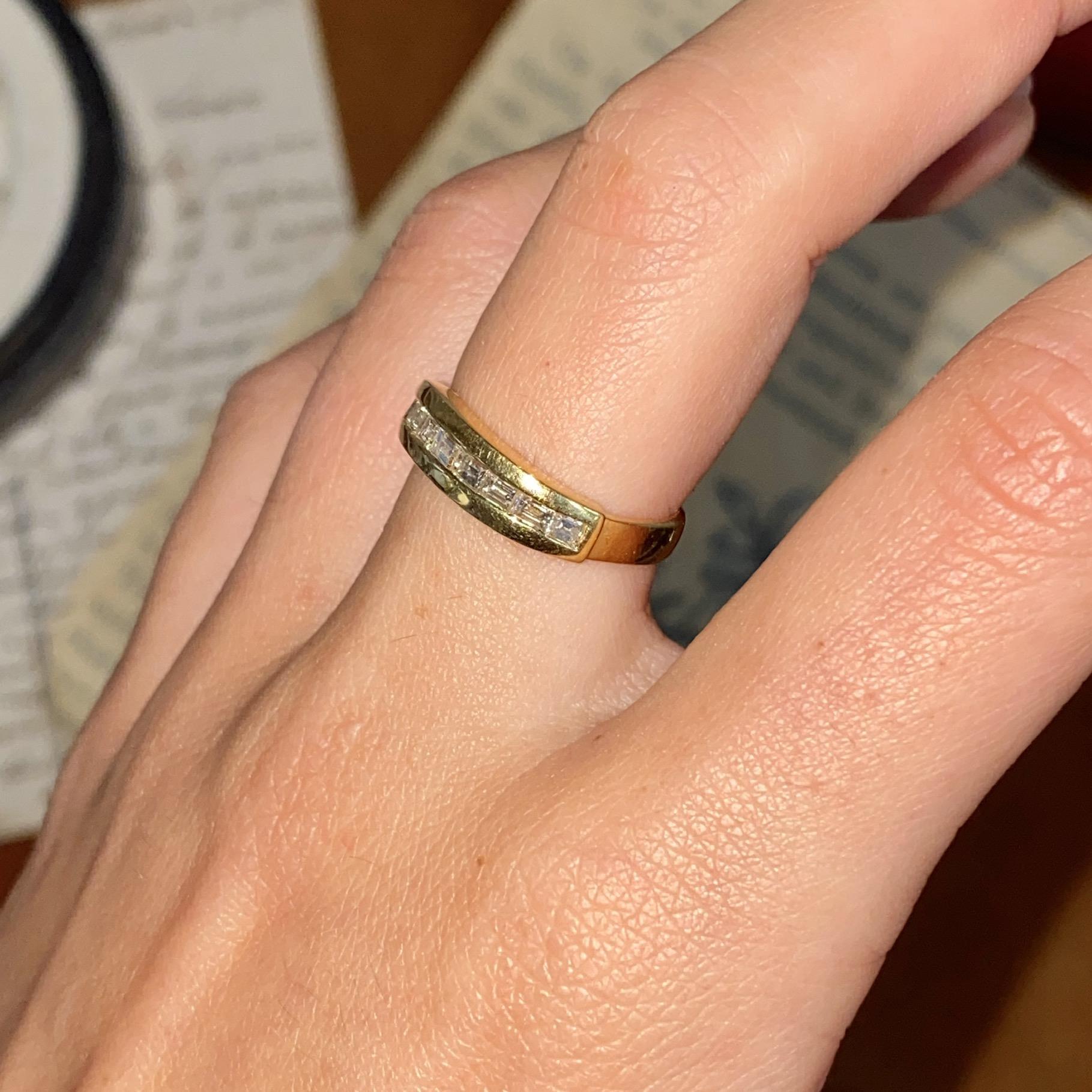 ANELLO VINTAGE RIVIÈRE ONDULATA IN ORO 18KT CON DIAMANTI BAGUETTE CT 0,30 CA.