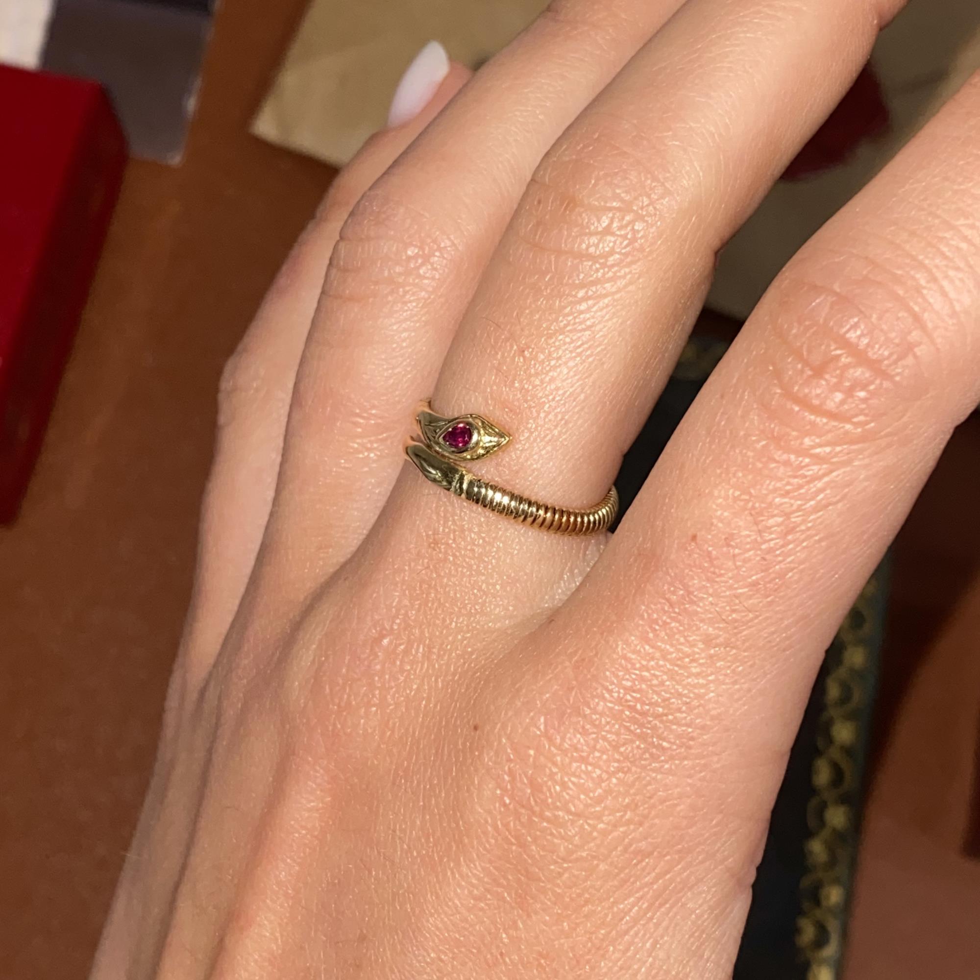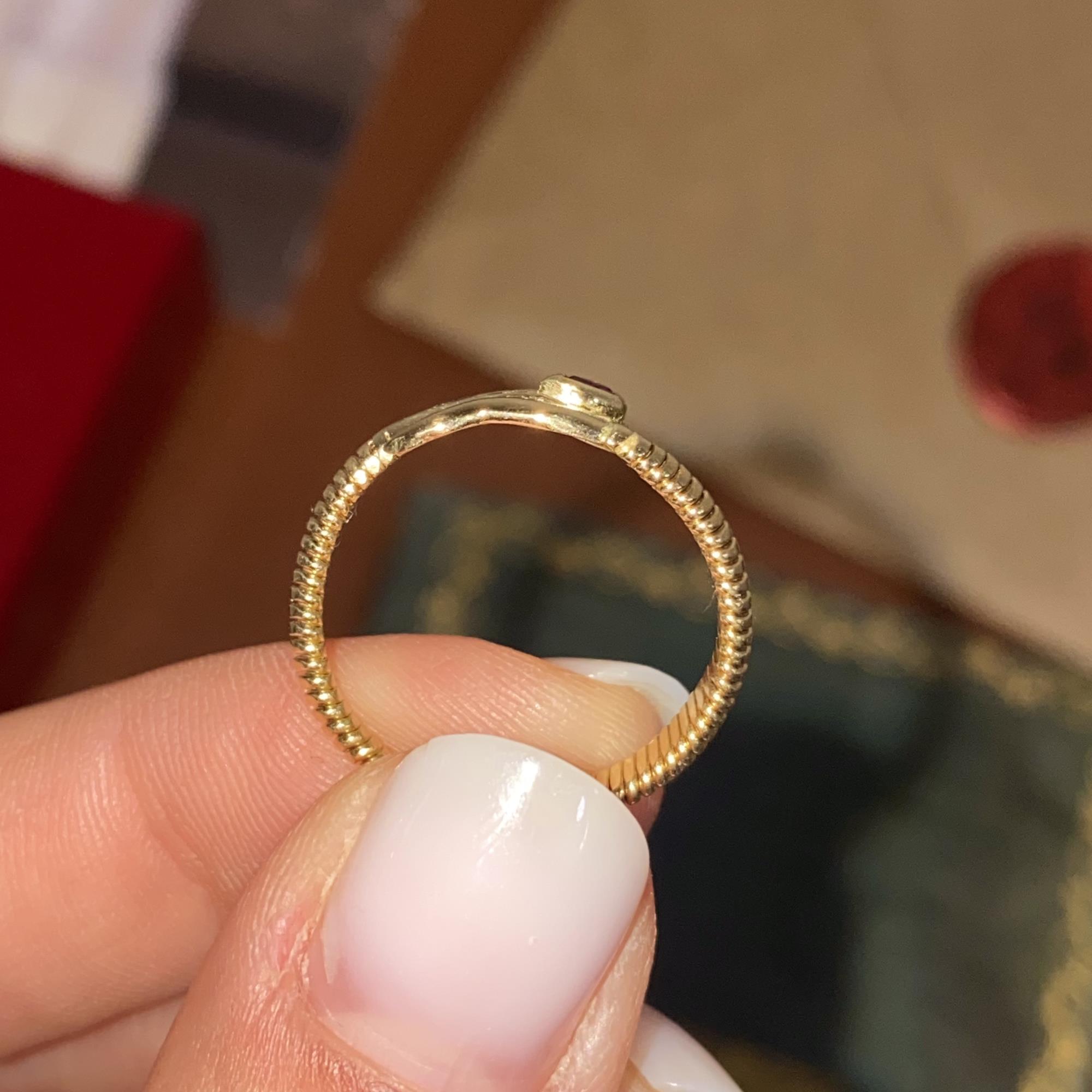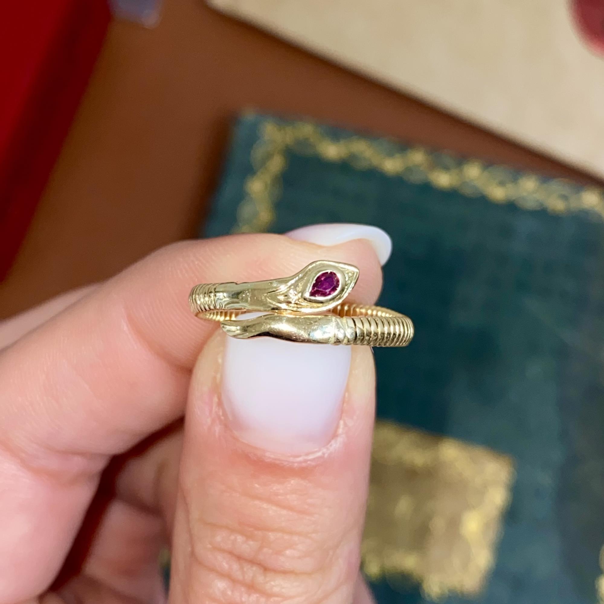 ANELLO VINTAGE SERPENTINO IN ORO 18KT CON RUBINO DI TAGLIO GOCCIA CT 0,10