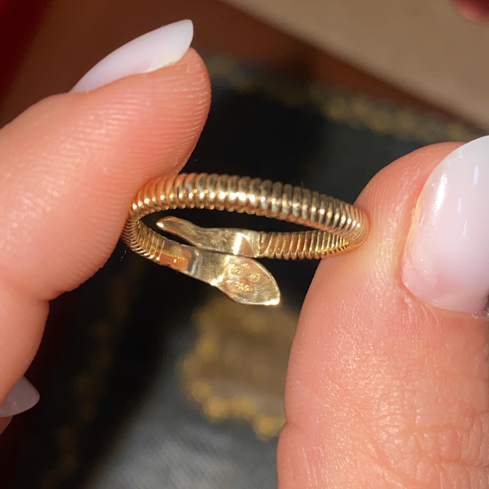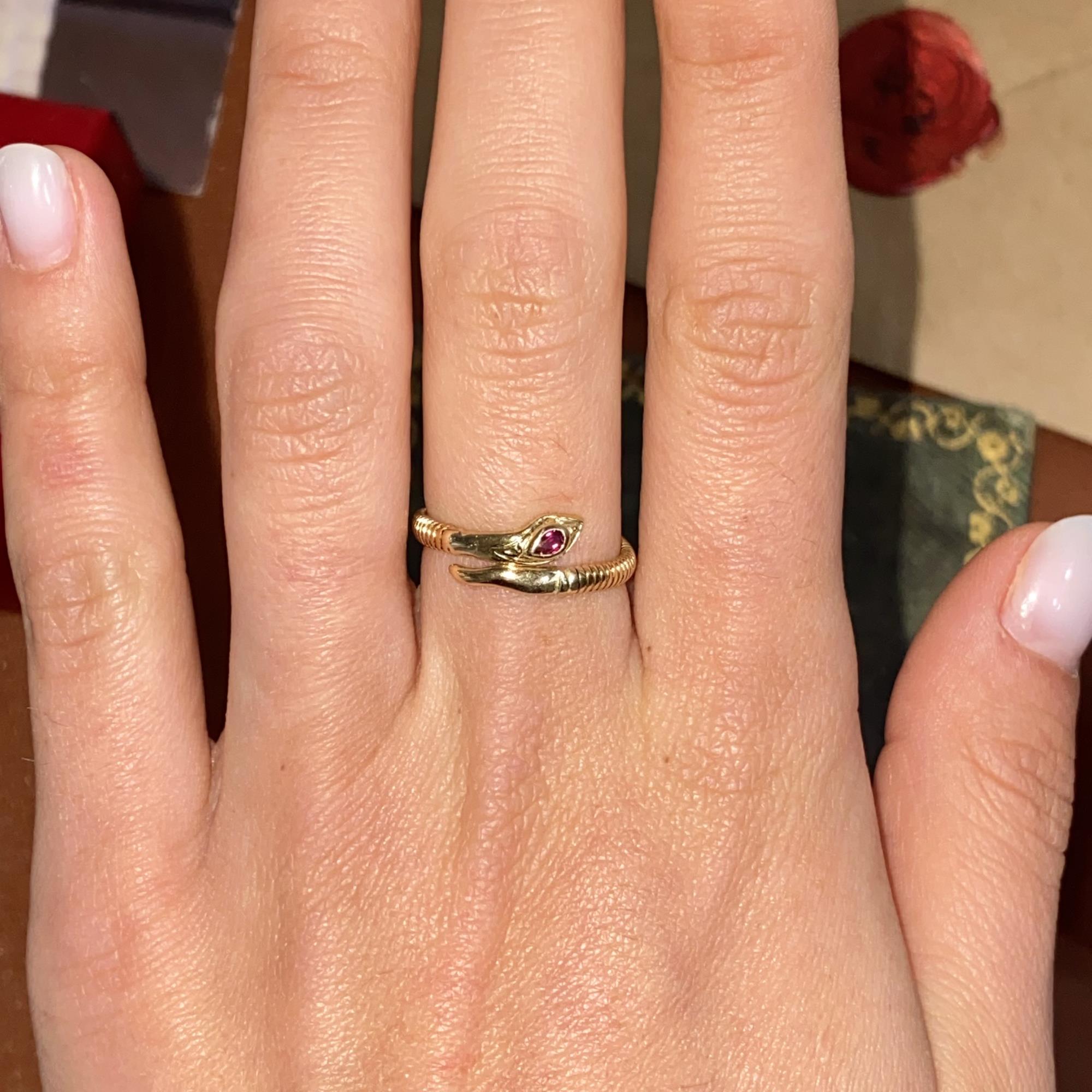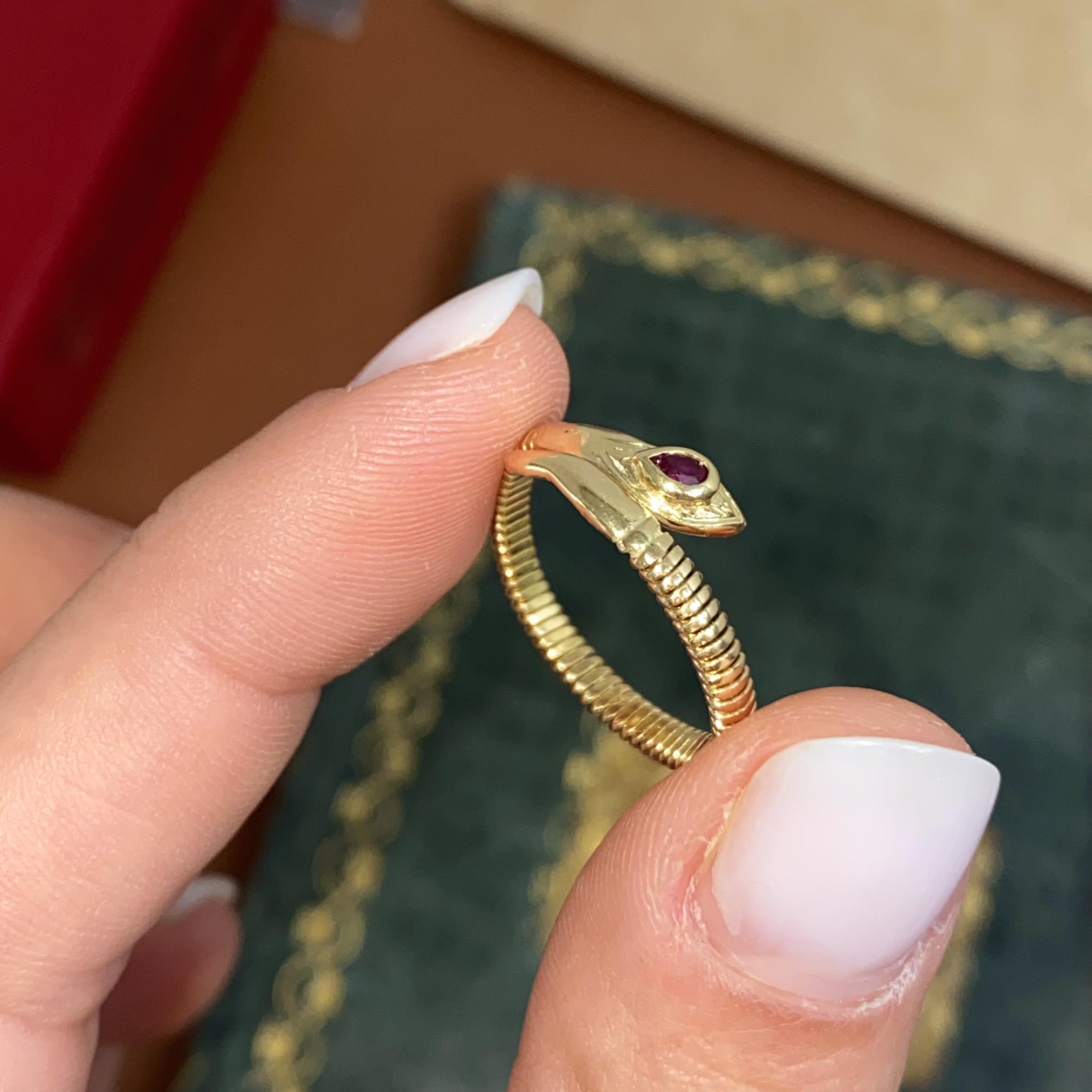 ANELLO VINTAGE SERPENTINO IN ORO 18KT CON RUBINO DI TAGLIO GOCCIA CT 0,10