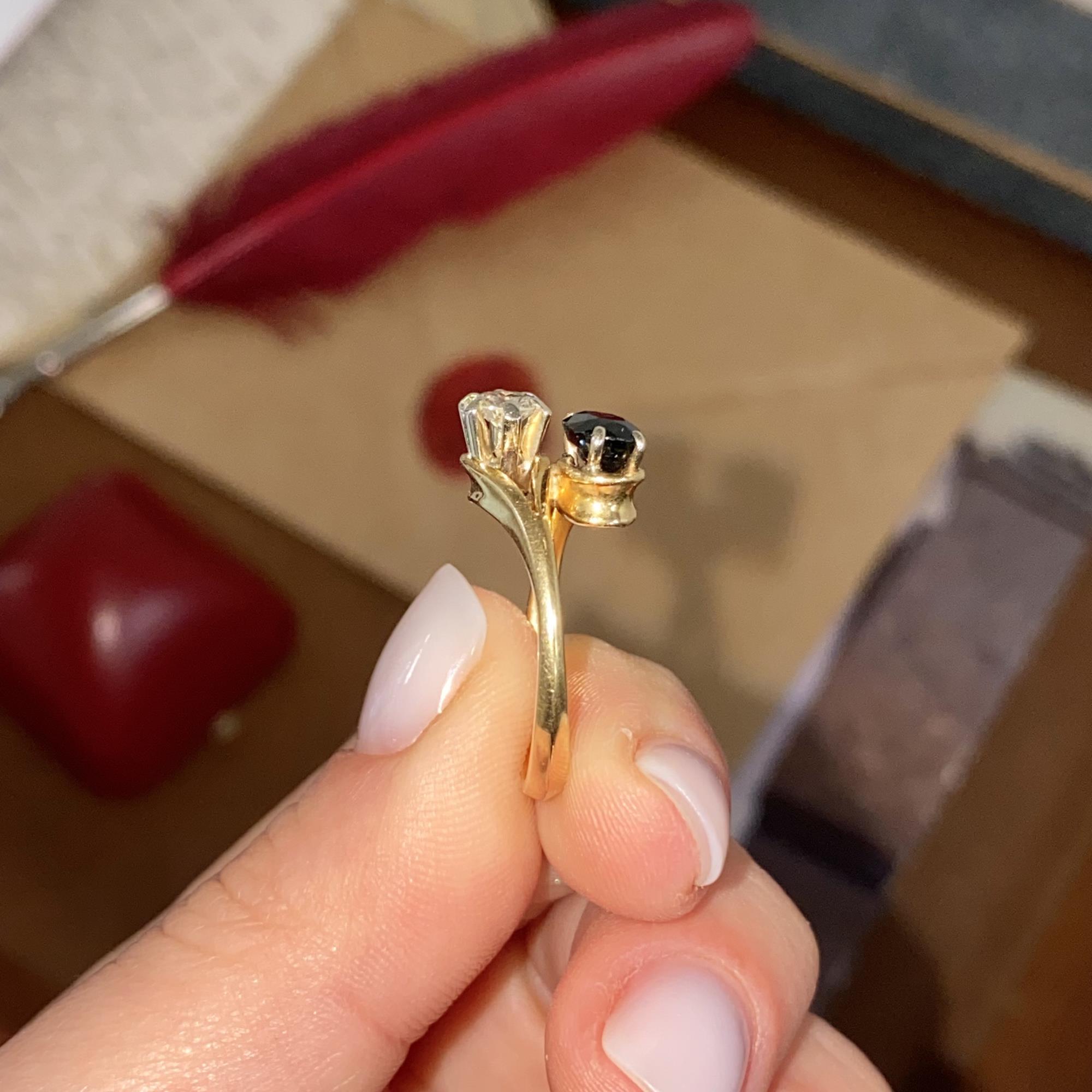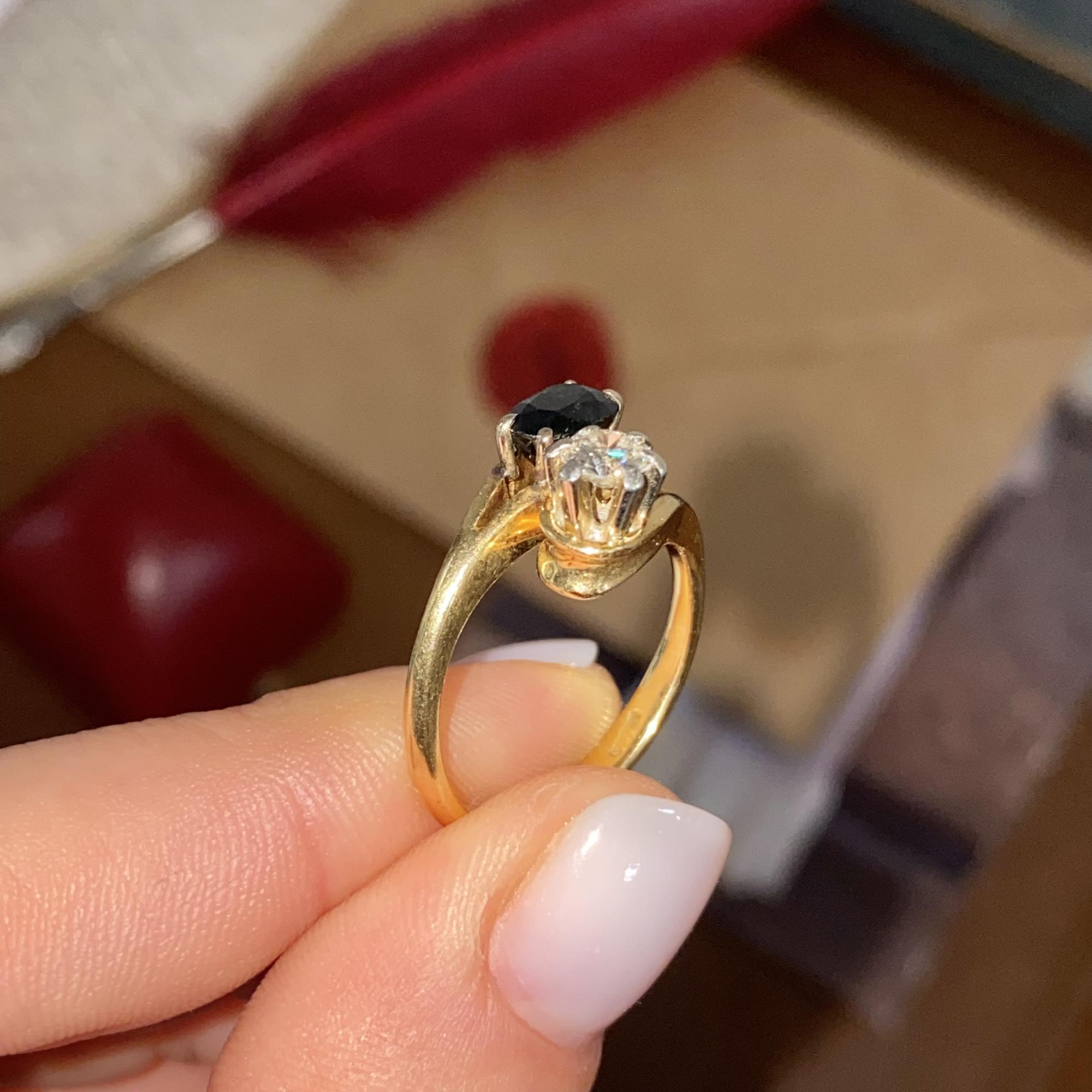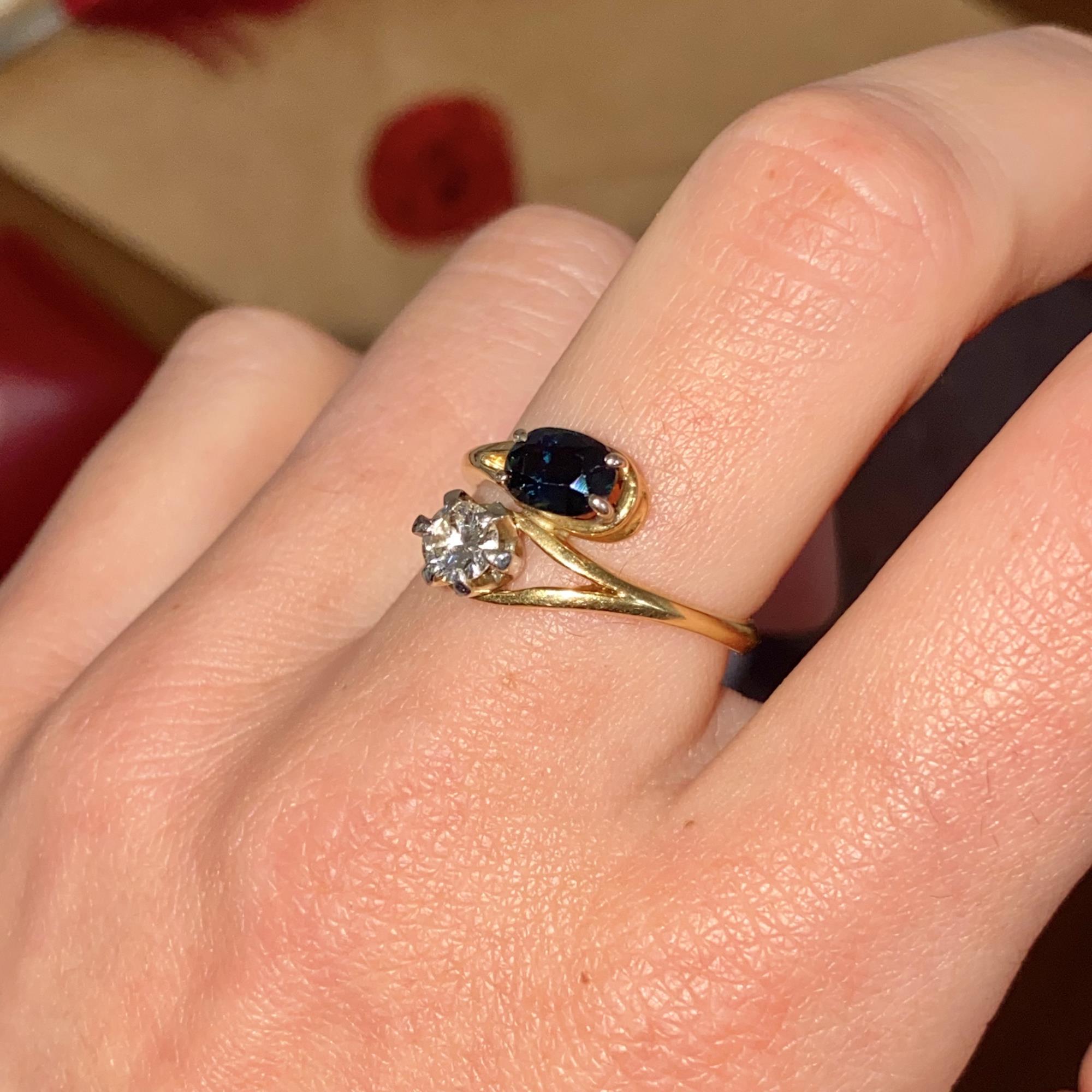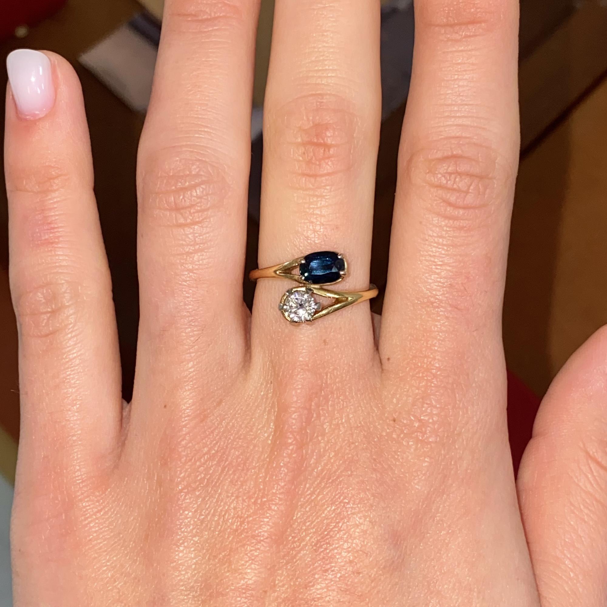 ANELLO VINTAGE TOI ET MOI IN ORO 18KT CON DIAMANTE CT 0,25 CA. E ZAFFIRO CT 0,80 CA.