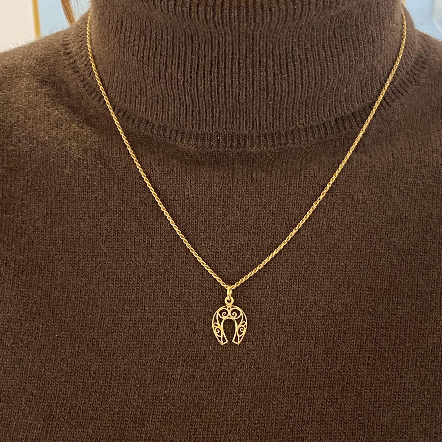 CIONDOLO VINTAGE FERRO DI CAVALLO IN ORO 18KT CON DECORAZIONI INTERNE