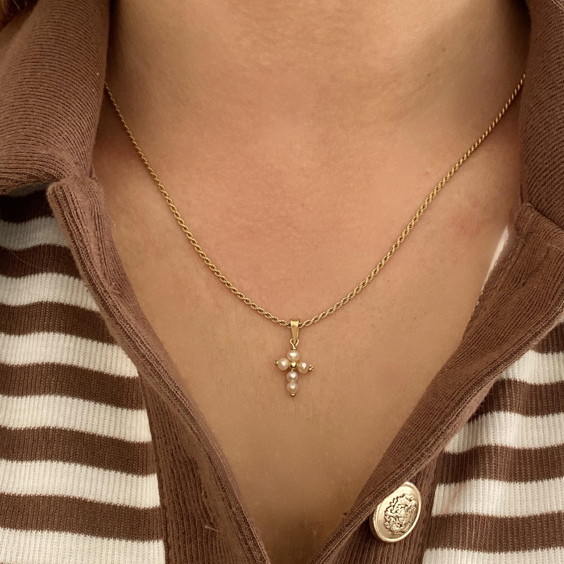 CIONDOLO VINTAGE IN ORO 18KT CROCE CON PERLINE