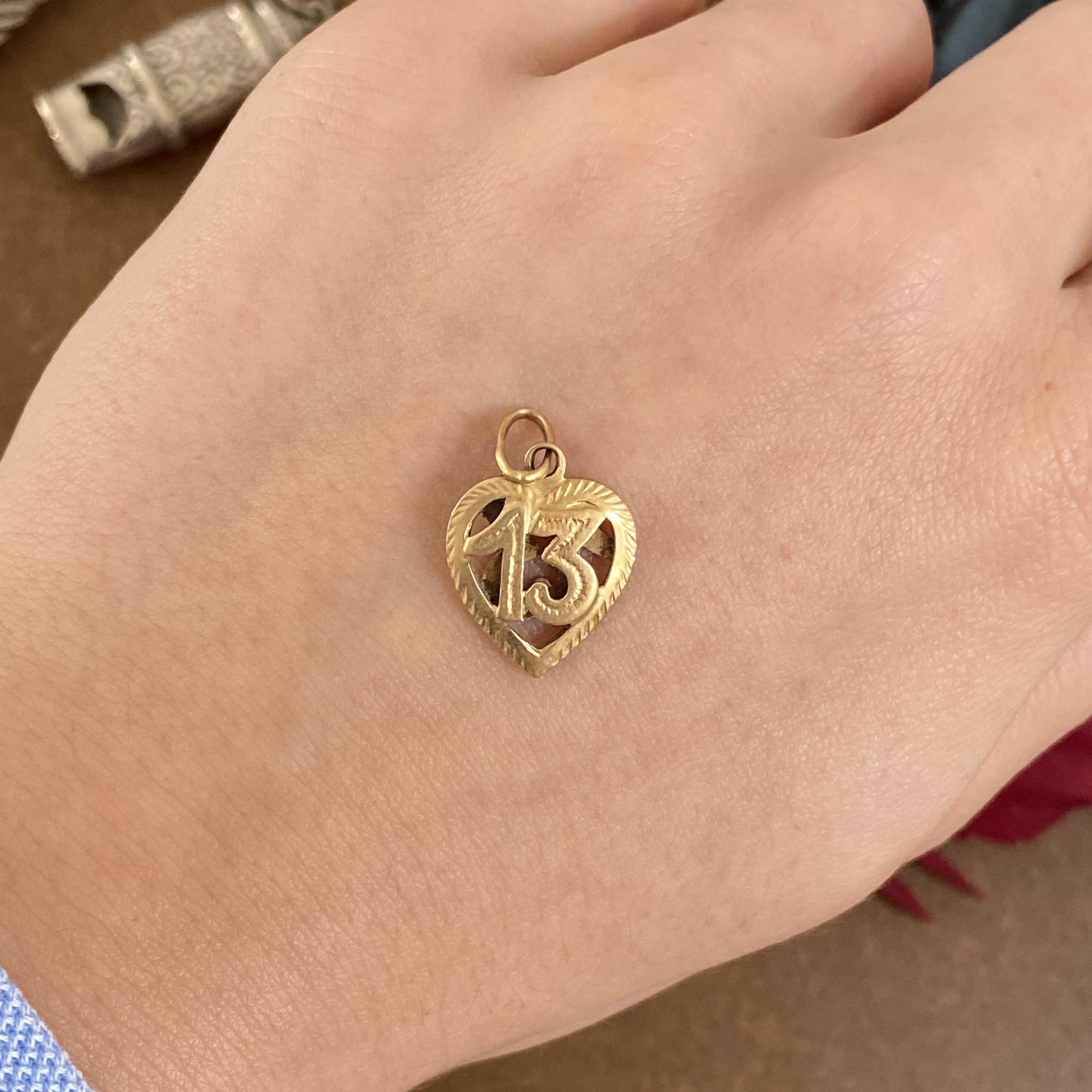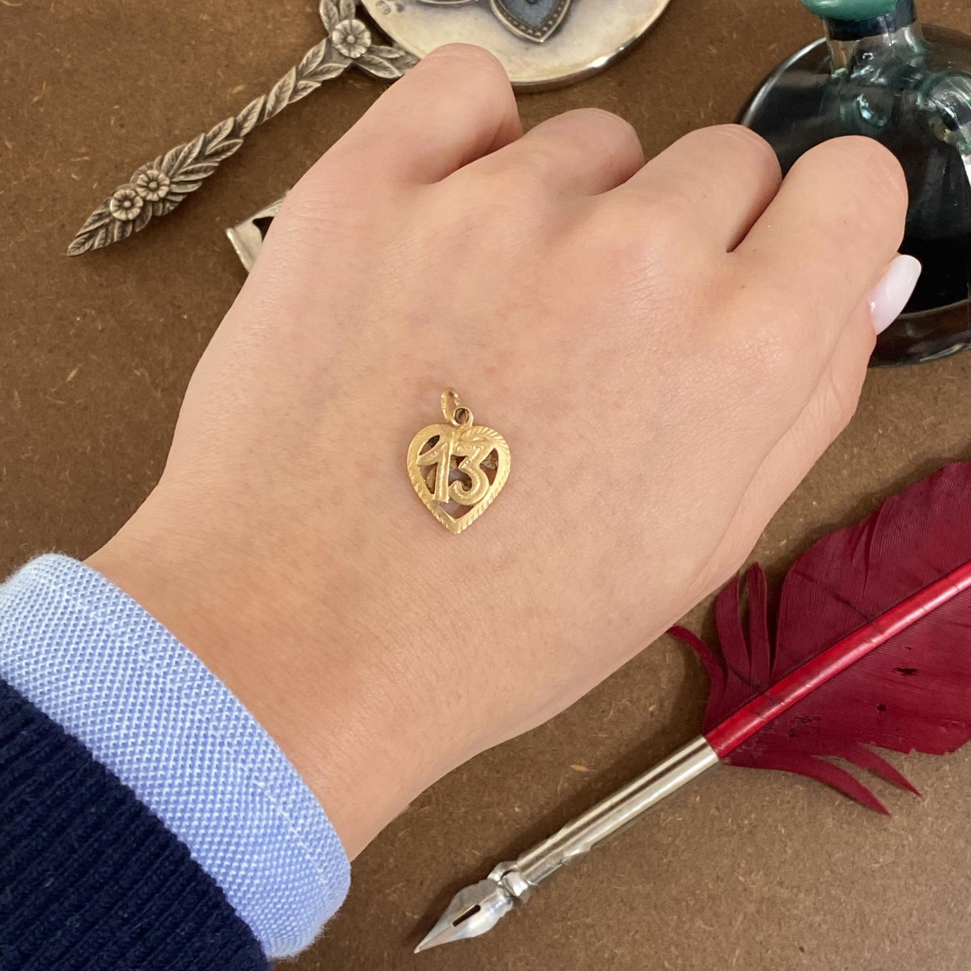 CIONDOLO VINTAGE IN ORO 18KT CUORE CON 13 PORTAFORTUNA